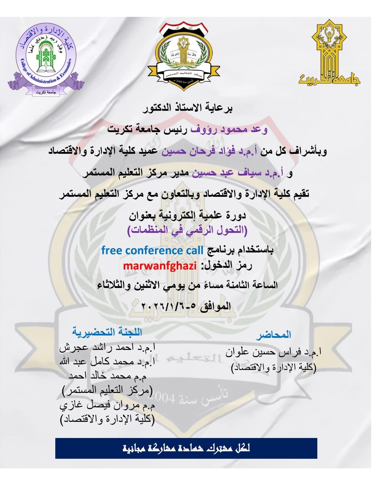 - تنمية وتطوير مهارات وقدرات الهيئة التدريسية.