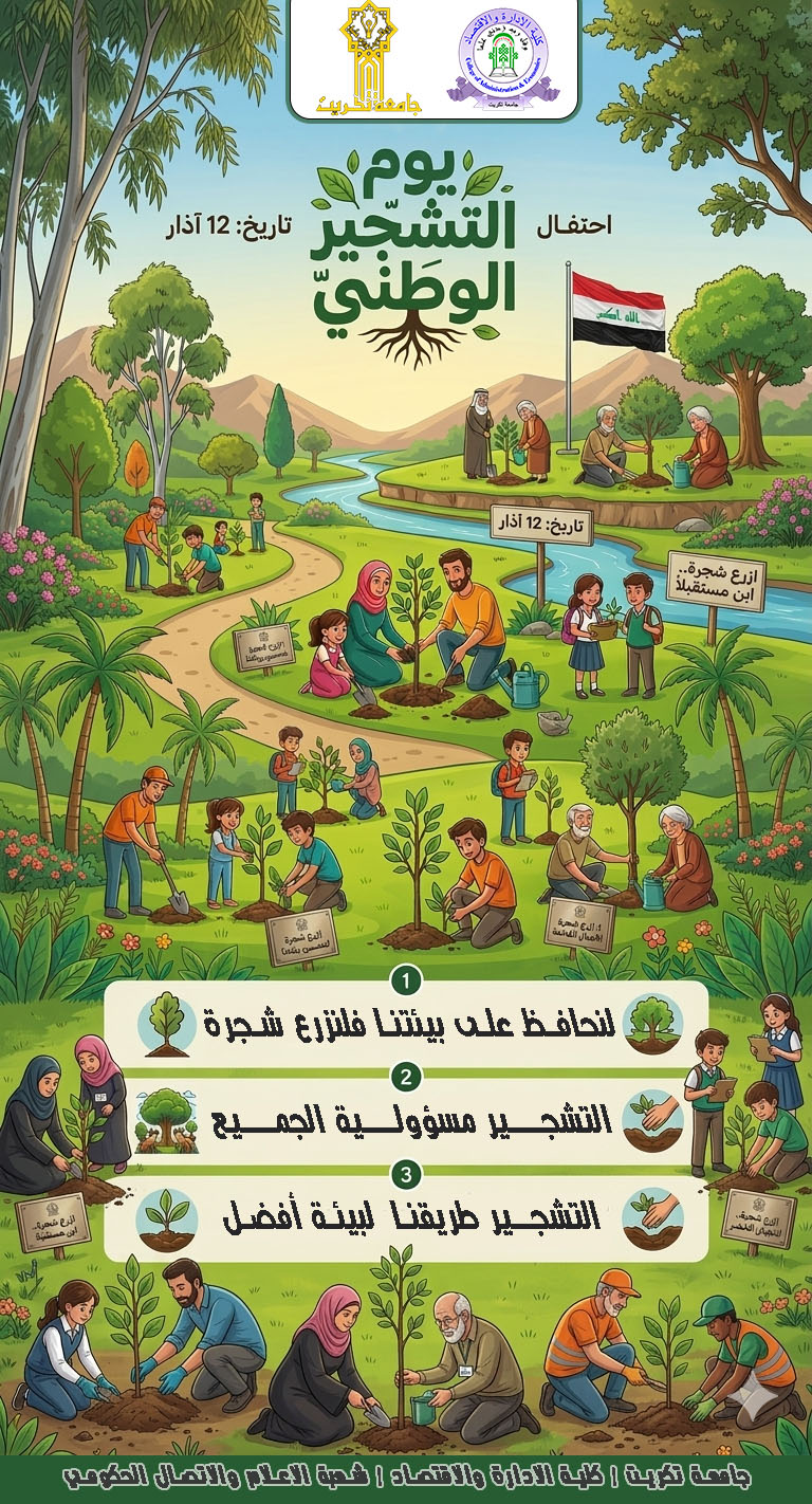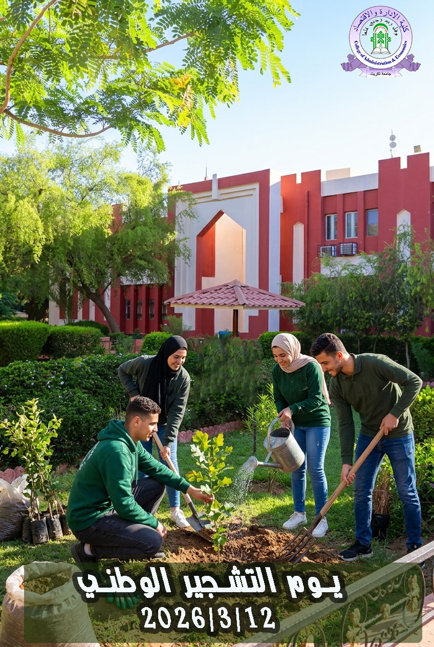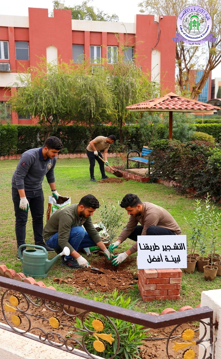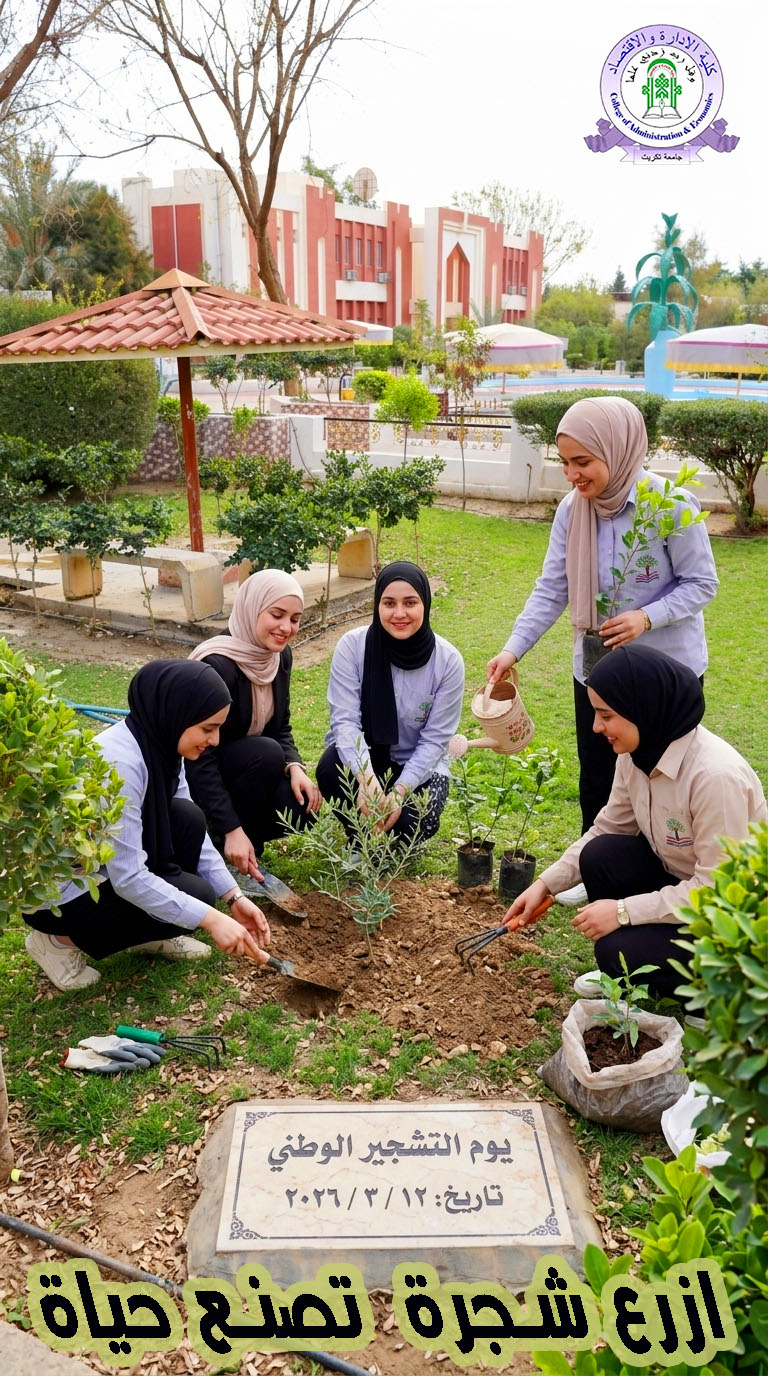 كلية الإدارة والاقتصاد في جامعة تكريت تنظم حملة تشجير توعوية بمناسبة يوم التشجير الوطني