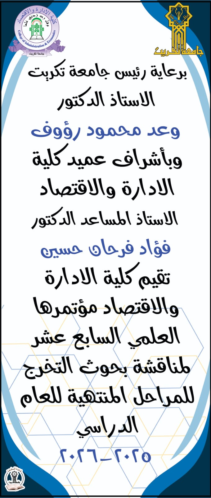 المؤتمر العلمي السابع عشر لمناقشة بحوث التخرج للمراحل المنتهية للعام الدراسي 2025-2026