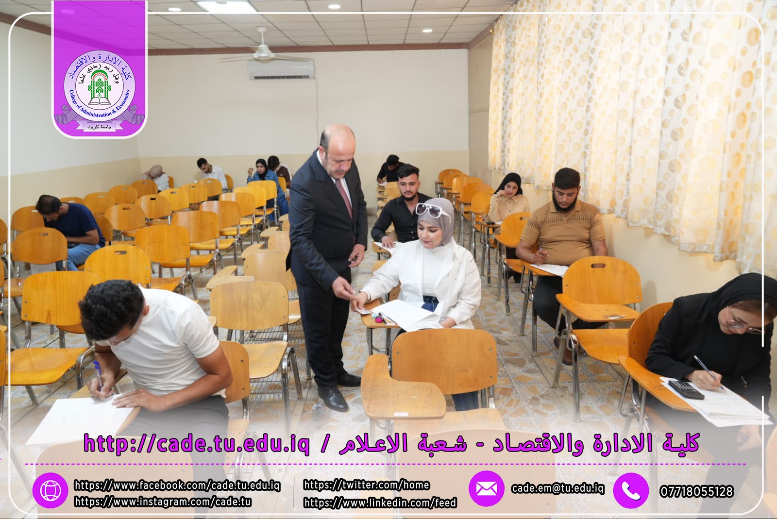 انطلقت اليوم الاحد الموافق 12/5/2024 على بركة الله تعالى الامتحانات النهائية للفصل الدراسي الثاني / الدور الاول للعام الدراسي 2023-2024 ولكلا الدراستين الصباحية والمسائية.حيث تفقد السيد رئيس الجامعة أ.د. وعد محمود رؤوف والسيد العميد أ.د. عبد الرزاق حمد حسين سـيـر الـعـمـلـيـة الامتحانية وتـوفـيـر كـافـة الـمـسـتـلـزمـات الـلازمـة لضـمـان توفير أفضل الأجواء الامتحانية لـطـلـبـتـنـا الأعزاء، كذلك وجه السيد العميد الكادر التدريسي لبذل كل الجهود لإدارة العملية الامتحانية بما يضمن الرصانة العلمية والأكاديمية وجرت الامتحانات بانسيابية عـالـيـة وفقا للضوابط والتعليمات الصادرة من وزارة التعليم العالي والبحث العلمي ورئاسة جامعة تكريت مـتـمـنـيـن لـطـلـبـتنا الـمـوفـقـيـة والـنـجـاح