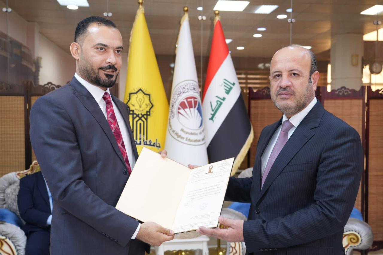 اذ قدم رئيس الجامعة شرحاً موجزاً عن مراحل اعادة إعمار الجامعة وعودتها لتأخذ مكانتها بين جامعات العراق ، كما قدم الشهادات التقديرية للسادة عمداء الكليات .