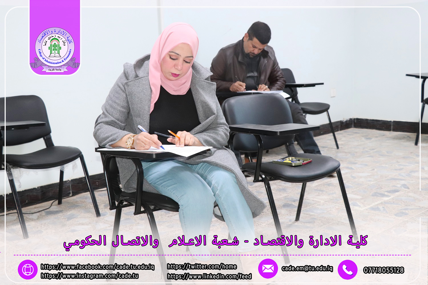 جرى في كلية الإدارة والاقتصاد في جامعة تكريت، صباح يوم الأحد الموافق 15 /12/ 2024، الامتحان الشامل لطلبة الدكتوراه في قسم الاقتصاد، للعام الدراسي 2024-2025، وذلك على قاعة الدراسات العليا