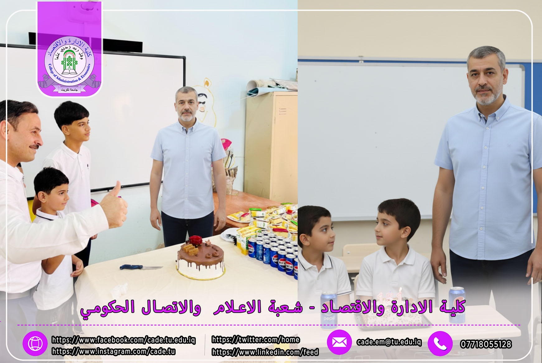 برعاية الأستاذ الدكتور وعد محمود رؤوف، رئيس جامعة تكريت، وبإشراف الأستاذ المساعد الدكتور فؤاد فرحان حسين، عميد كلية الإدارة والاقتصاد، نظّمت الكلية زيارةً إنسانية إلى دار الأيتام في محافظة صلاح الدين يوم الخميس الموافق 28/11/2024، لغرض توزيع وجبات غذائية على الأطفال الأيتام في الدار.