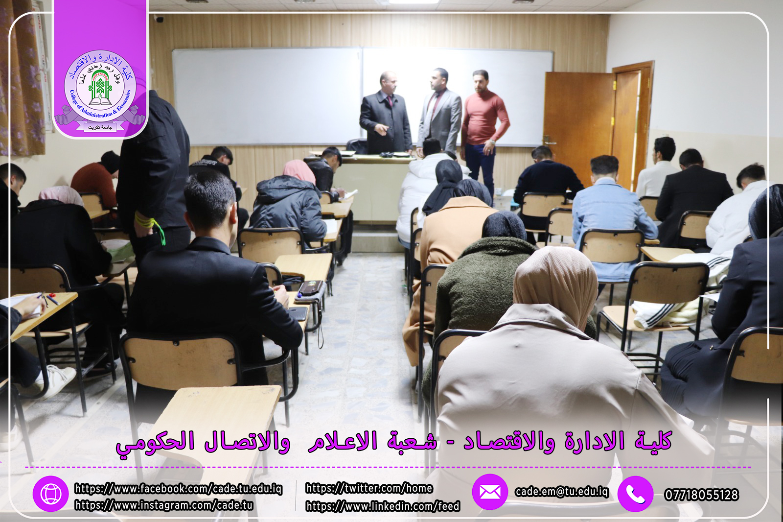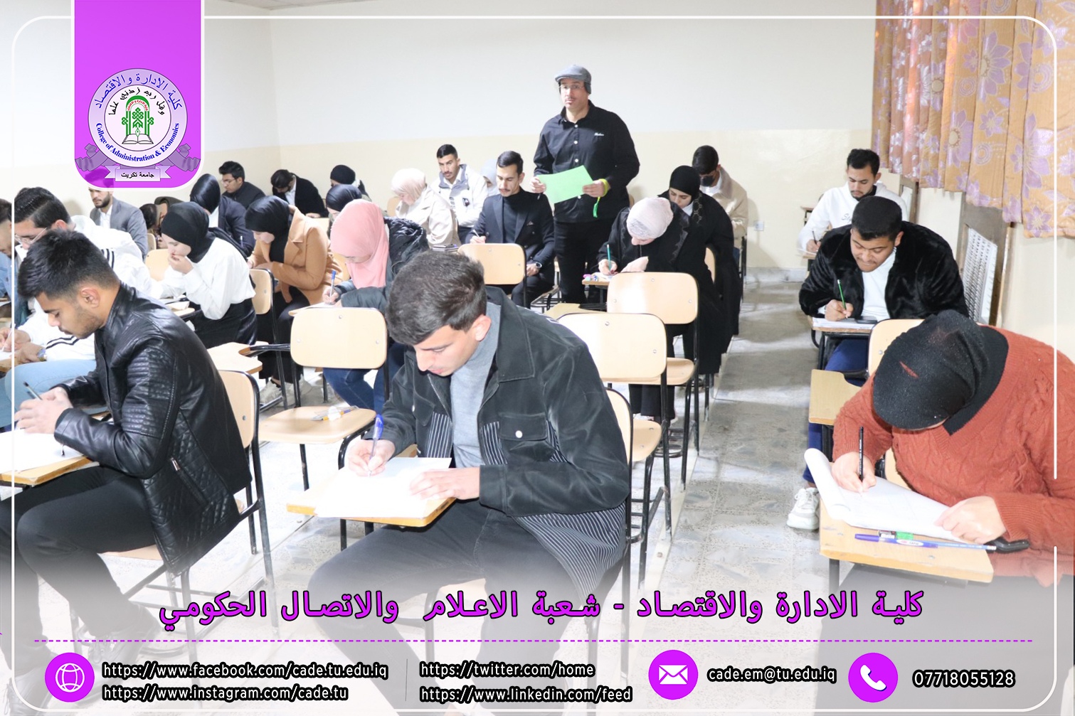 بدأت في كلية الإدارة والاقتصاد / جامعة تكريت الامتحانات النهائية لطلبة الدراسات الأولية للفصل الدراسي الأول (الدور الأول) للعام الدراسي 2024/2025 ، وذلك يوم الخميس الموافق 19/12/2024.