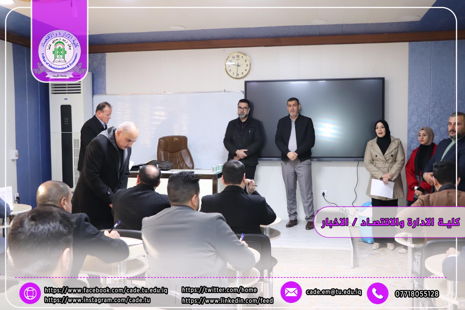 زارت اللجنة المركزية المكلفة بمتابعة امتحانات الدراسات العليا المتمثلة بالأستاذ الدكتور (سرمد احمد موسى) كلية الإدارة والاقتصاد / جامعة تكريت لتفقد سير الامتحانات النهائية لطلبة الدراسات العليا للفصل الدراسي الأول للعام الدراسي 2024/2025 وذلك يوم الخميس الموافق 23/1/2025.