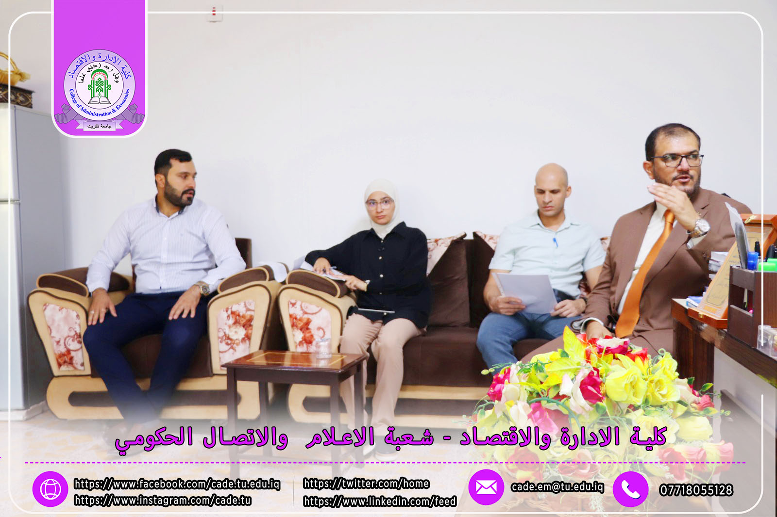 استقبل المدرس الدكتور أحمد عايد مخلف، معاون العميد للشؤون الإدارية في كلية الإدارة والاقتصاد / جامعة تكريت، في مكتبه صباح يوم الاثنين، الأستاذ الدكتور أركان برع محمد، مدير قسم ضمان الجودة والأداء الجامعي.