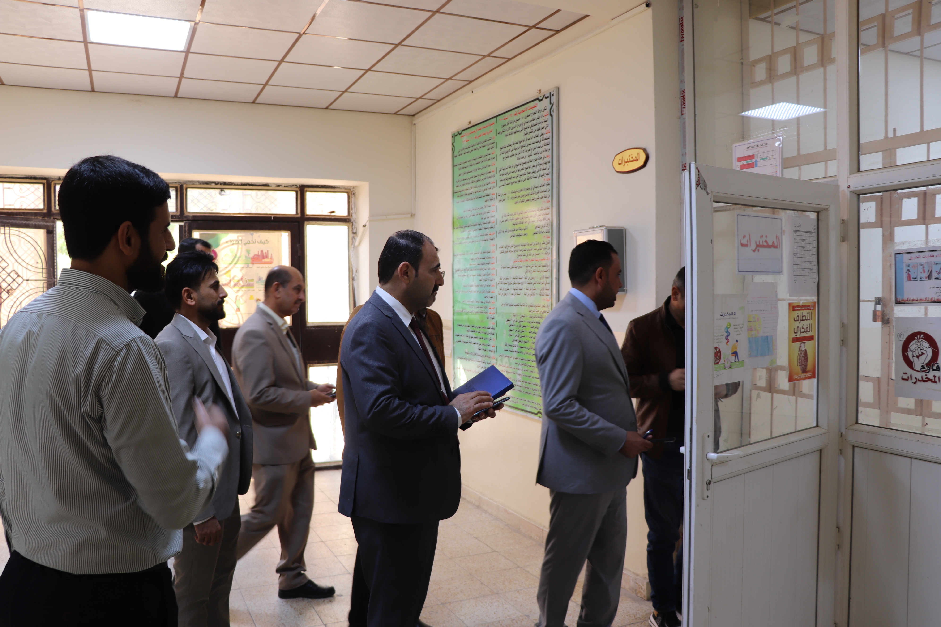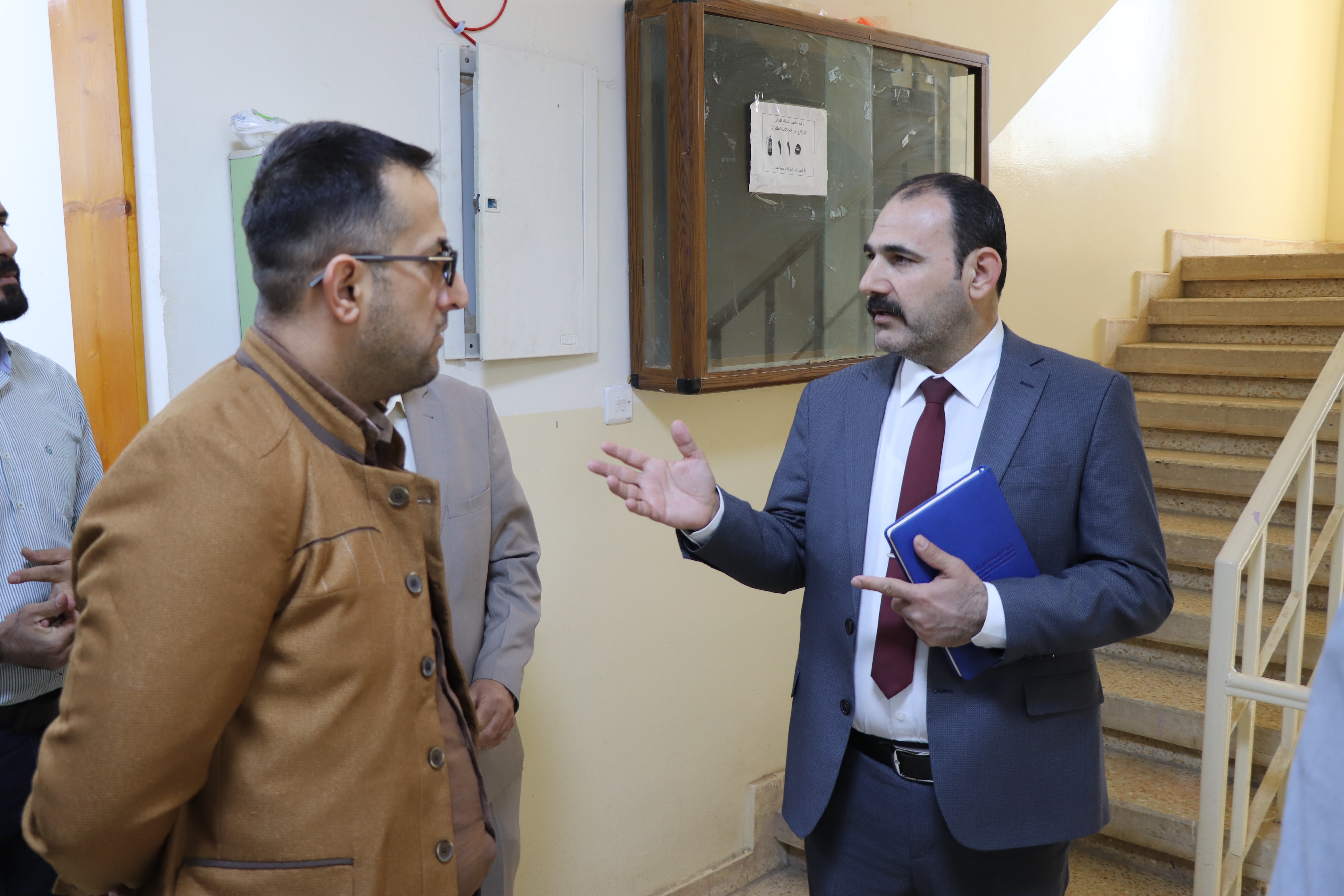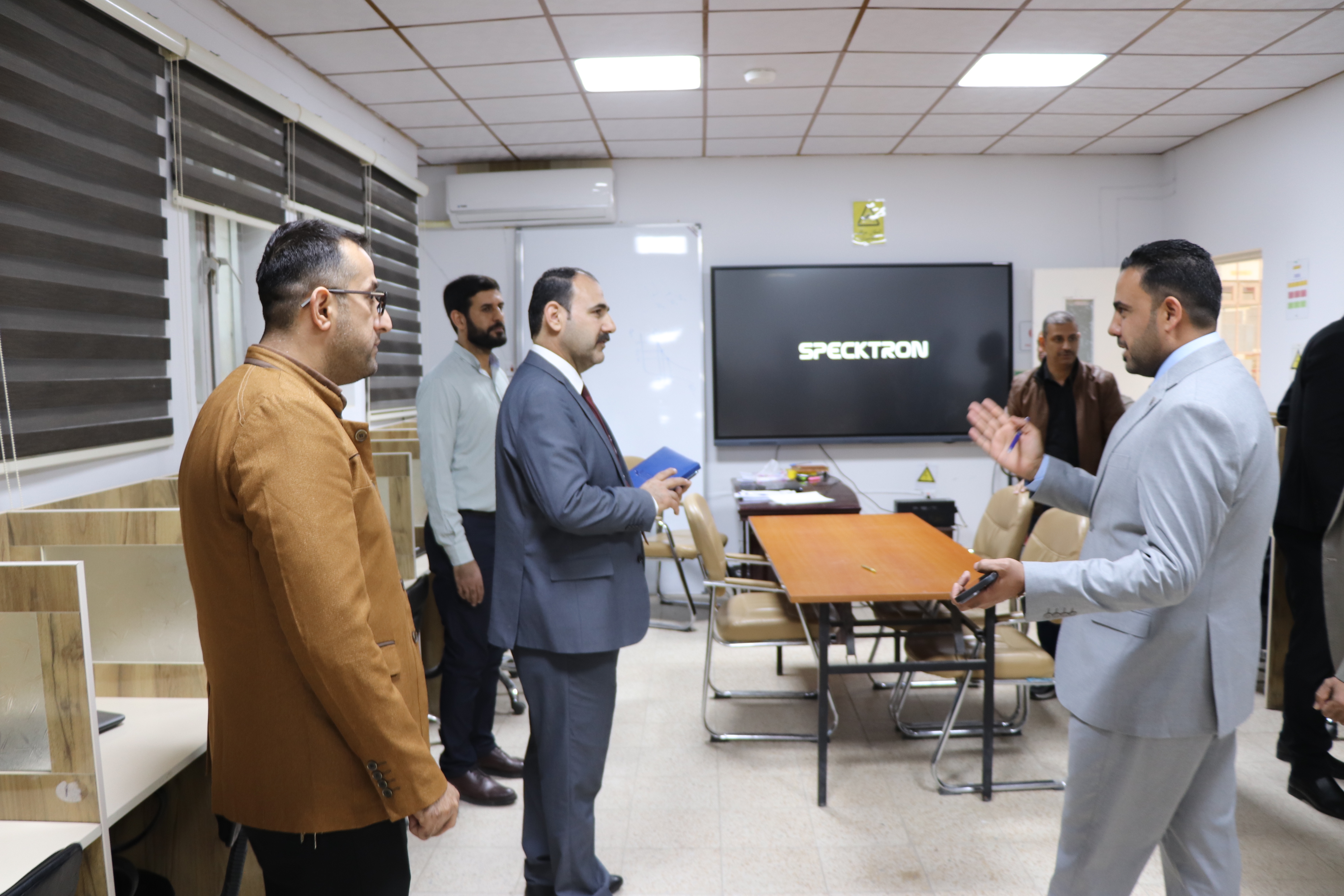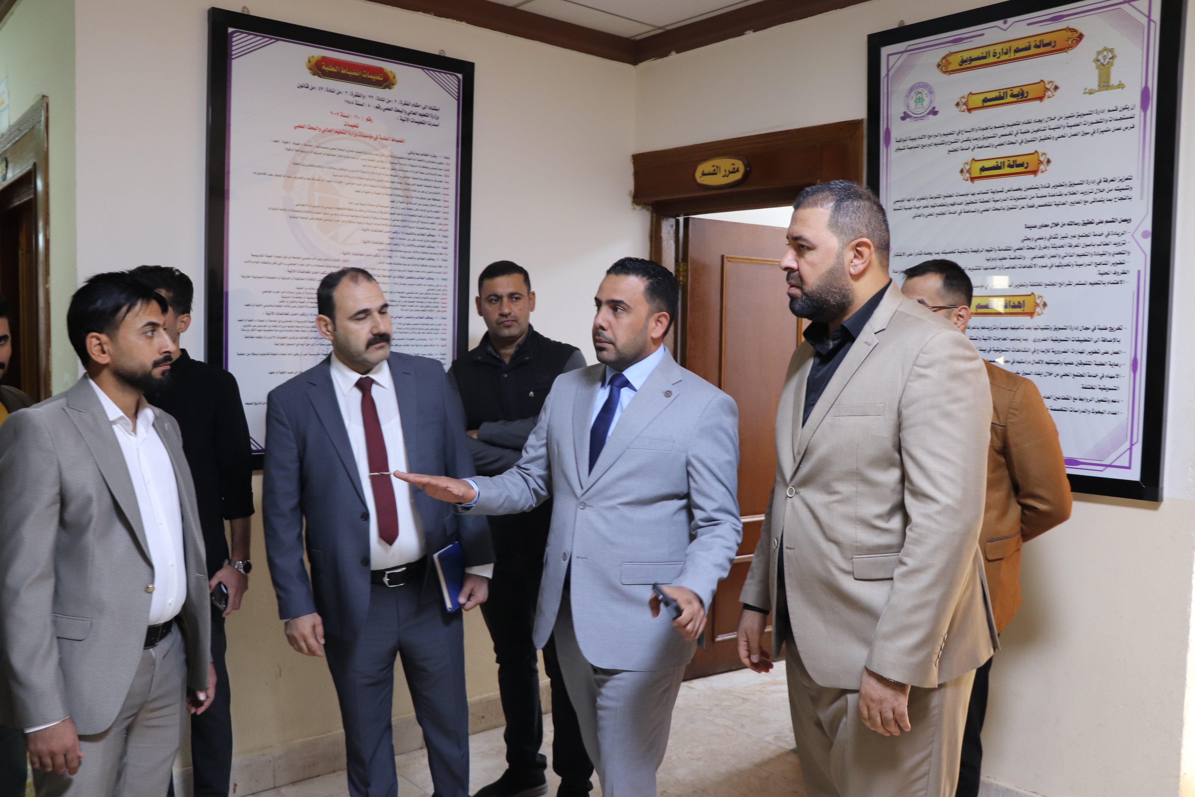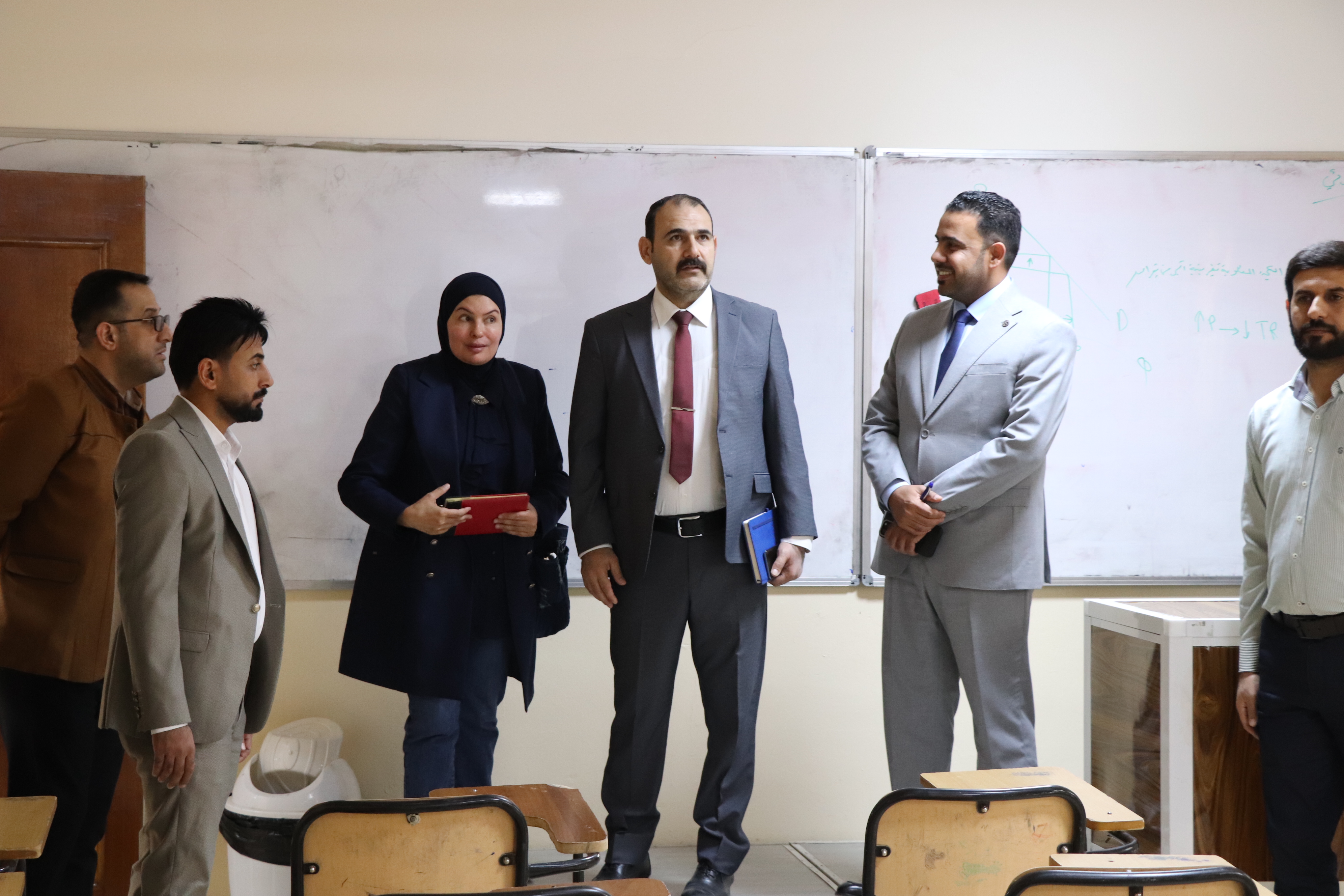 ترأس اللجنة الوزارية م.م. أحمد محمد سليم، ورافقه أربعة من أعضاء اللجنة الذين باشروا بجولة ميدانية داخل الكلية شملت الأقسام العلمية والقاعات الدراسية واللجان الامتحانية والمكاتب الإدارية التابعة لكل قسم، بالإضافة إلى الاطلاع على الواقع الفني والإداري والأكاديمي في الأقسام المستحدثة لضمان تحقيق معايير الاستحداث المعتمدة.