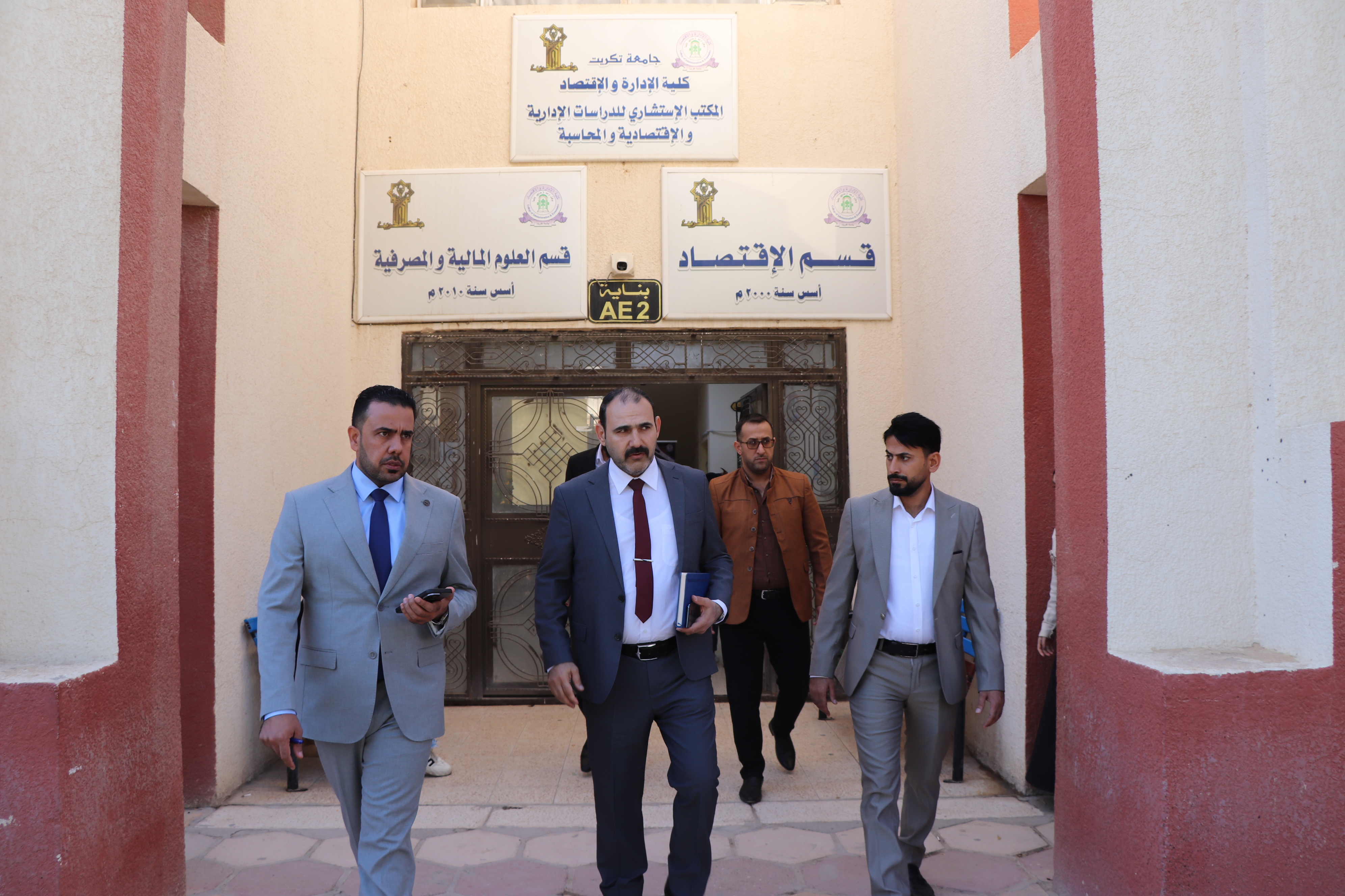 وكان في استقبال اللجنة الأستاذ المساعد الدكتور قتيبة إبراهيم حمادة، معاون العميد لشؤون الطلبة، وا.م.د. عمر عبد الله محمد رئيس قسم الاقتصاد، وم.د. احمد عايد مخلف رئيس قسم ادارة التسويق، حيث قدّم السيد معاون العميد شرحًا وافيًا عن استعدادات الكلية وخطتها الأكاديمية. وأشاد خلال لقائه مع اللجنة بالدعم المستمر الذي توليه الجامعة لتطوير البيئة التعليمية وفتح آفاق تخصصية تلائم التطورات الحديثة في الإدارة والاقتصاد.