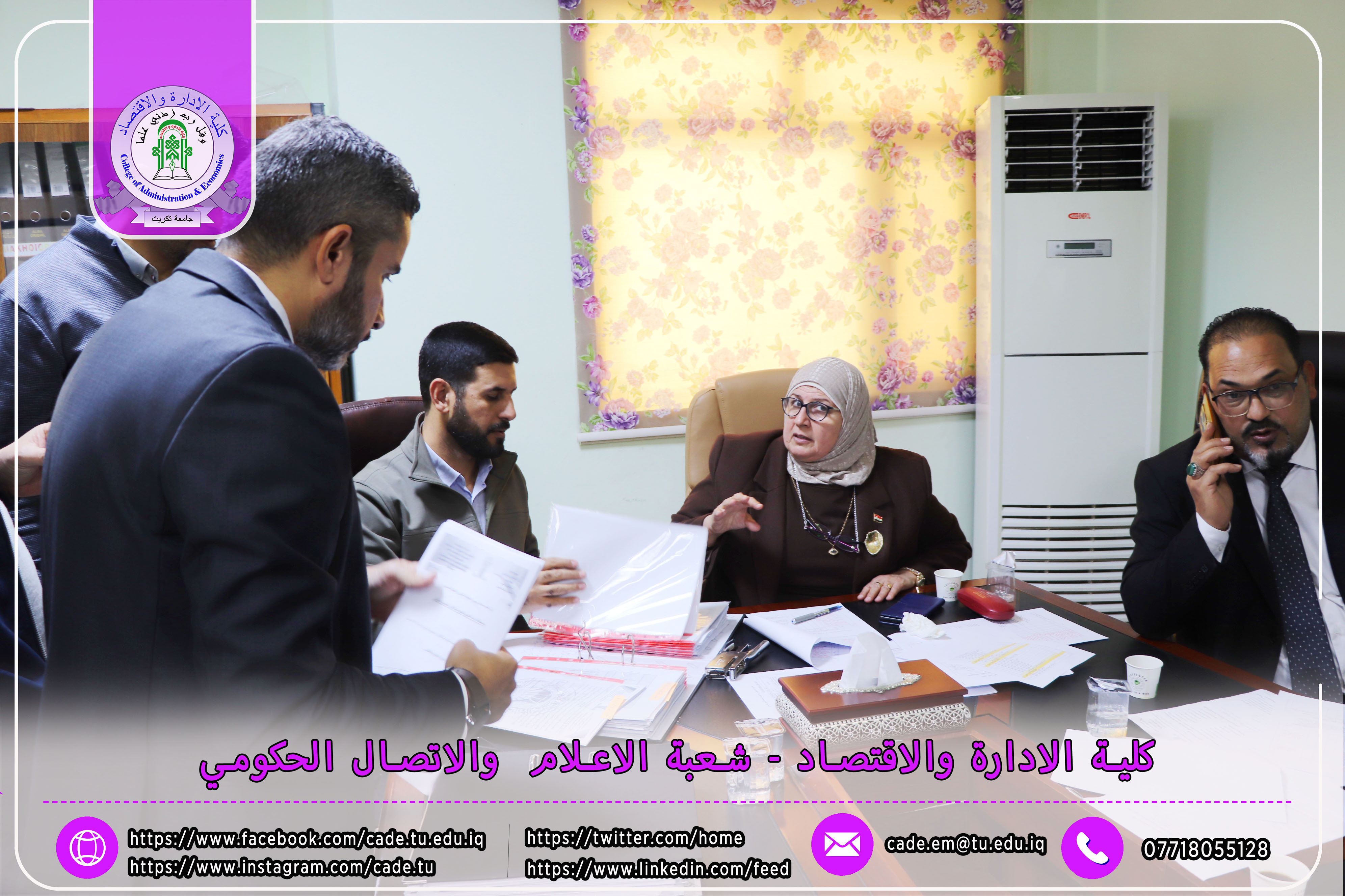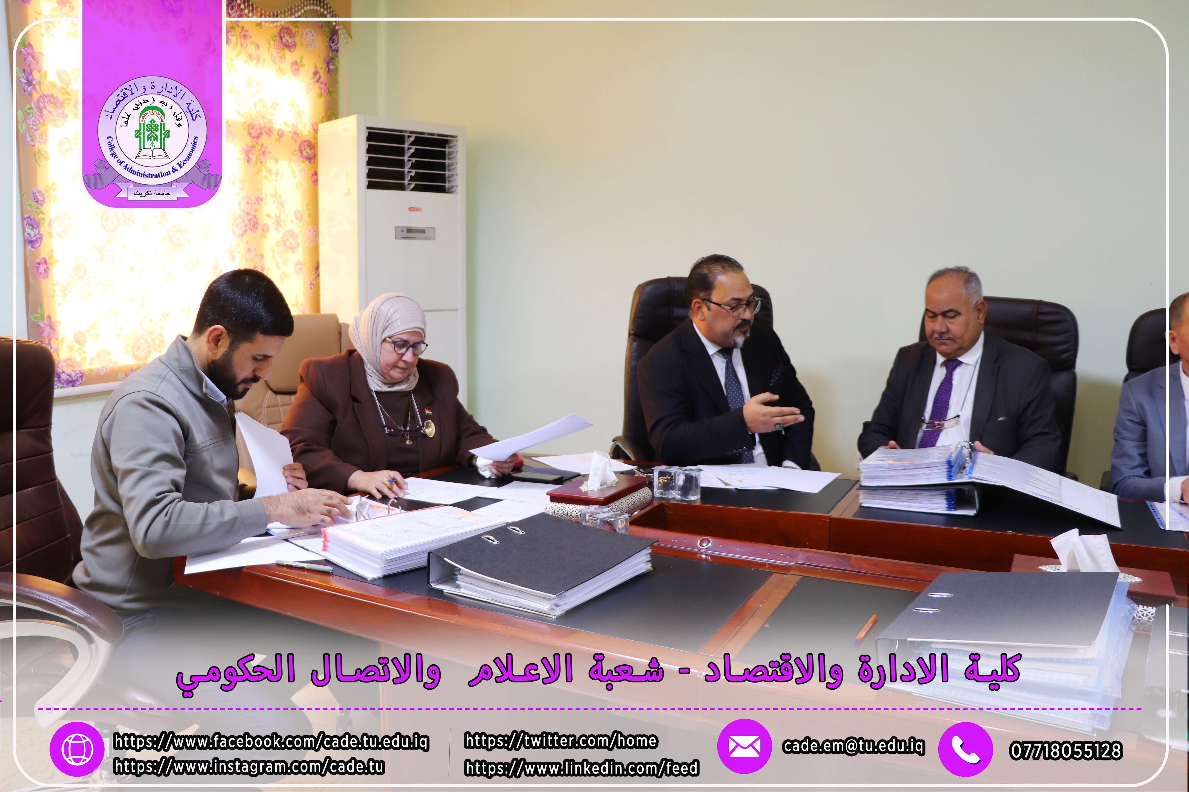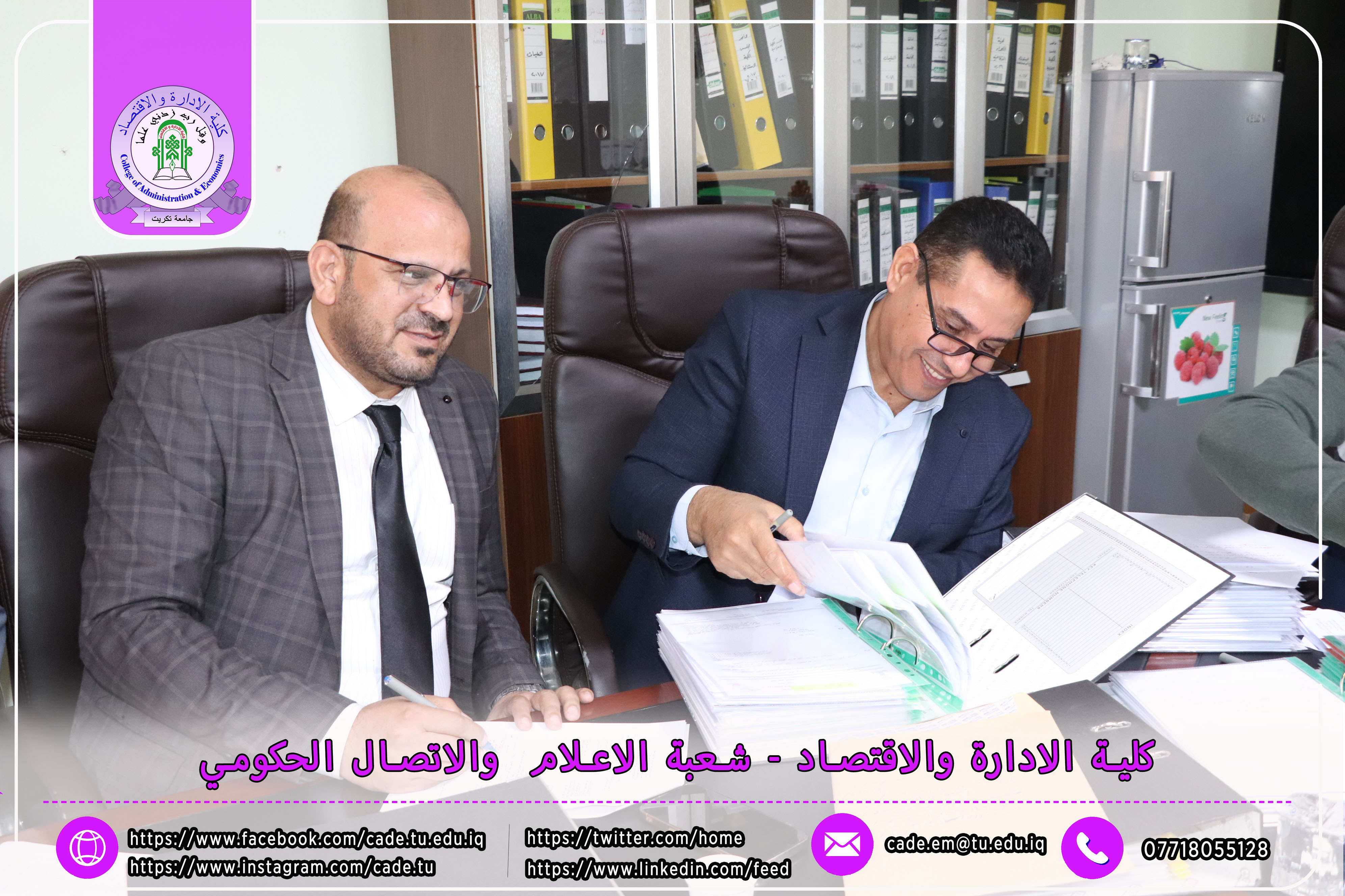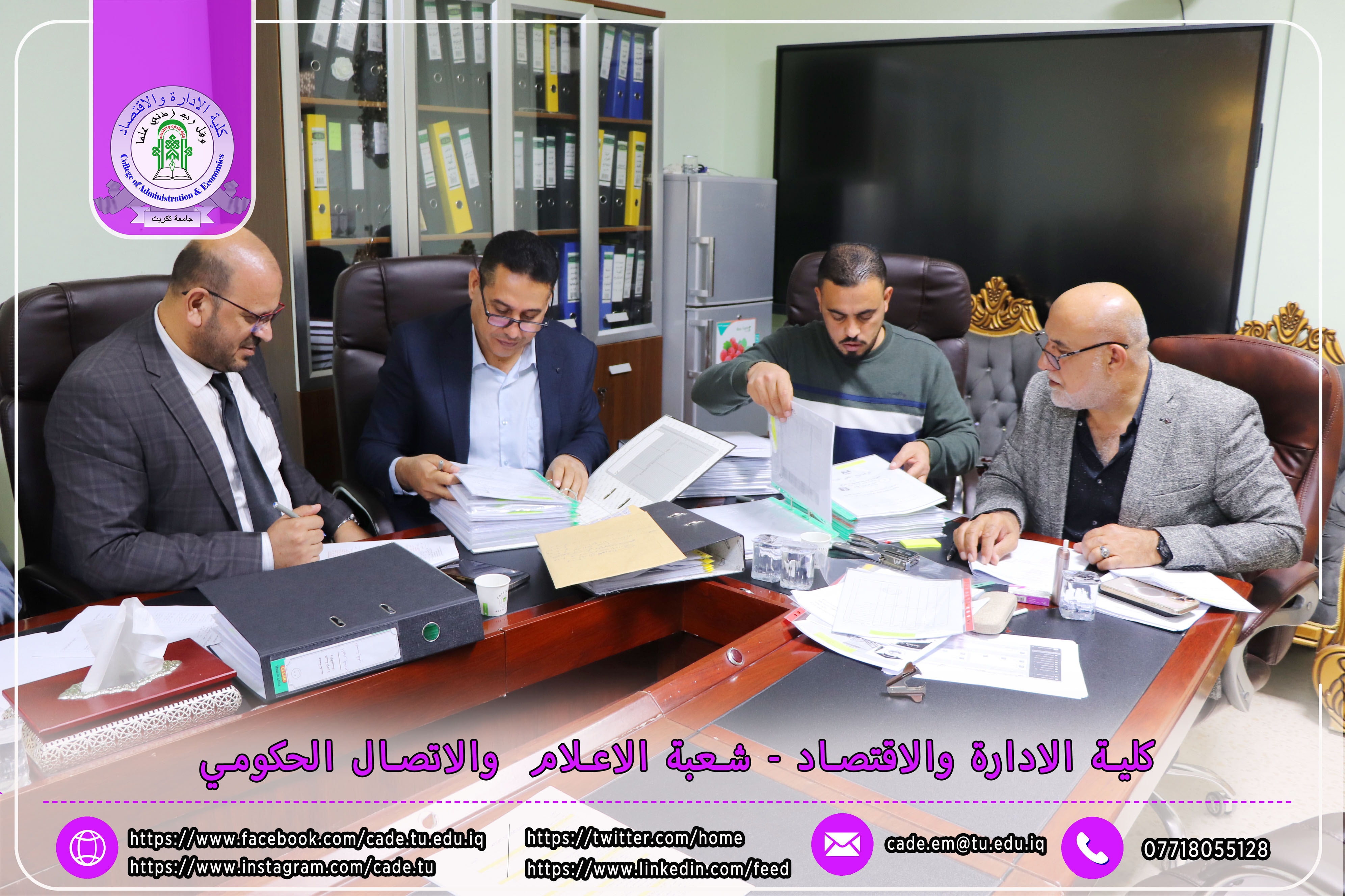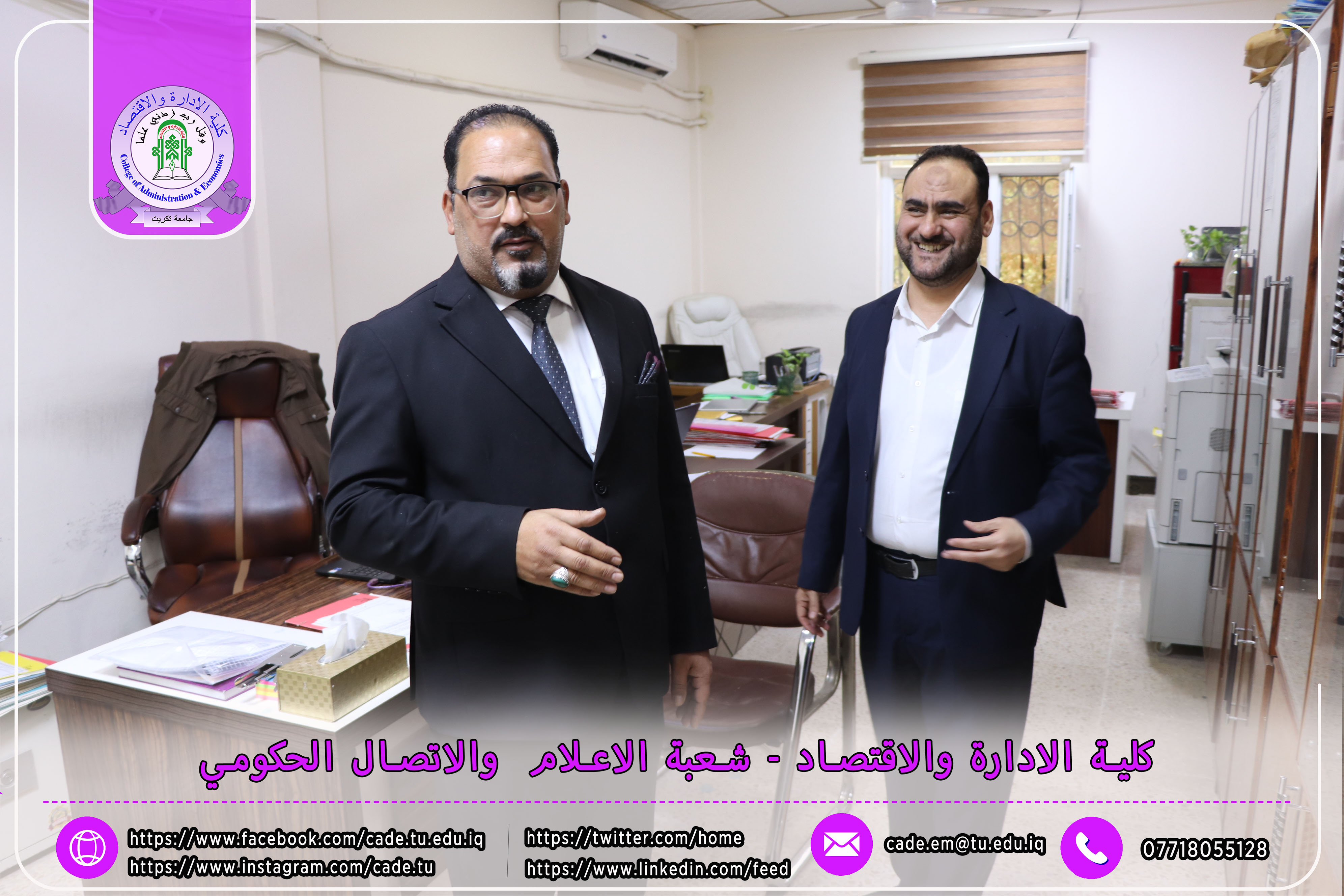 وكان في استقبال اللجنة كلٌّ من الأستاذ المساعد الدكتور فؤاد فرحان حسين عميد كلية الإدارة والاقتصاد، والأستاذ المساعد الدكتور خطاب عمران صالح معاون العميد للشؤون العلمية، إلى جانب عدد السادة التدريسيين ومسؤولي الشعب والوحدات الإدارية.