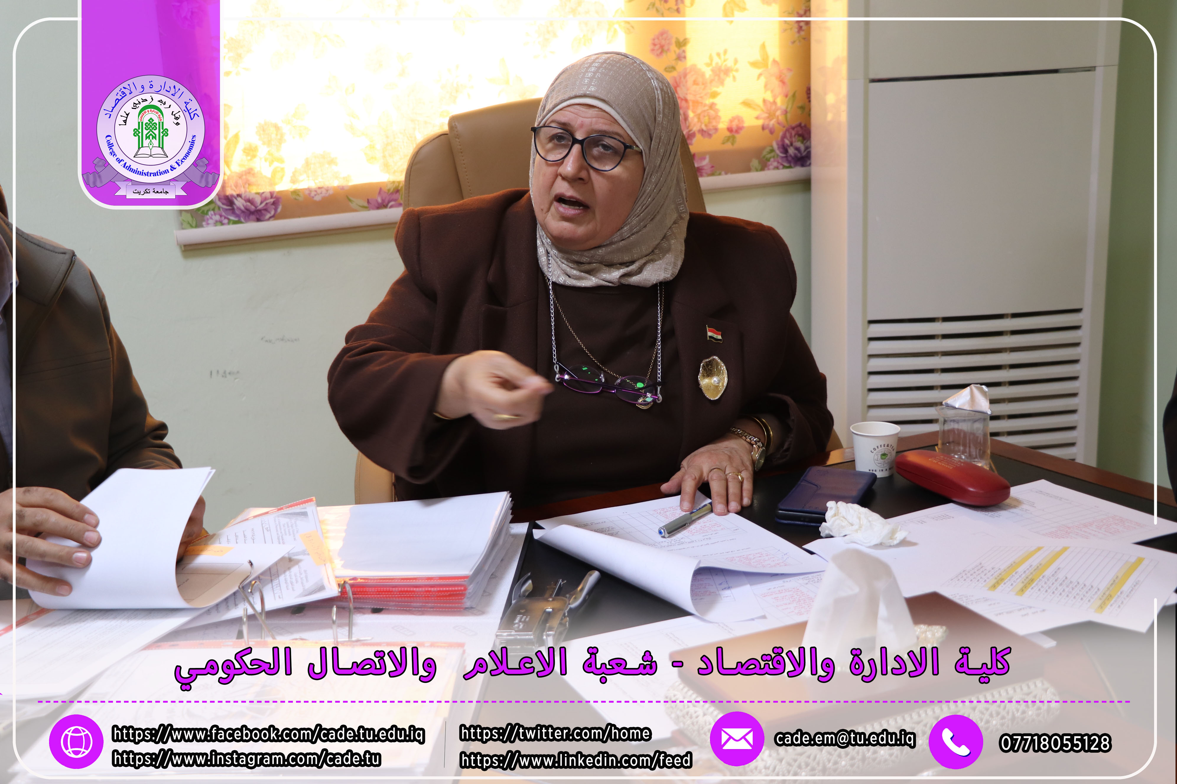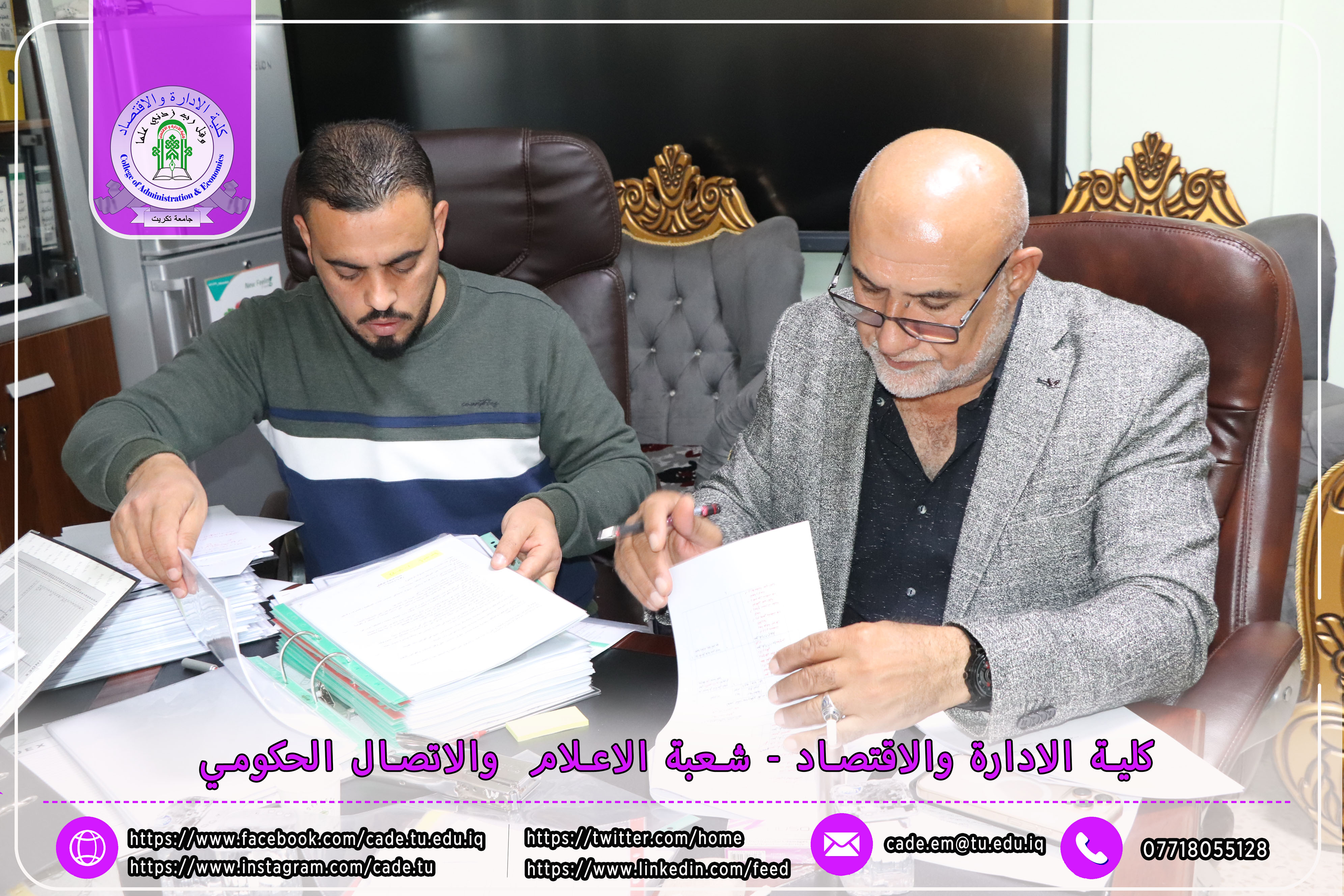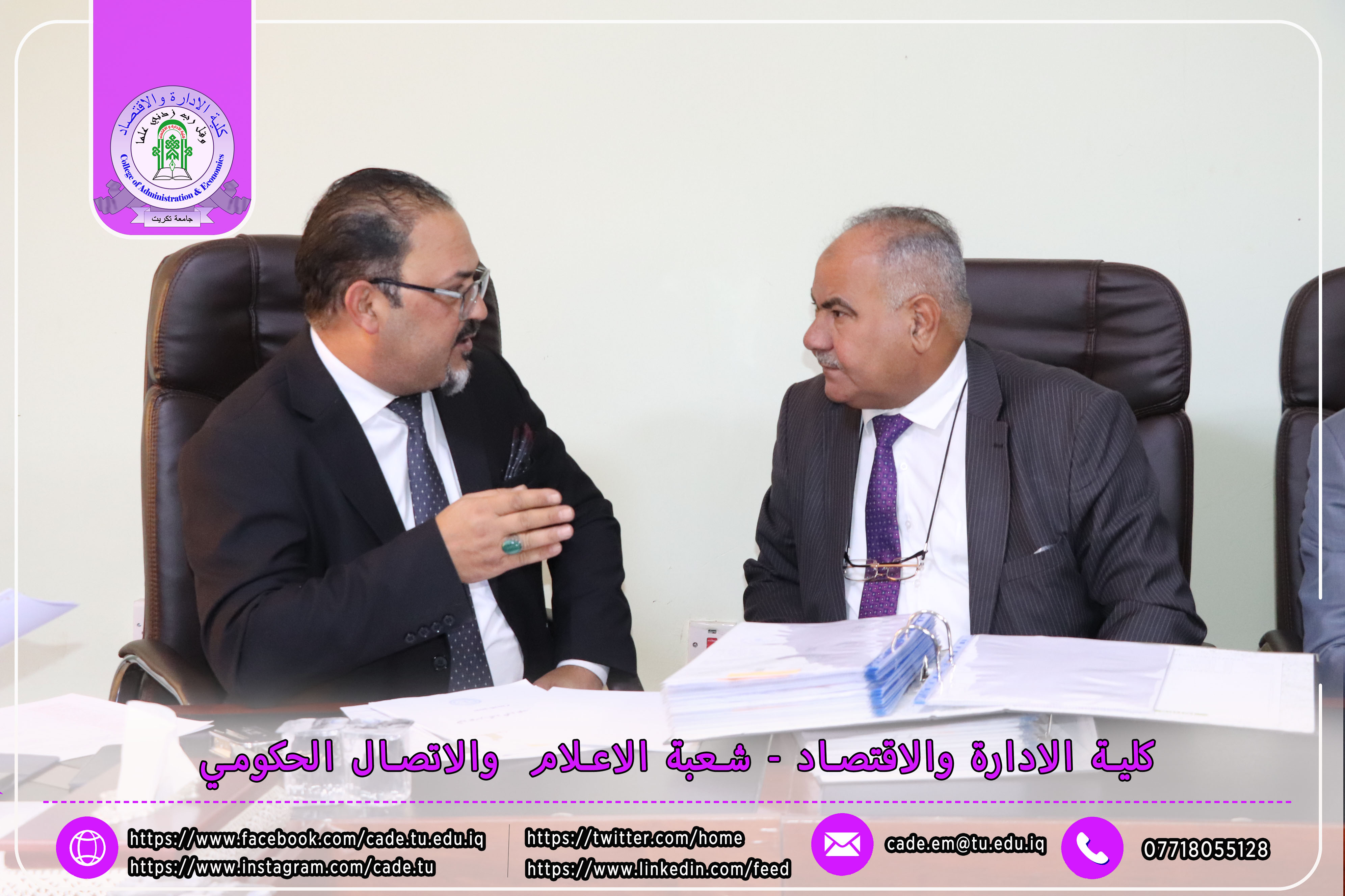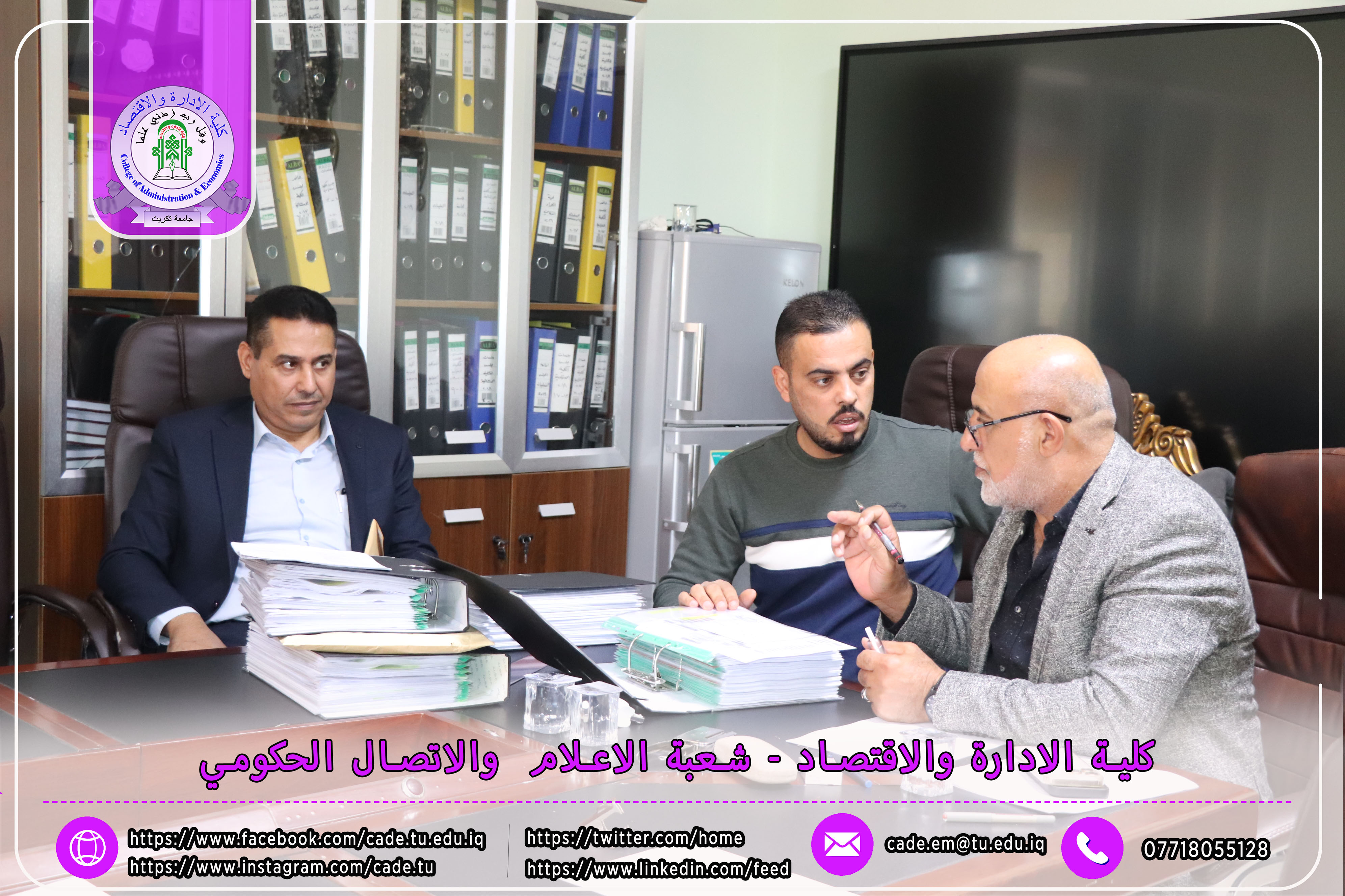 وكان في استقبال اللجنة كلٌّ من الأستاذ المساعد الدكتور فؤاد فرحان حسين عميد كلية الإدارة والاقتصاد، والأستاذ المساعد الدكتور خطاب عمران صالح معاون العميد للشؤون العلمية، إلى جانب عدد السادة التدريسيين ومسؤولي الشعب والوحدات الإدارية.