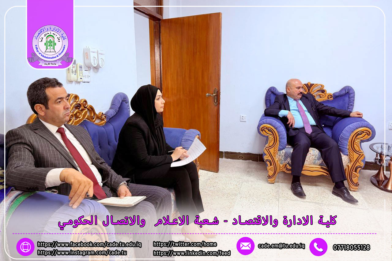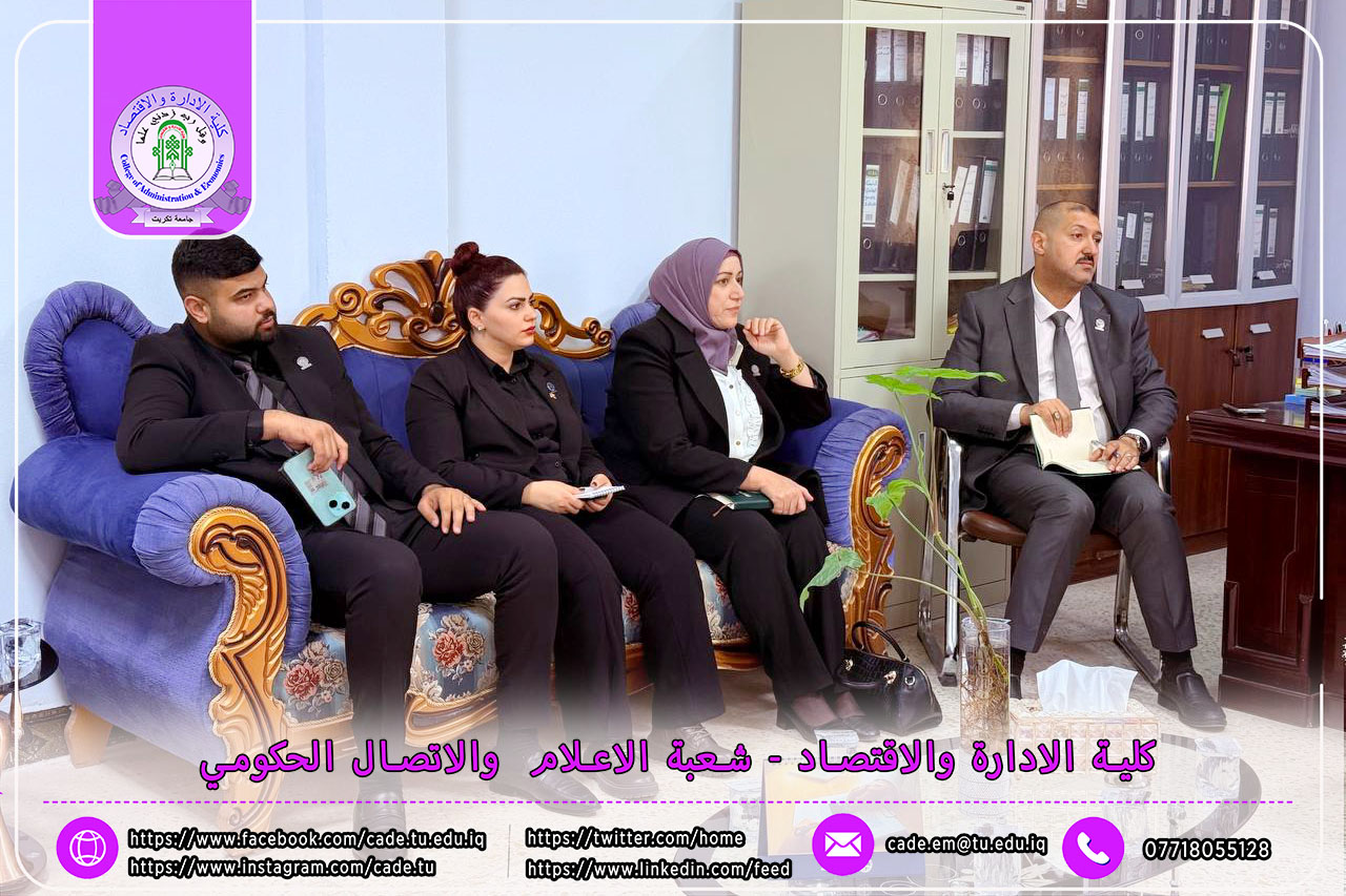 في إطار تعزيز أواصر التعاون العلمي والمؤسسي بين جامعة تكريت والمؤسسات المالية الوطنية، واستعداداً لانطلاق مؤتمرها العلمي الدولي السابع، استقبلت كلية الإدارة والاقتصاد وفداً من البنك المركزي العراقي – فرع الموصل، وذلك يوم الخميس الموافق 2025/11/27.