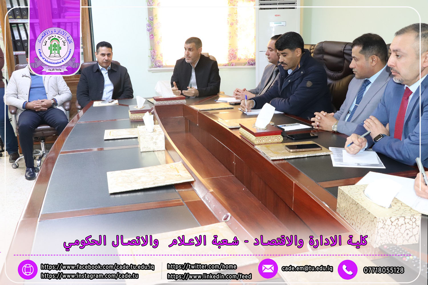 في إطار التحضيرات الجارية لانعقاد المؤتمر العلمي الدولي السادس الذي تنظمه كلية الإدارة والاقتصاد في جامعة تكريت، عقدت اللجنة المركزية للمؤتمر اجتماعها يوم الاحد الموافق 9 /2/ 2025 برئاسة الأستاذ الدكتور عبد الرزاق حمد حسين، عميد الكلية، وبحضور السادة معاوني العميد، ورؤساء وأعضاء اللجان المختصة.