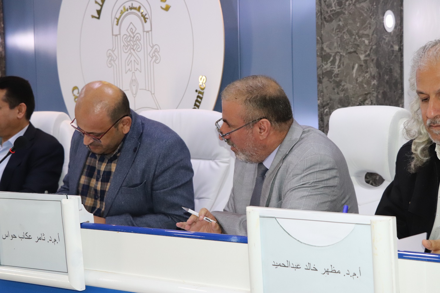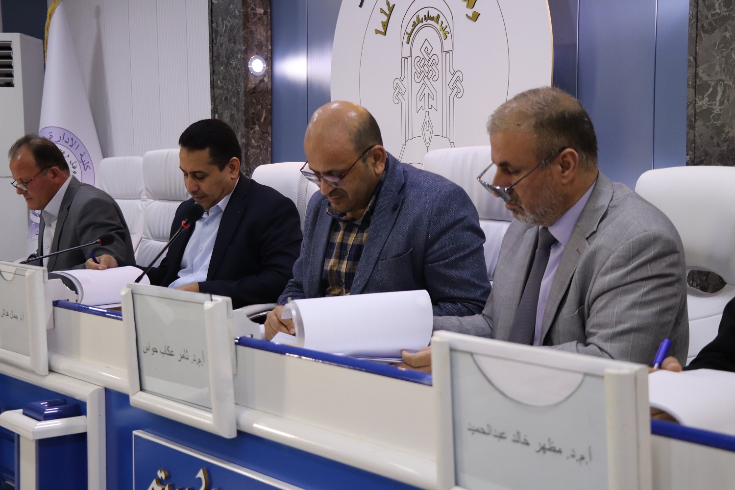 انعقد المؤتمر على رحاب كلية الإدارة والاقتصاد / قاعة الدكتور محمد بدع ، بحضور لجنة المناقشة التي ضمت نخبة من أساتذة الكلية، برئاسة الأستاذ الدكتور سطم صالح حسين، وعضوية كل من الأستاذ الدكتور مخيف جسم حمد، والأستاذ الدكتور جمال هداش محمد، والأستاذ المساعد الدكتور ثامر عكاب حواس، والأستاذ المساعد الدكتور مظهر خالد عبد الحميد.