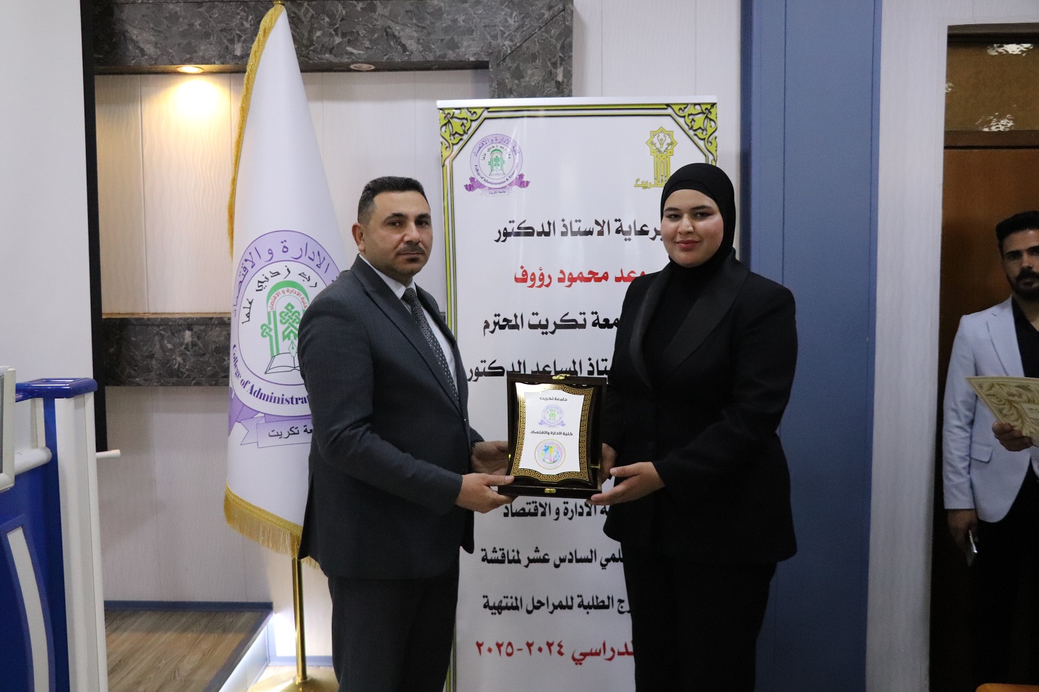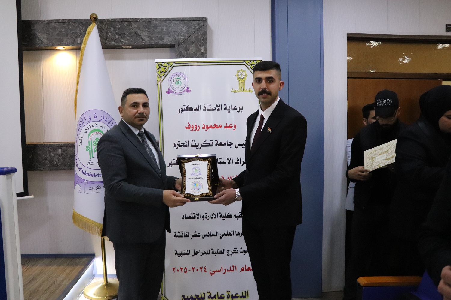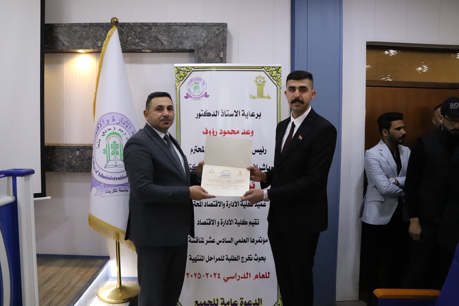 برعاية الأستاذ الدكتور وعد محمود رؤوف، رئيس جامعة تكريت، وبإشراف الأستاذ المساعد الدكتور فؤاد فرحان حسين، عميد كلية الإدارة والاقتصاد، أقامت الكلية مؤتمرها العلمي السادس عشر لمناقشة بحوث تخرج الطلبة للمراحل المنتهية للعام الدراسي 2024-2025