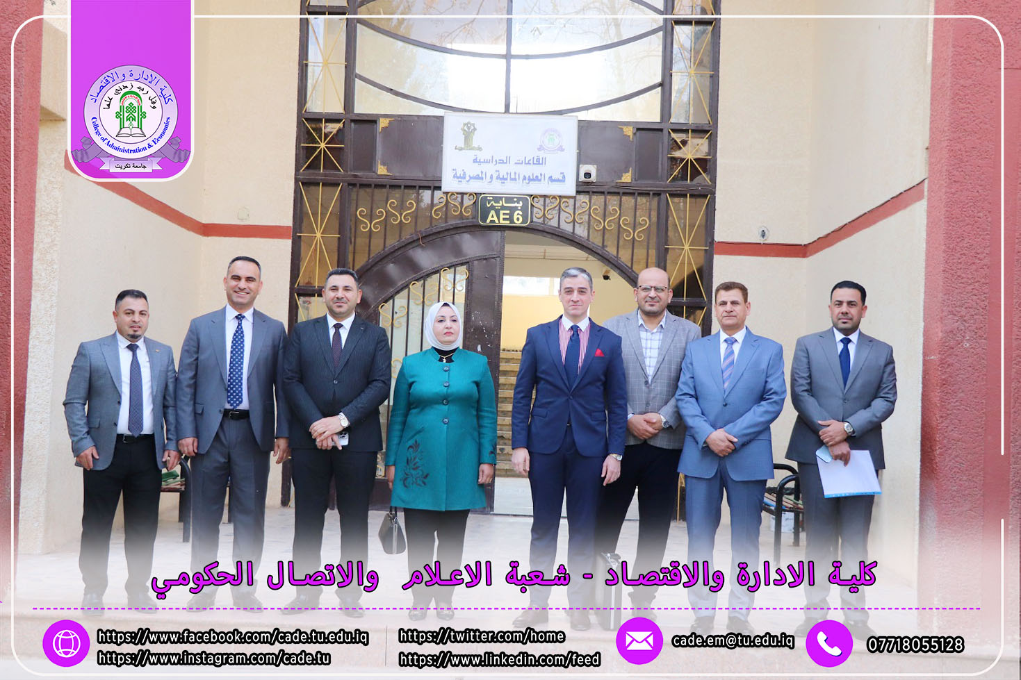 استقبلت عمادة كلية الإدارة والاقتصاد في جامعة تكريت، يوم الثلاثاء الموافق 2025/3/11، اللجنة الوزارية المكلفة بدراسة استحداث برنامج الدكتوراه في تخصص العلوم المالية والمصرفية، وذلك في إطار سعي عمادة الكلية لتعزيز برامجها الأكاديمية وتطوير الدراسات العليا.