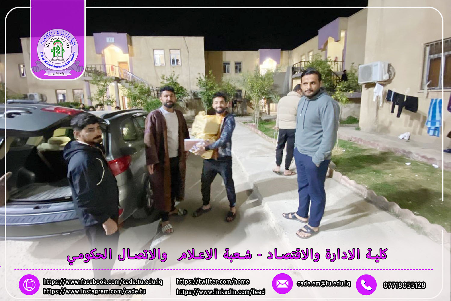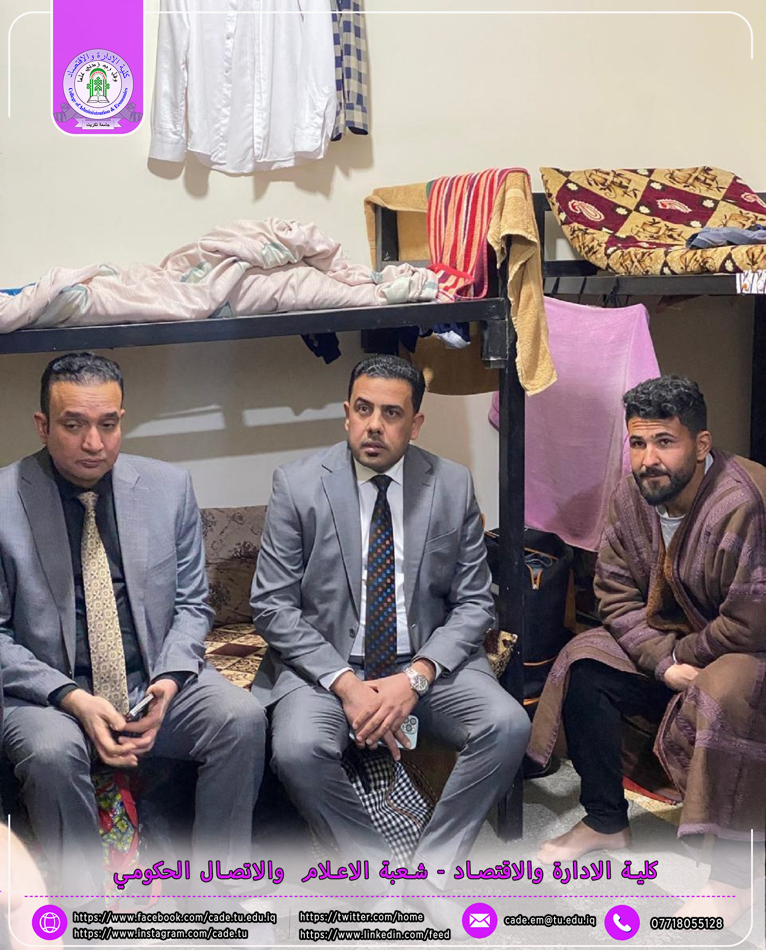 في إطار حرص عمادة كلية الإدارة والاقتصاد على متابعة أوضاع الطلبة في الأقسام الداخلية، وبمناسبة حلول شهر رمضان المبارك، قامت لجنة الإشراف على طلبة الدراسات العليا والأولية بزيارة ميدانية للأقسام الداخلية، وذلك لتفقد الخدمات المقدمة للطلبة والاطلاع على احتياجاتهم.