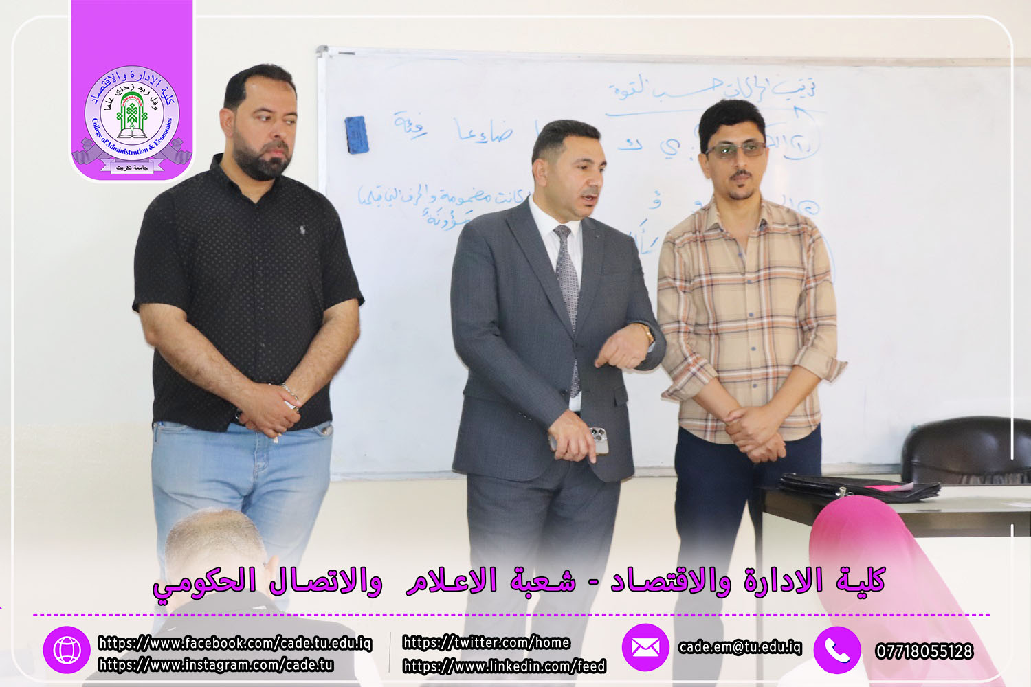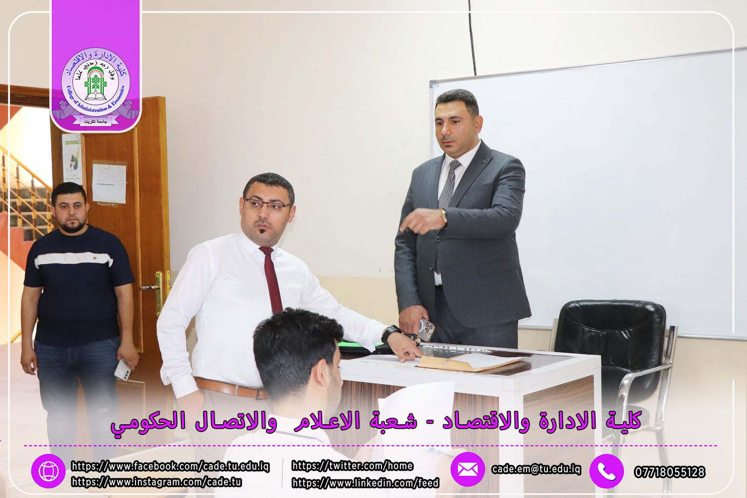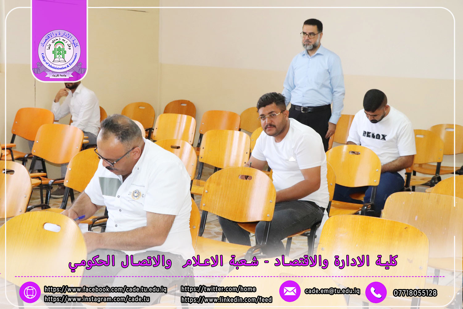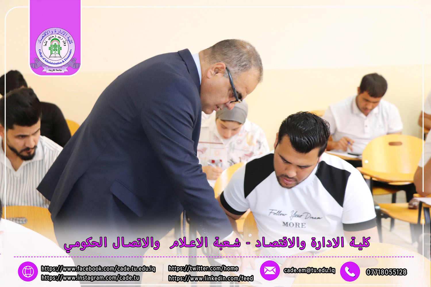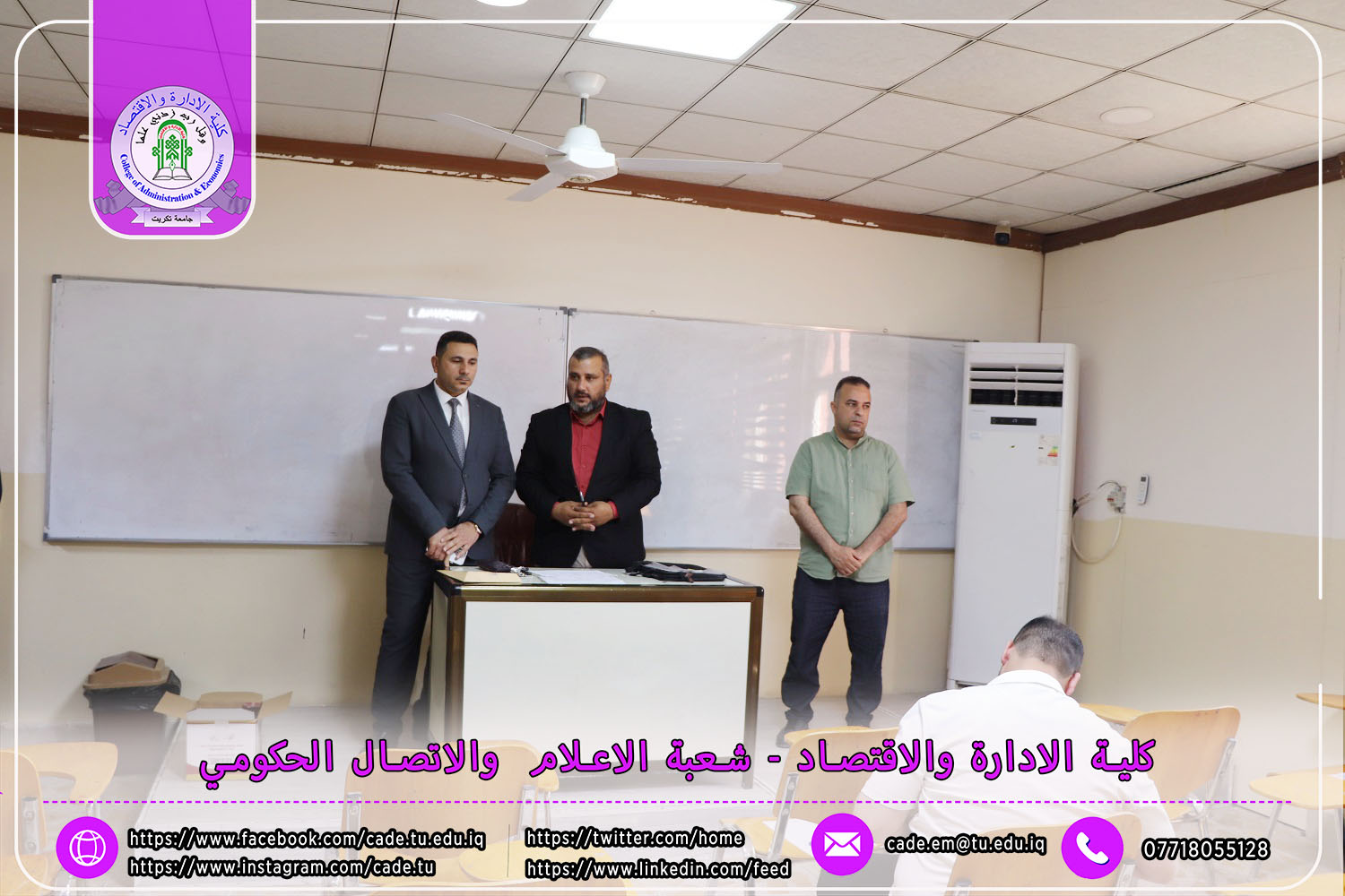 شهدت كلية الإدارة والاقتصاد في جامعة تكريت، يوم السبت الموافق 10 /5/ 2025، انطلاق الامتحان التقويمي (الوزاري) لطلبة المرحلتين الثالثة والرابعة في الدراستين الصباحية والمسائية لقسمي إدارة الأعمال والمحاسبة، للفصل الدراسي الثاني / الدور الاول للعام الدراسي 2024-2025، وذلك تنفيذًا لتوجيهات وزارة التعليم العالي والبحث العلمي بشأن تطبيق الامتحانات التقويمية المركزية.