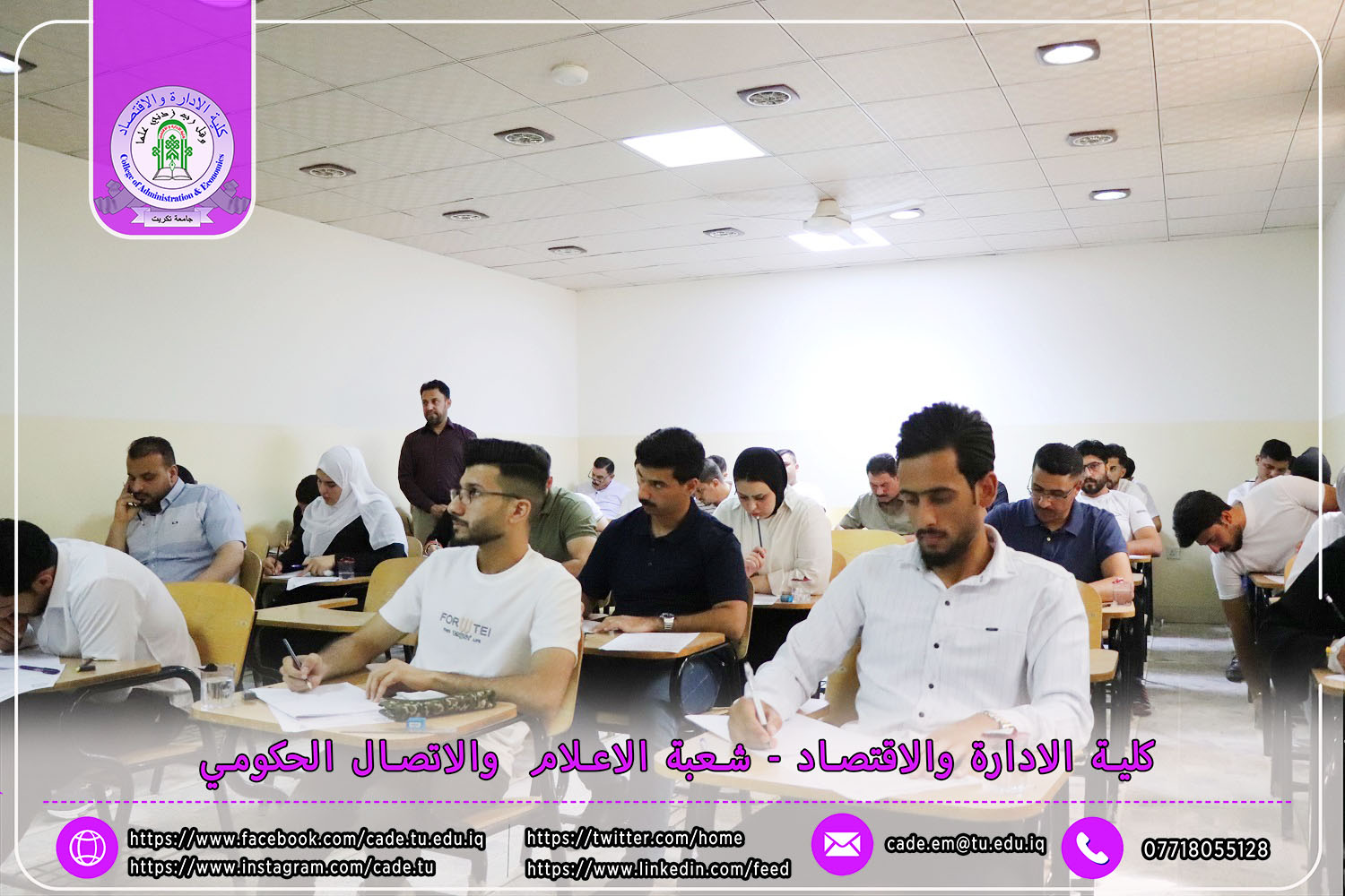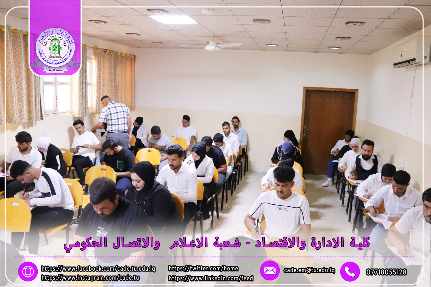 استنادًا إلى التقويم الجامعي للعام الدراسي 2025/2024 الصادر عن وزارة التعليم العالي والبحث العلمي / دائرة الدراسات والتخطيط والمتابعة / قسم الدراسات والتخطيط، تعلن كلية الإدارة والاقتصاد – جامعة تكريت عن بدء الامتحانات النهائية للفصل الدراسي الثاني / الدور الأول للعام الدراسي 2025/2024.