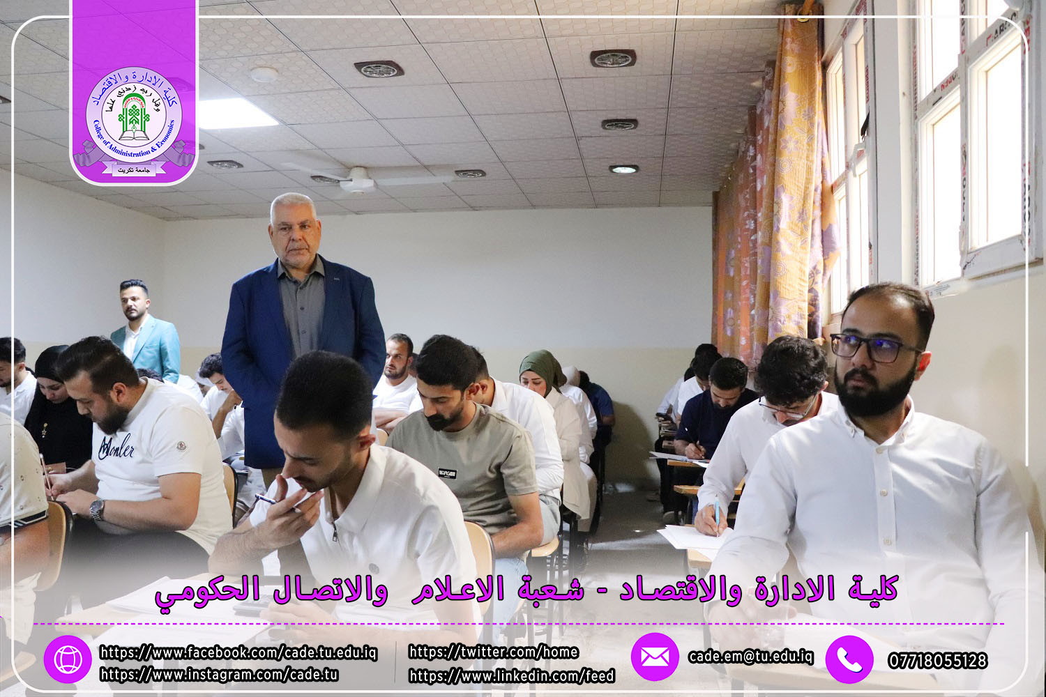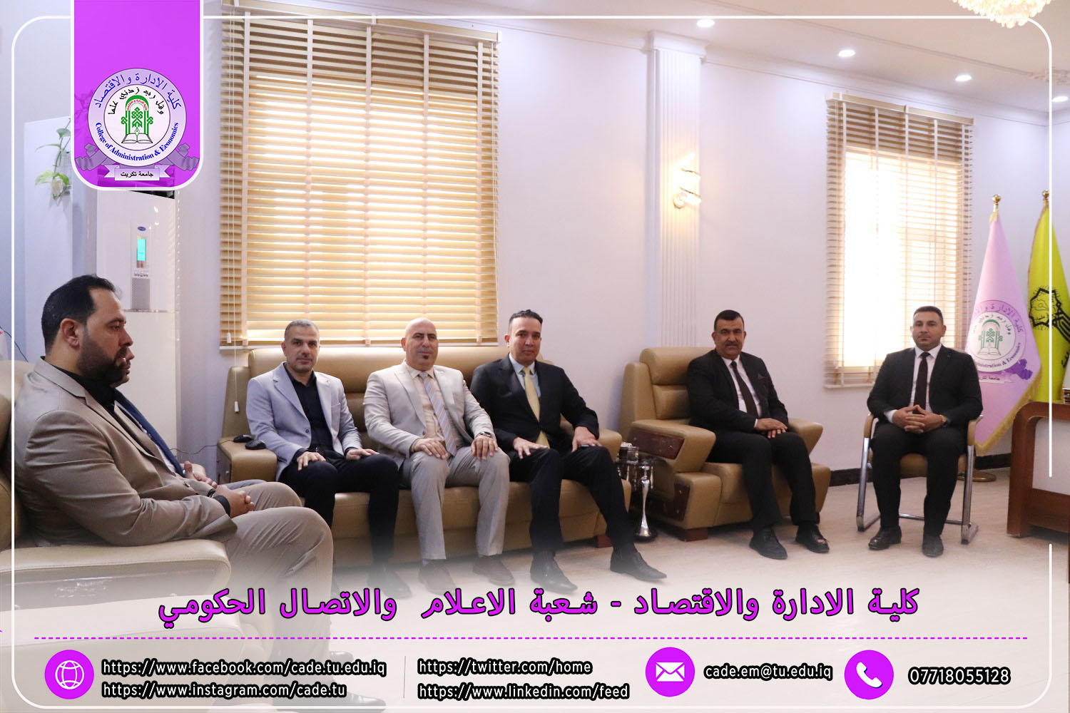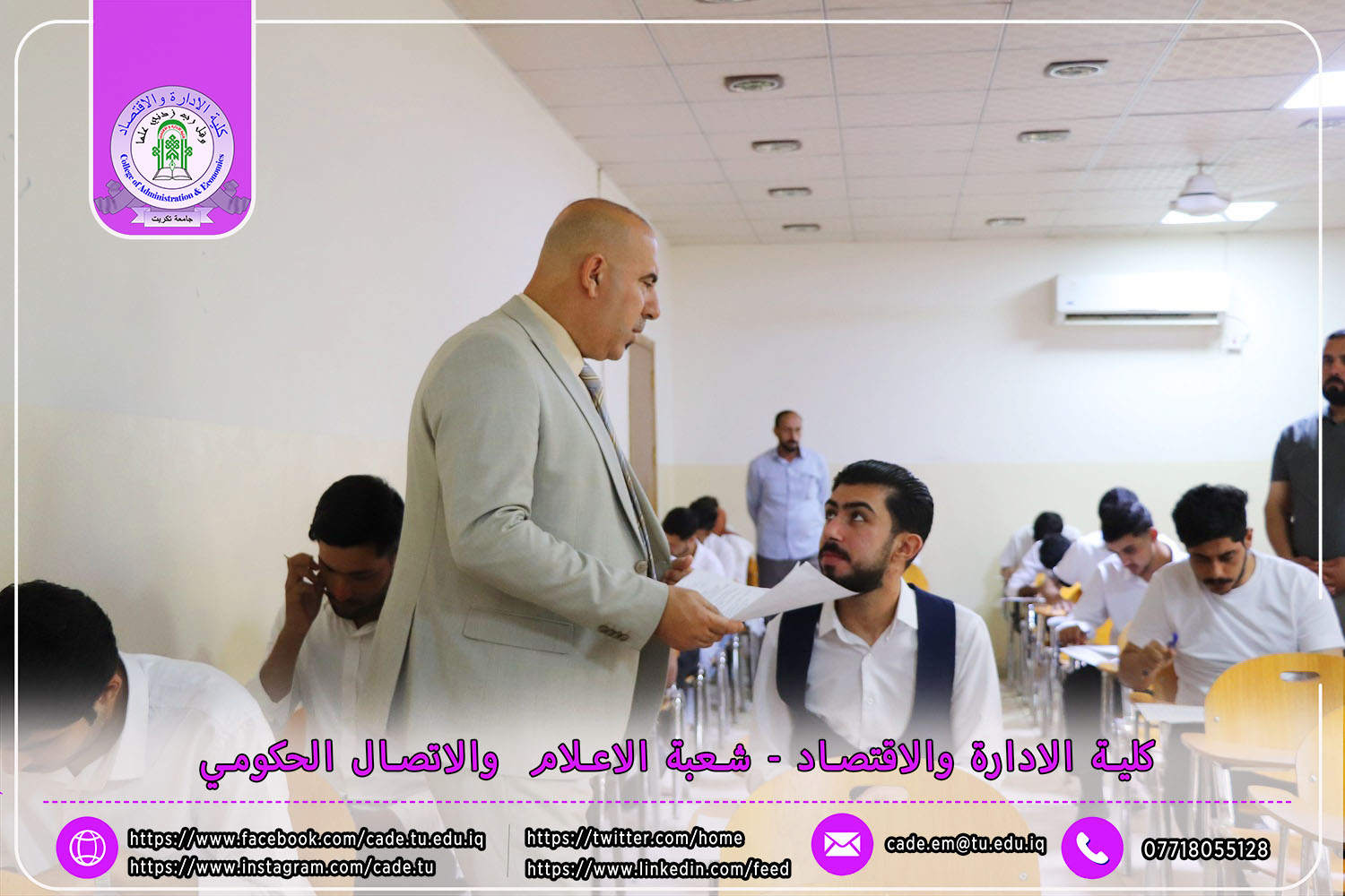 في إطار الجهود الرامية إلى تعزيز جودة العملية التعليمية والوقوف ميدانيًا على سير الامتحانات النهائية، استقبل السيد ا.م.د. فؤاد فرحان حسين عميد كلية الإدارة والاقتصاد في يوم الأحد الموافق 4 أيار 2025 لجنة متابعة سير الامتحانات النهائية للفصل الدراسي الثاني من العام الدراسي 2024–2025، لطلبة الدراسات الأولية.