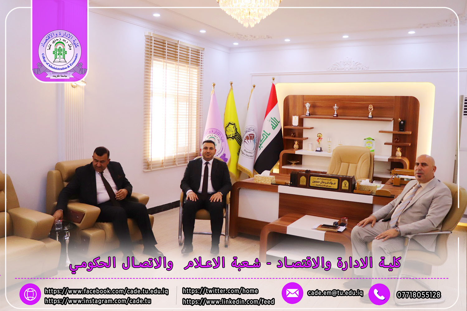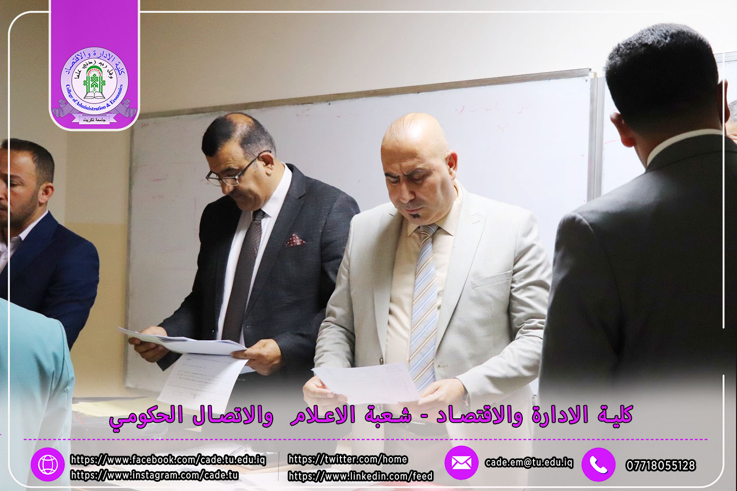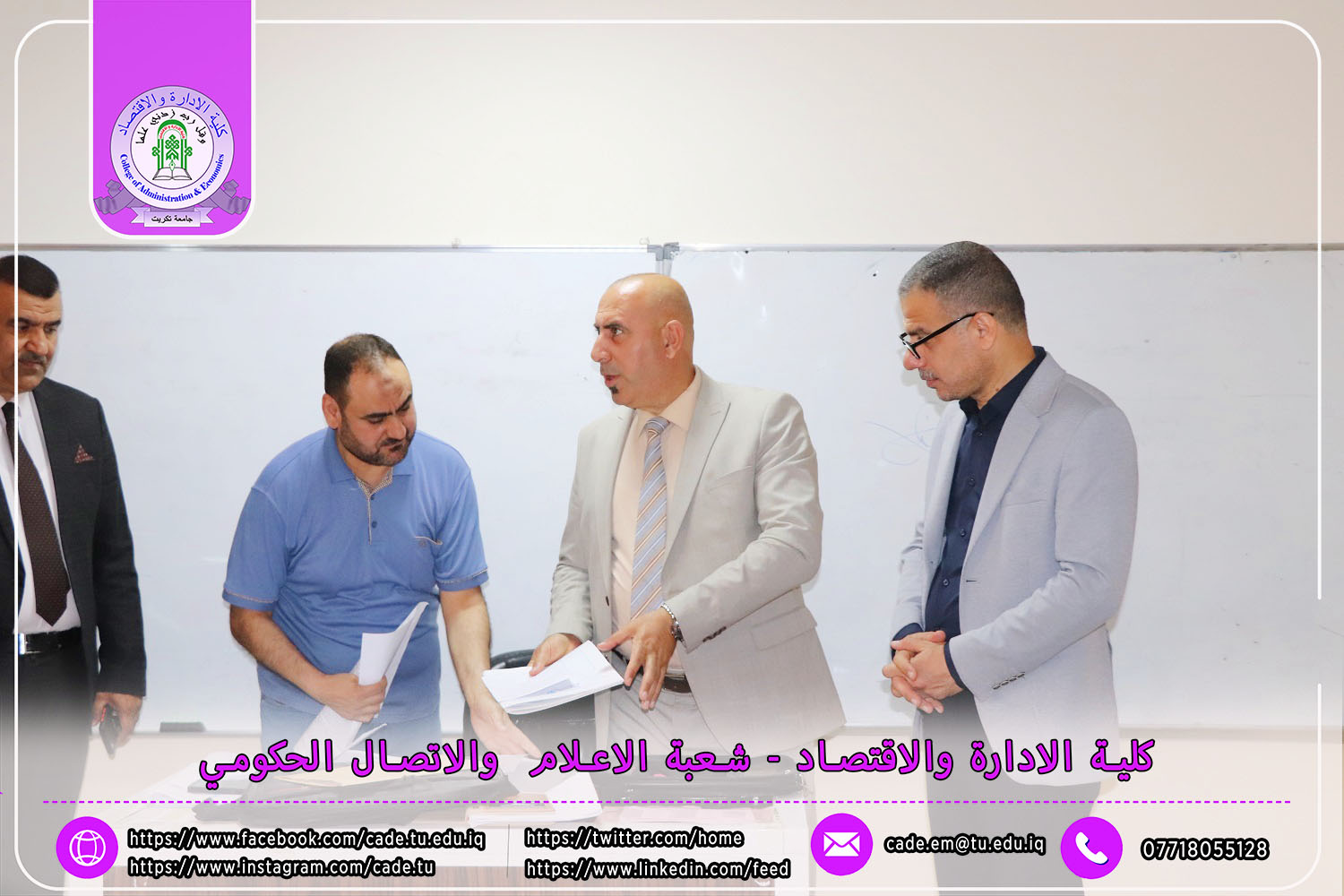 في إطار الجهود الرامية إلى تعزيز جودة العملية التعليمية والوقوف ميدانيًا على سير الامتحانات النهائية، استقبل السيد ا.م.د. فؤاد فرحان حسين عميد كلية الإدارة والاقتصاد في يوم الأحد الموافق 4 أيار 2025 لجنة متابعة سير الامتحانات النهائية للفصل الدراسي الثاني من العام الدراسي 2024–2025، لطلبة الدراسات الأولية.