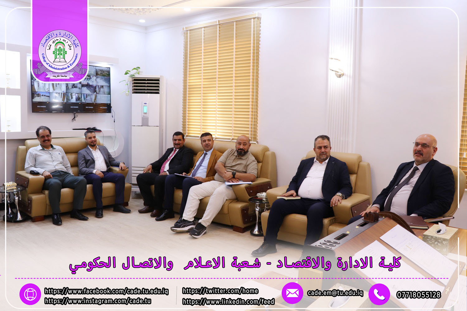 في إطار جهود كلية الإدارة والاقتصاد / جامعة تكريت لتطوير البرامج الأكاديمية ومواكبة التحولات الرقمية العالمية، استقبل السيد العميد، الأستاذ المساعد الدكتور فؤاد فرحان حسين، برفقة معاونيه والسيد رئيس قسم الاقتصاد الأستاذ الدكتور إبراهيم عبد الله جاسم، اللجنة الوزارية المكلفة بالنظر في استحداث قسم الاقتصاد الرقمي، وذلك يوم الأربعاء الموافق 2055/5/7.