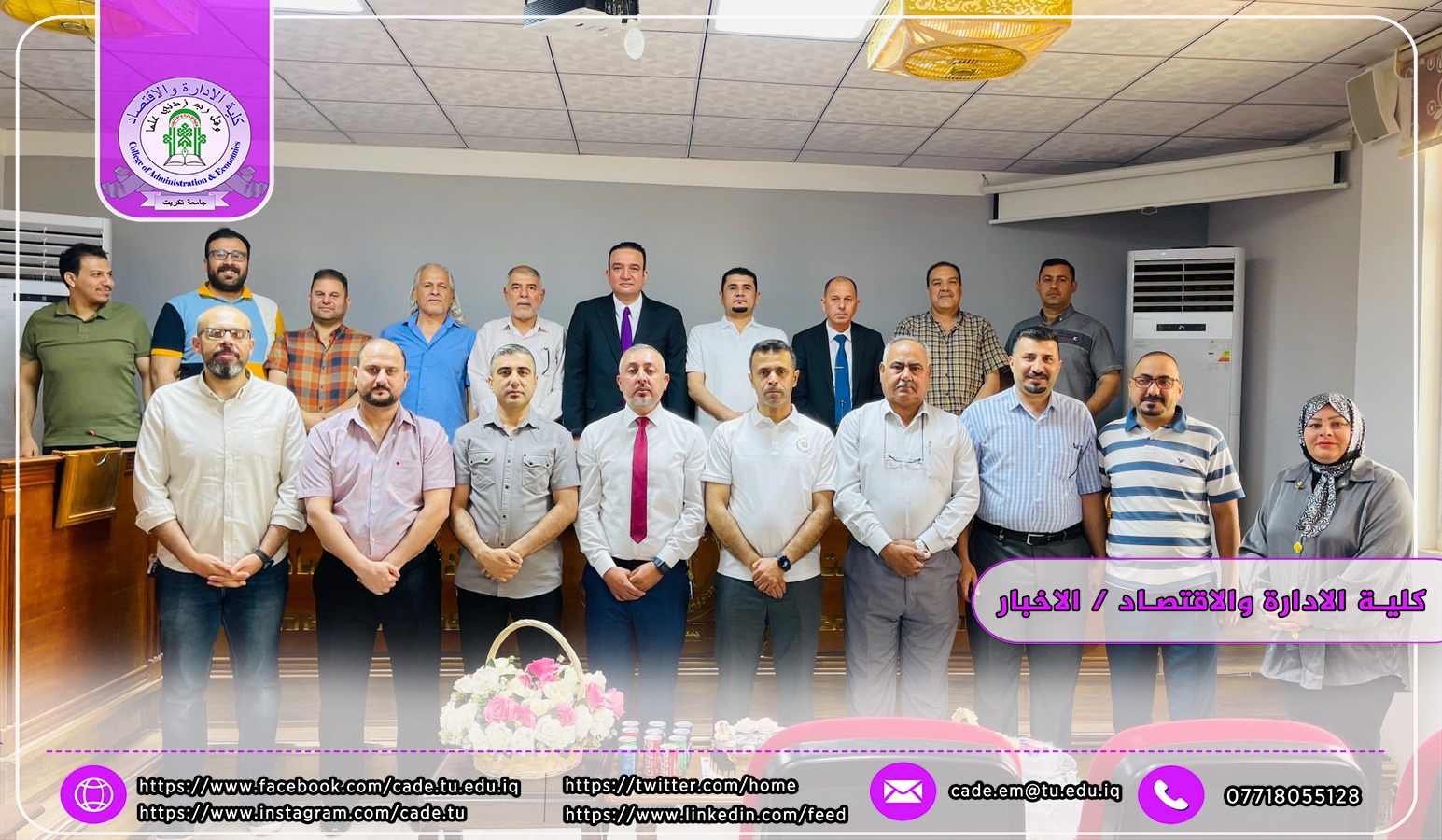 في أجواء امتزجت بالمحبة والامتنان، أقامت كلية الإدارة والاقتصاد - جامعة تكريت يوم الخميس الموافق 3/7/2025 حفلاً تكريمياً للأستاذ الدكتور قاسم أحمد حنظل، التدريسي في قسم إدارة الأعمال، بمناسبة إحالته إلى التقاعد، بعد مسيرة علمية حافلة بالعطاء والتميز.