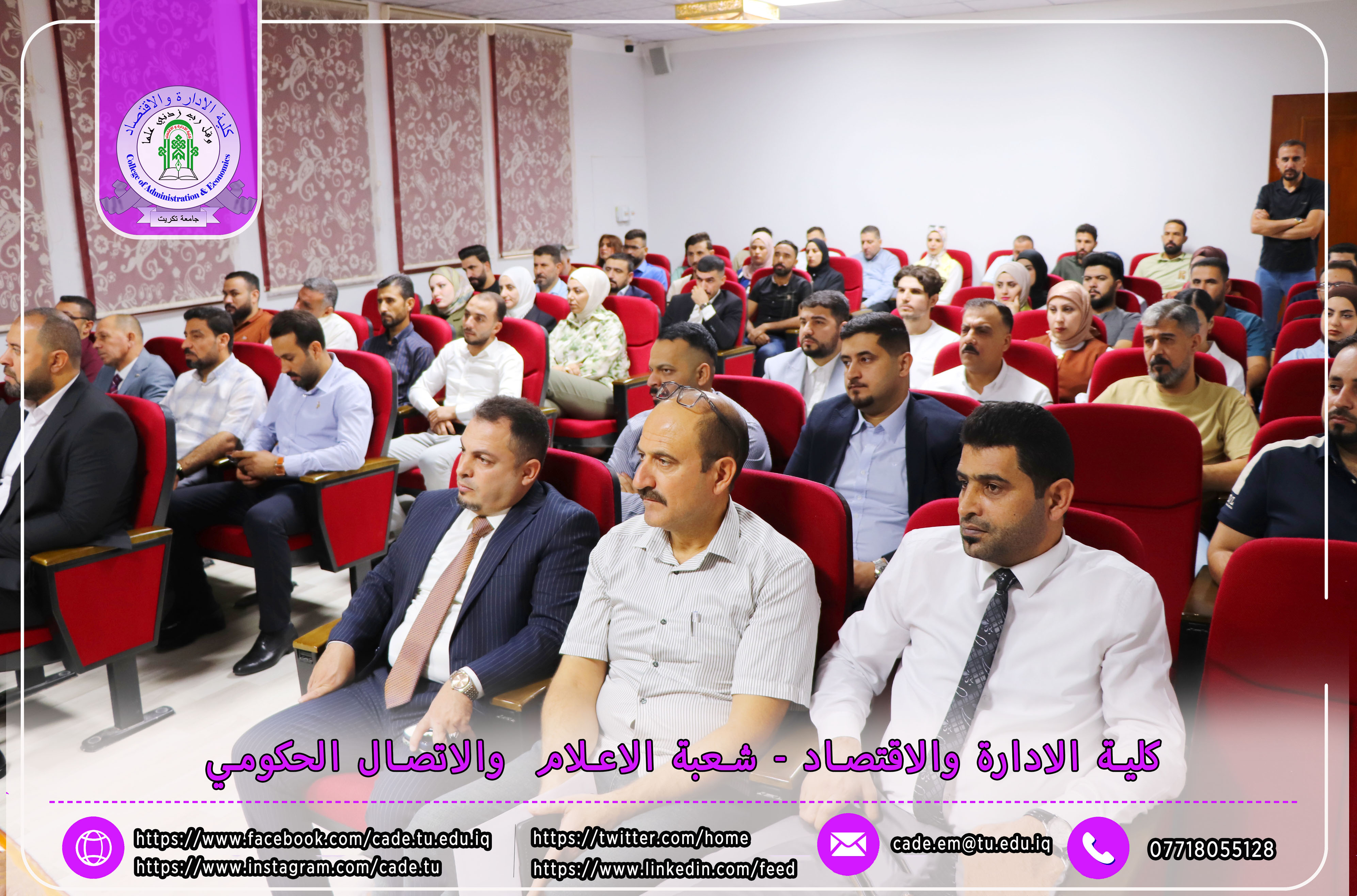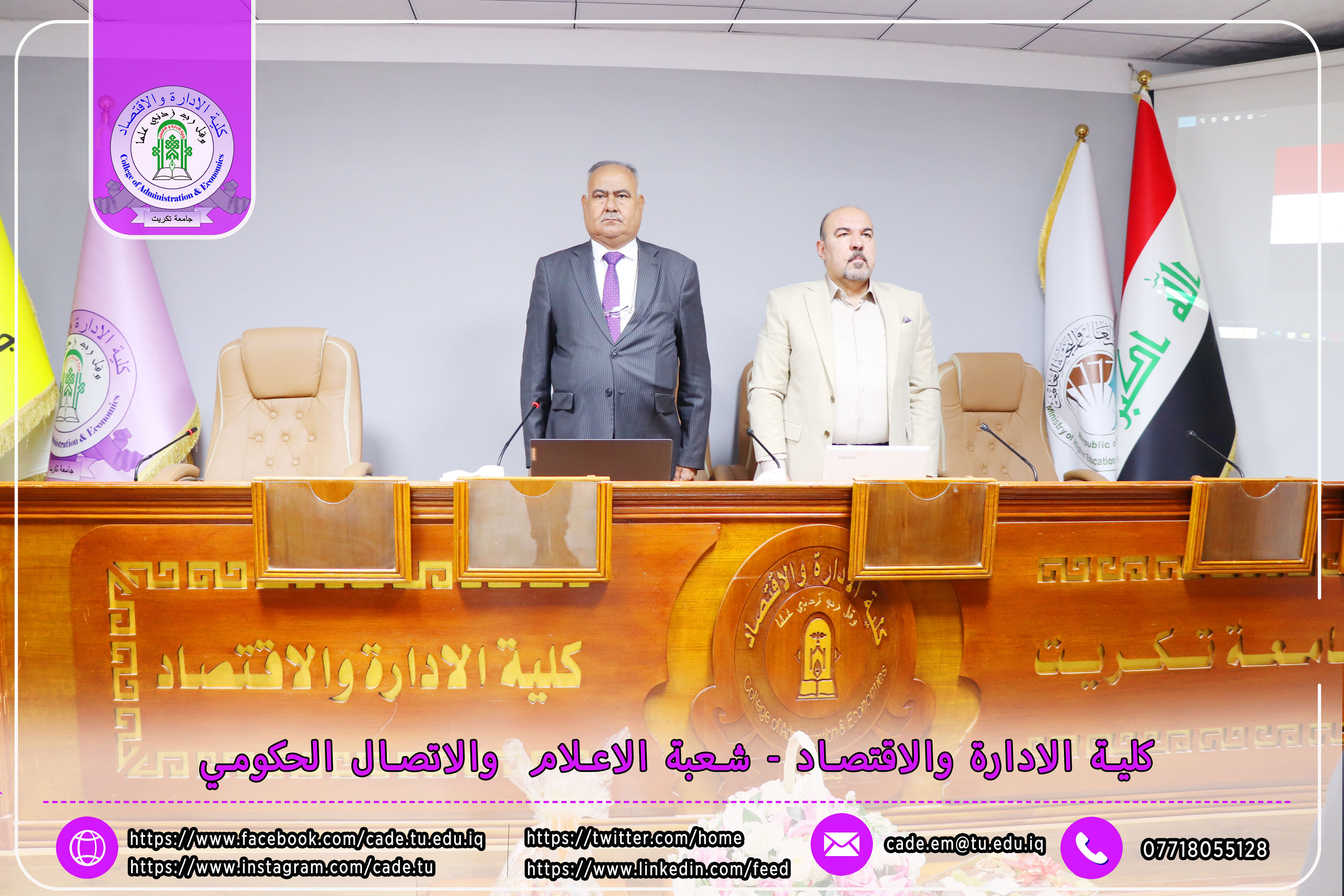 استنادا الى توجيهات وزارة التعليم العالي والبحث العلمي/ دائرة الدراسات والتخطيط والمتابعة/ قسم الاستراتيجيات والسياسات العامة. وانطلاقًا من دورها الريادي في دعم السياسات الوطنية وترسيخ قيم المسؤولية المجتمعية، نظّمت كلية الإدارة والاقتصاد في جامعة تكريت ندوة تعريفية موسعة بعنوان "متابعة وتفعيل استراتيجية الأمن الوطني العراقي (العراق أولاً) 2025–2030"، وذلك يوم الأربعاء الموافق 24 /9/ 2025 على قاعة قسم ادارة الاعمال. وجاءت هذه الندوة برعاية السيد رئيس جامعة تكريت الأستاذ الدكتور وعد محمود رؤوف، وبإشراف عميد الكلية الأستاذ المساعد الدكتور فؤاد فرحان حسين.