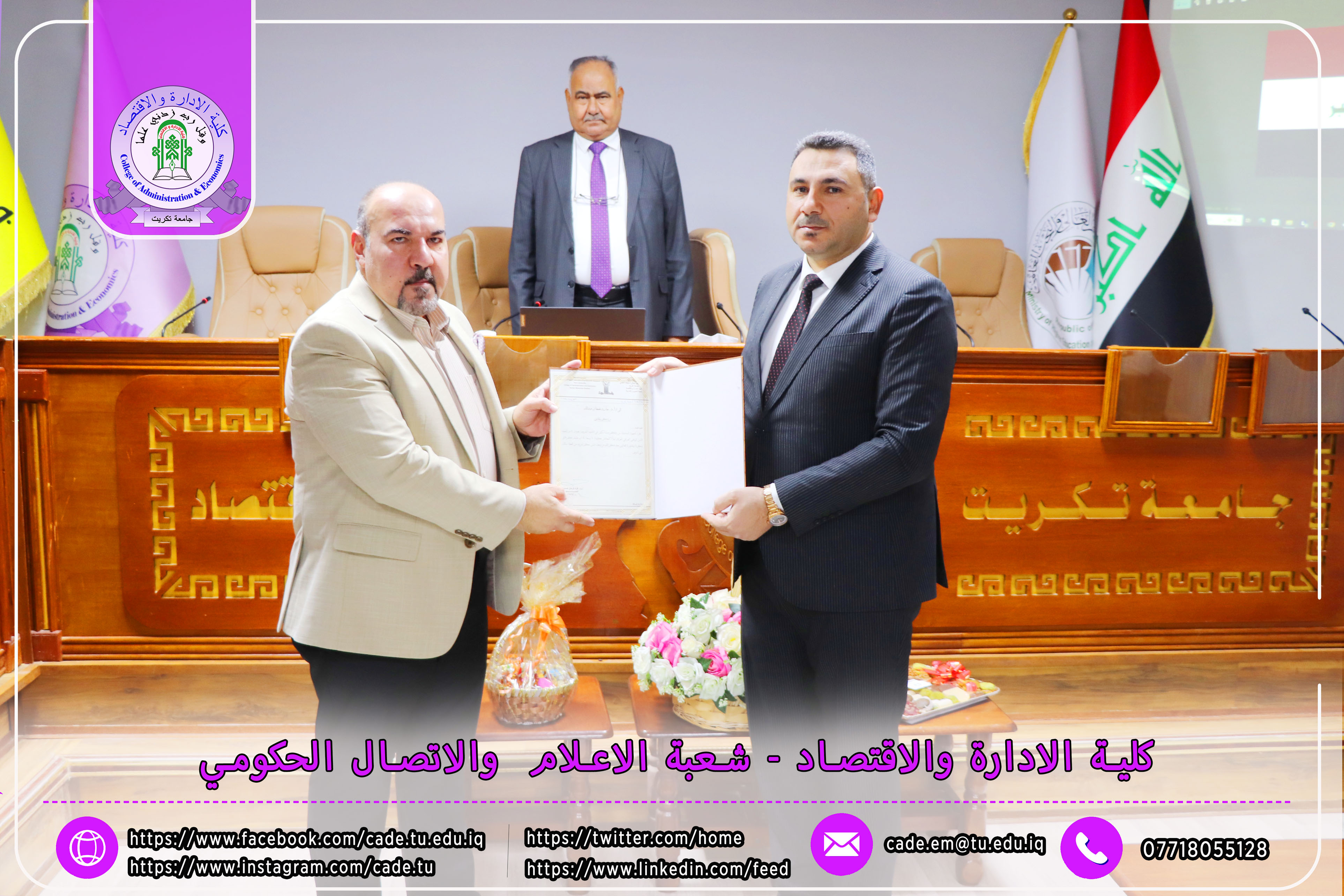 هذا وقد شهدت الندوة حضورًا مميزًا تقدمه ا.م.د. فؤاد فرحان حسين عميد الكلية وم.د. أحمد عايد مخلف معاون العميد للشؤون الإدارية والمالية وأ.د. عامر علي حمد رئيس قسم إدارة الأعمال وأ.م.د. مثنى روكان جاسم رئيس قسم المحاسبة ا.د. إبراهيم علي كردي رئيس قسم العلوم المالية والمصرفية إلى جانب نخبة من التدريسيين والموظفين وطلبة الدراسات الأولية.