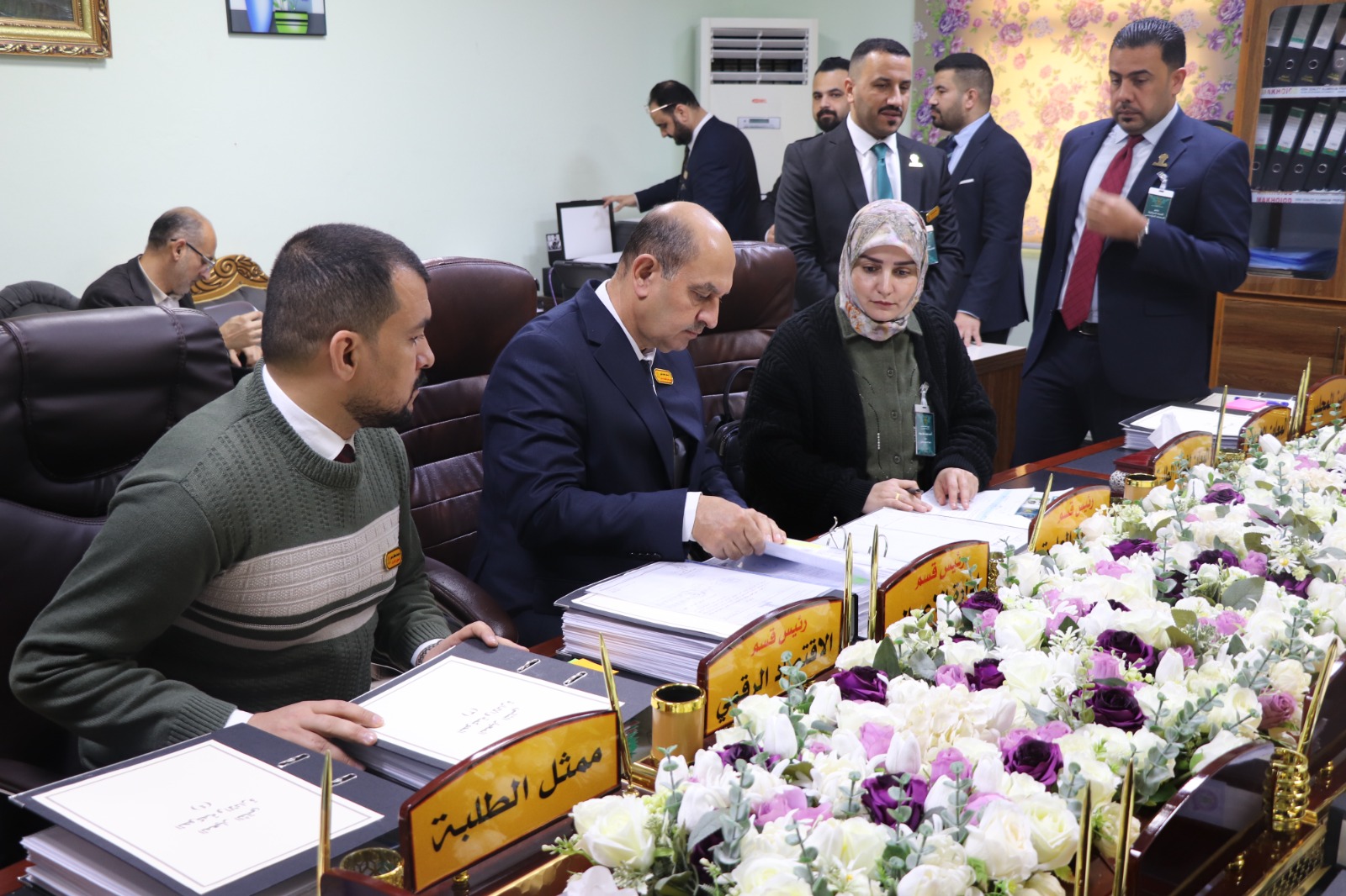 وكان في استقبال الفريق الوزاري الأستاذ المساعد الدكتور فؤاد فرحان حسين عميد كلية الإدارة والاقتصاد، ومعاونوه، إضافة إلى اللجان المختصة المكلفة بمتابعة متطلبات ومعايير الاعتماد لكل محور.