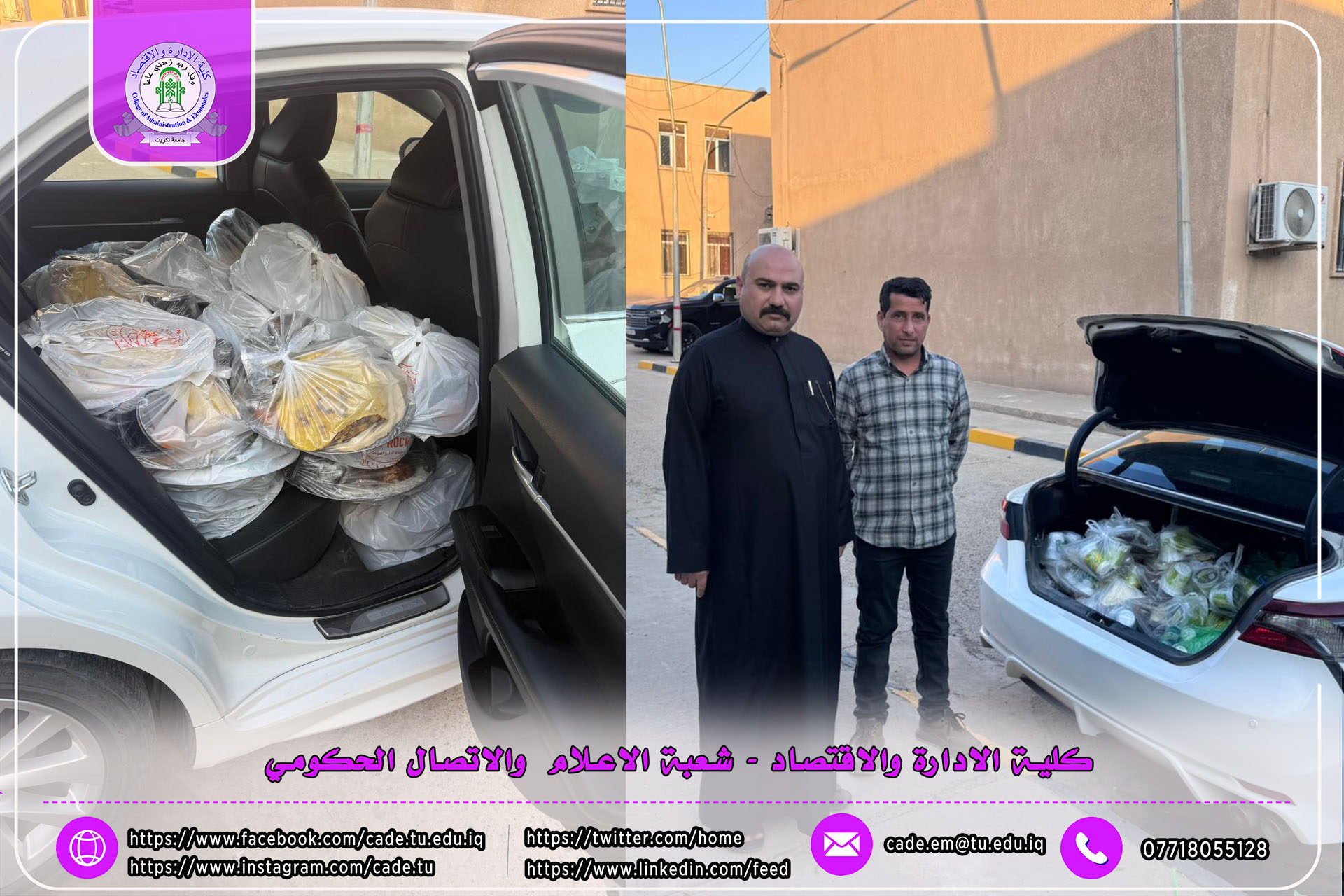 برعاية الأستاذ الدكتور وعد محمود رؤوف، رئيس جامعة تكريت، وبإشراف الأستاذ المساعد الدكتور فؤاد فرحان حسين، عميد كلية الإدارة والاقتصاد، وبمتابعة معاون العميد لشؤون الطلبة الأستاذ المساعد الدكتور قتيبة إبراهيم حمادة ومعاون العميد للشؤون الإدارية والمالية الأستاذ المساعد الدكتور أحمد نوار نصيف، نظّمت كلية الإدارة والاقتصاد يوم الثلاثاء الموافق 10/3/2026 وجبة إفطار جماعية لطلبتها وطالباتها المقيمين في الأقسام الداخلية، وذلك بمناسبة حلول شهر رمضان المبارك.