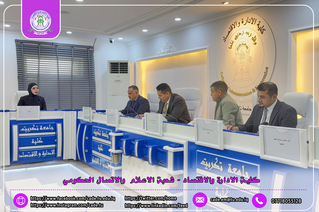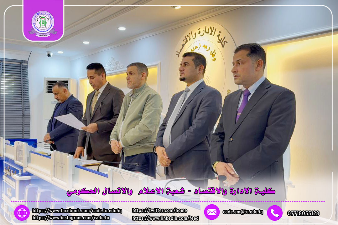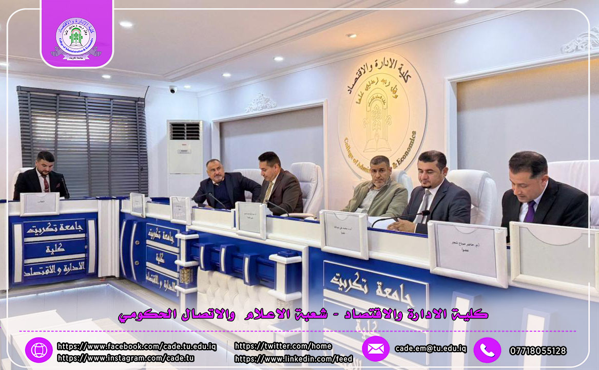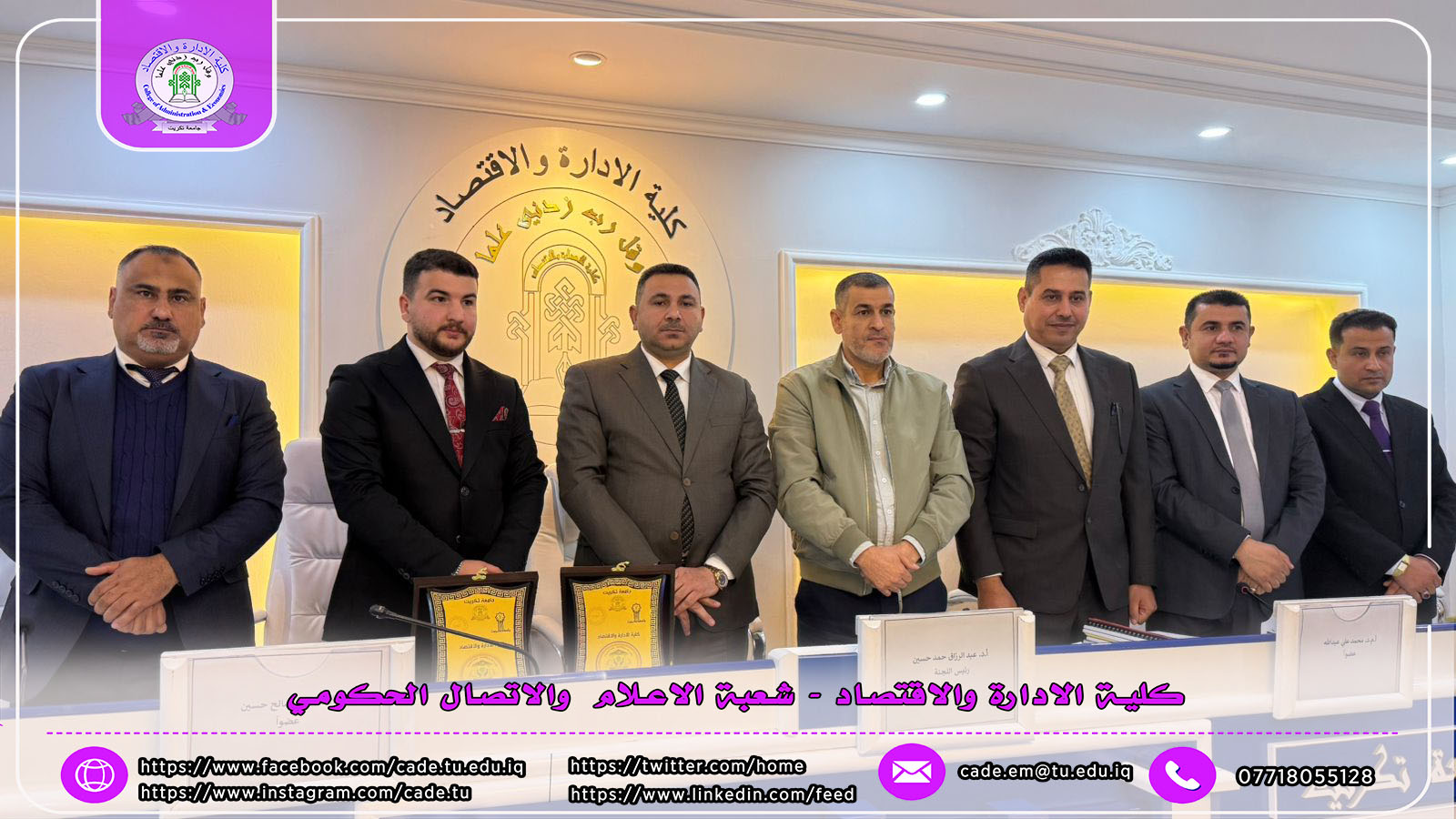 برعاية الأستاذ الدكتور وعد محمود رؤوف، رئيس جامعة تكريت، وبإشراف الأستاذ المساعد الدكتور فؤاد فرحان حسين، عميد كلية الإدارة والاقتصاد، أقامت الكلية مؤتمرها العلمي السابع عشر لمناقشة بحوث تخرج الطلبة للمراحل المنتهية للعام الدراسي 2025-2026