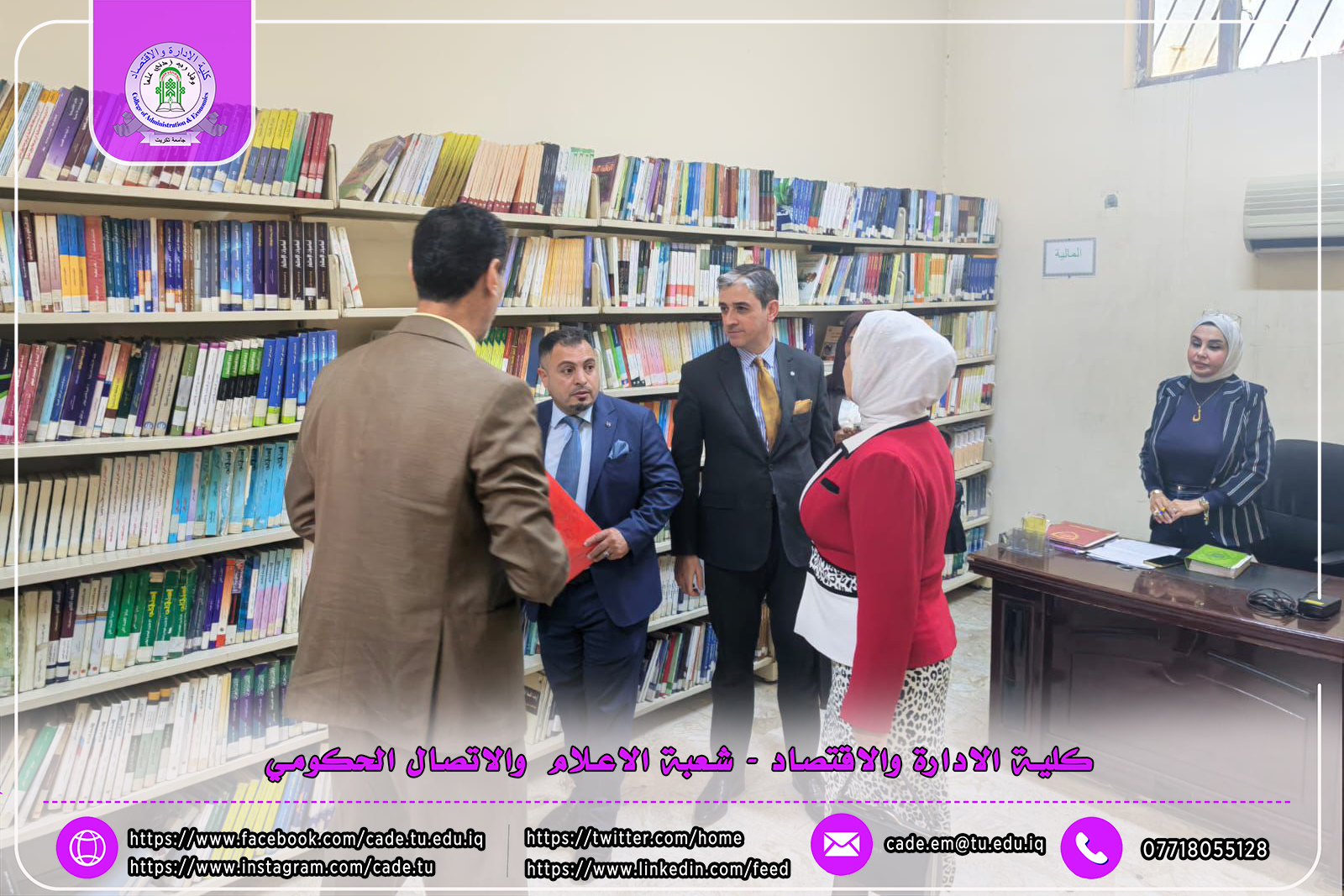 وفي سياق مهامها، أجرت اللجنة زيارة ميدانية إلى كلية الإدارة والاقتصاد في الجامعة المستنصرية، برئاسة الأستاذ الدكتور إبراهيم علي كردي، للاطلاع على الإمكانيات المادية والبشرية، وتقييم مدى جاهزية القسم العلمي لاحتضان برنامج الدكتوراه، فضلاً عن التأكد من استيفاء الشروط والمعايير المنصوص عليها في تعليمات الدراسات العليا رقم (26) لسنة 1990.