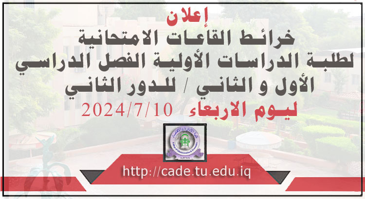 ويتوجب على الطلبة متابعة تحديثات خرائط القاعات الامتحانية يوميًا عبر الموقع الرسمي للكلية ومواقع التواصل الاجتماعي، حيث سيتم تحديثها باستمرار لضمان سير العملية الامتحانية.