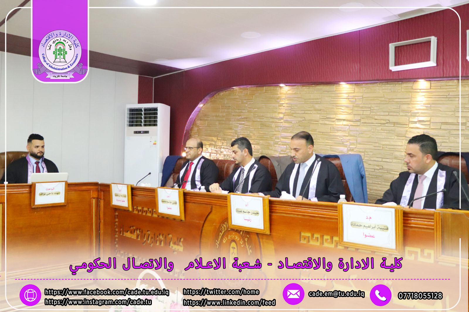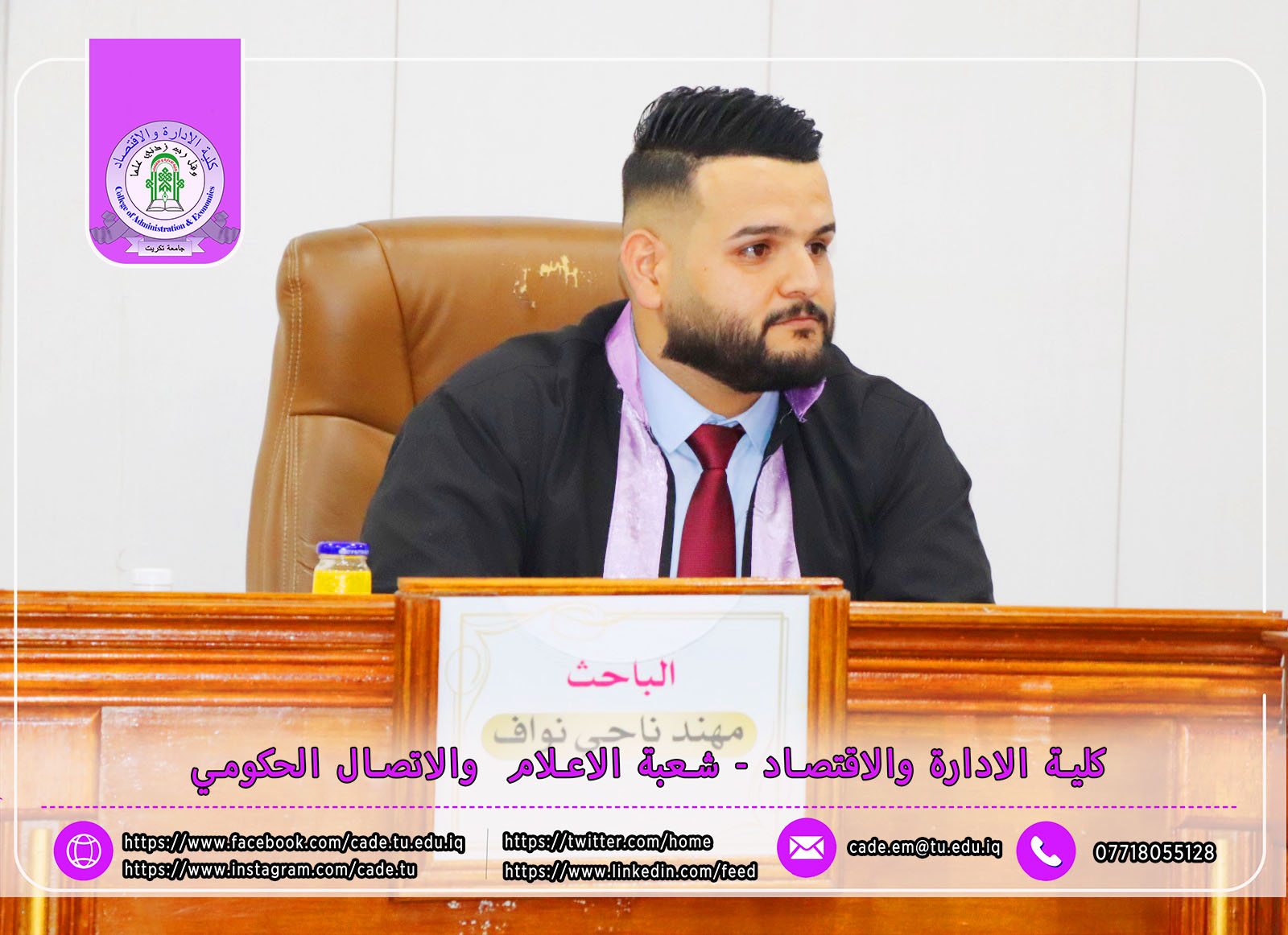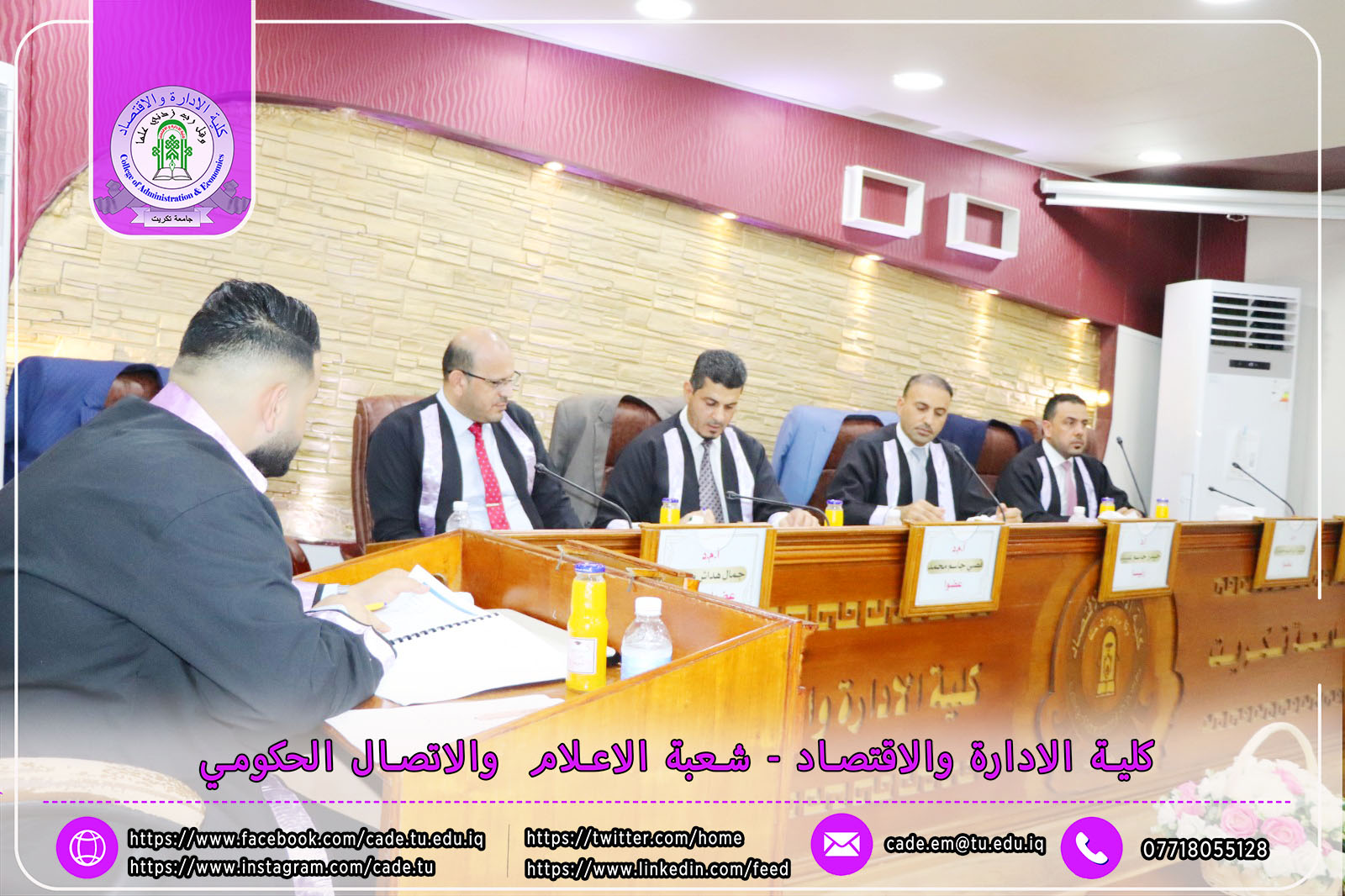نوقشـت في كليـة الإدارة والاقتصاد رسالة الماجستير في العلوم المالية والمصرفية للطالب مهند ناجي نواف الموسـومة (تأثير جودة الموجودات في الربحية المصرفية: دراسة تحليلية لعينة من المصارف التجارية الخاصة) بأشــراف ا.م.د. جمال هداش محمد.