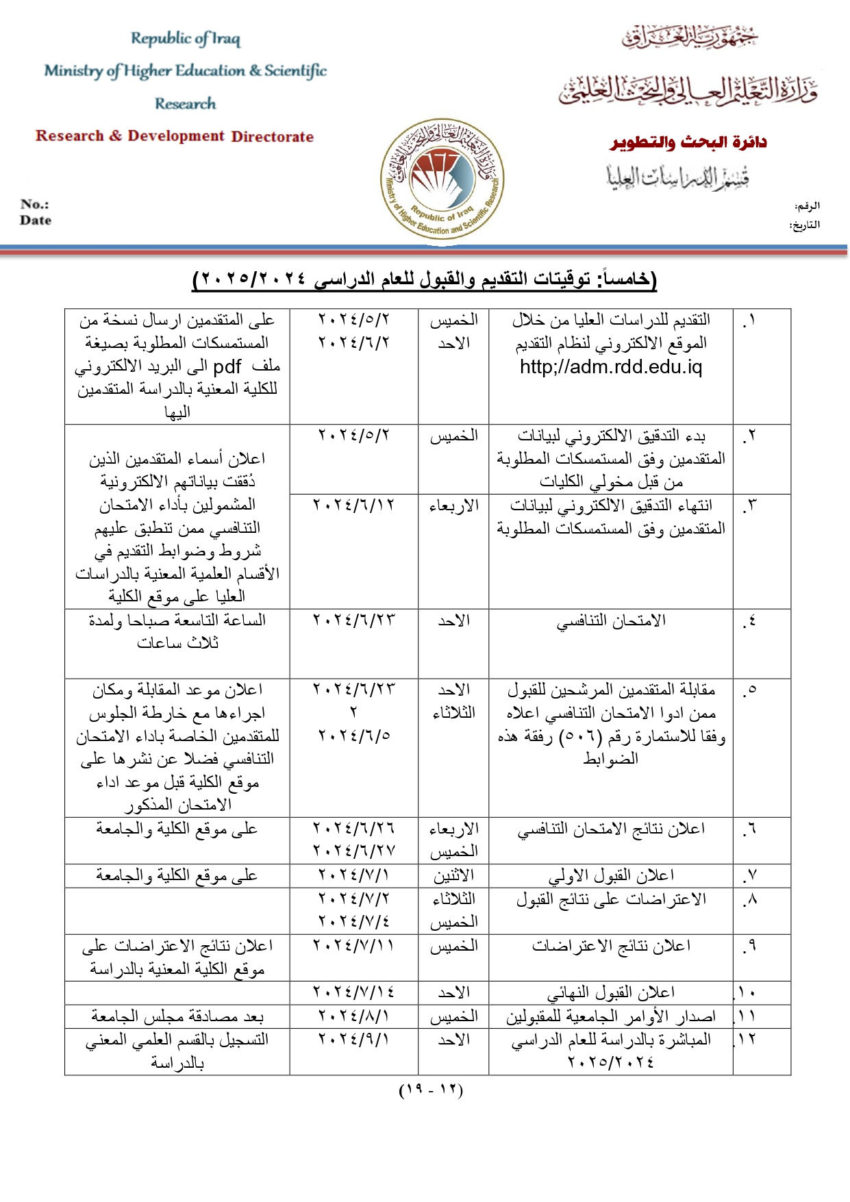 - يجب على المتقدم المشاركة في الامتحان التنافسي بعد الإعلان عن أسماء المرشحين للقبول في الدراسات العليا.