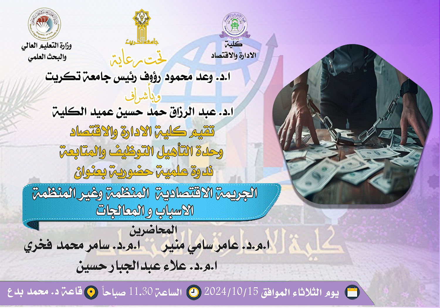 ندوة علمية بعنوان الجريمة الاقتصادية المنظمة وغير المنظمة الأسباب و المعالجات