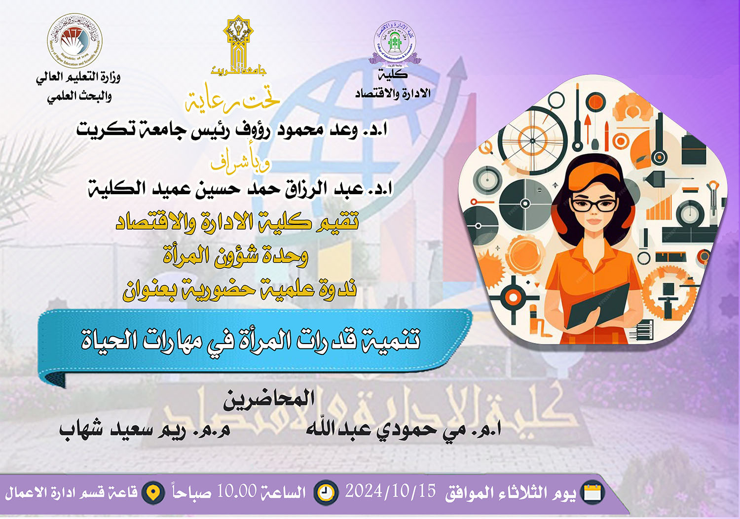 ندوة علمية حضورية عنوان تنمية قدرات المرأة في مهارات الحياة