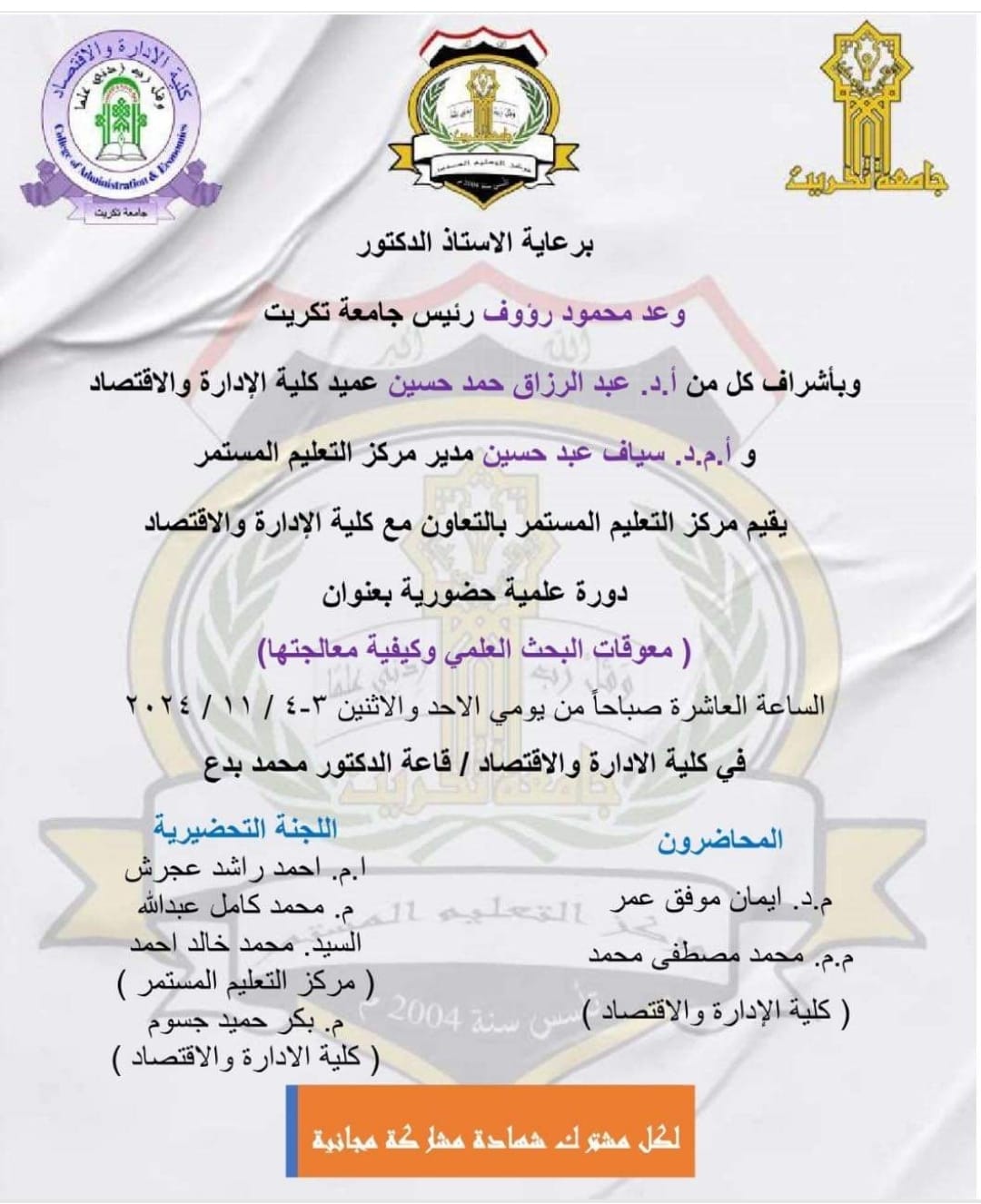 دورة علمية بعنوان معوقات البحث العلمي وكيفية معالجتها