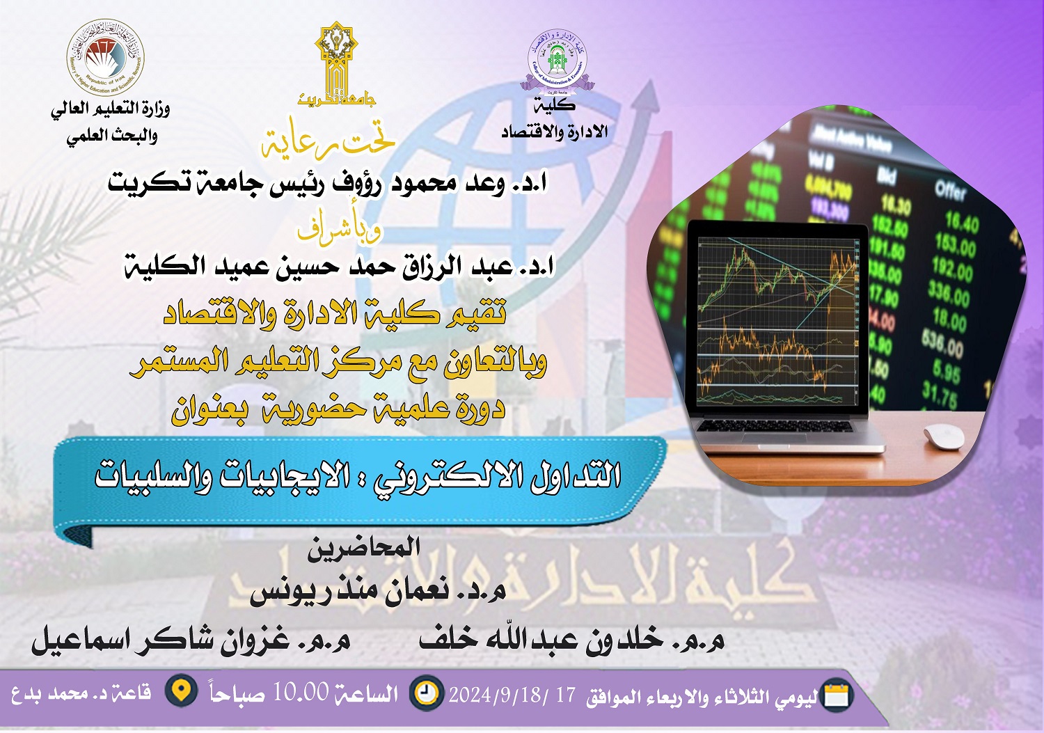 دورة علمية بعنوان التداول الالكتروني : الإيجابيات والسلبيات