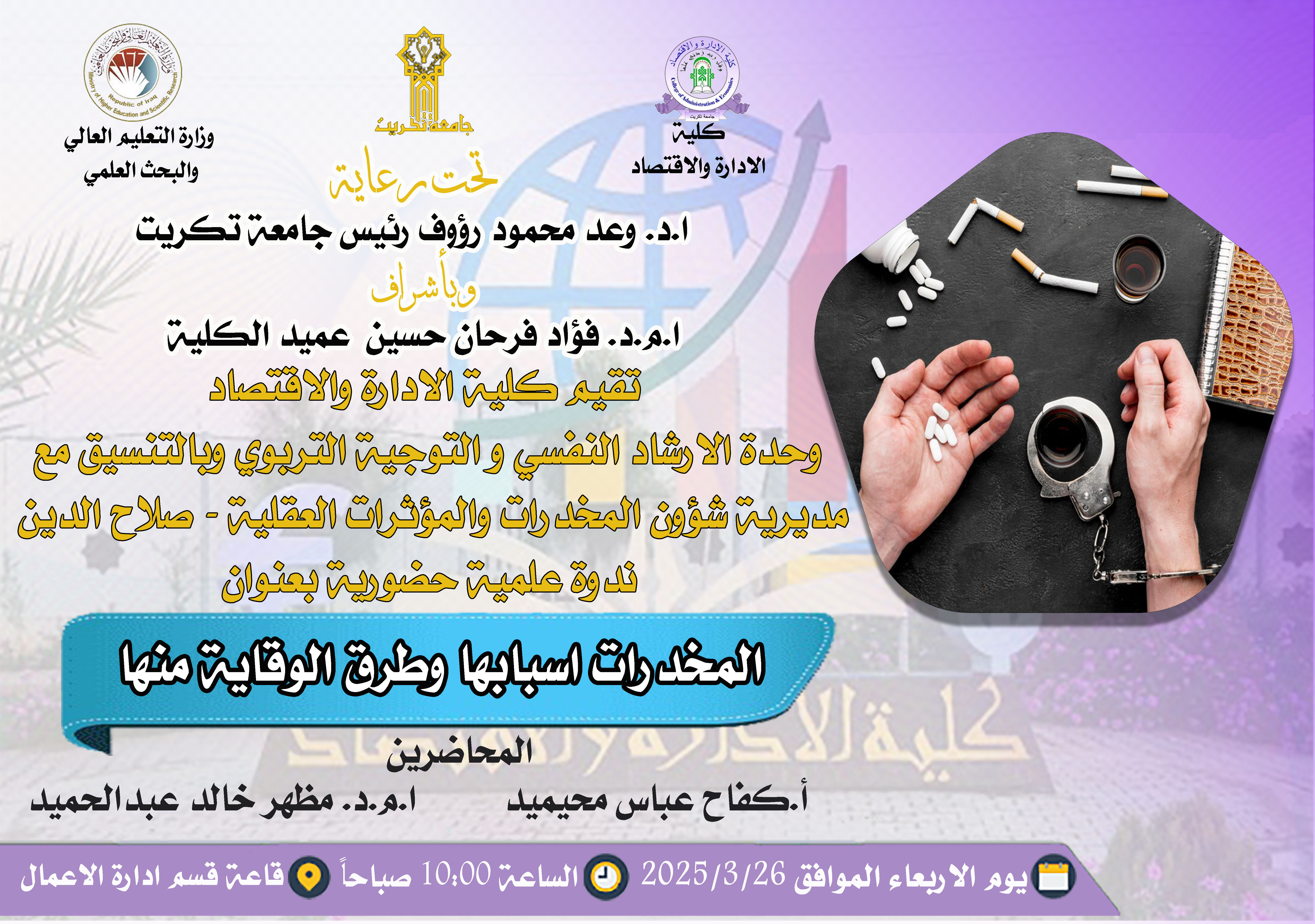 ندوة علمية بعنوان المخدرات أسبابها وطرق الوقاية منها