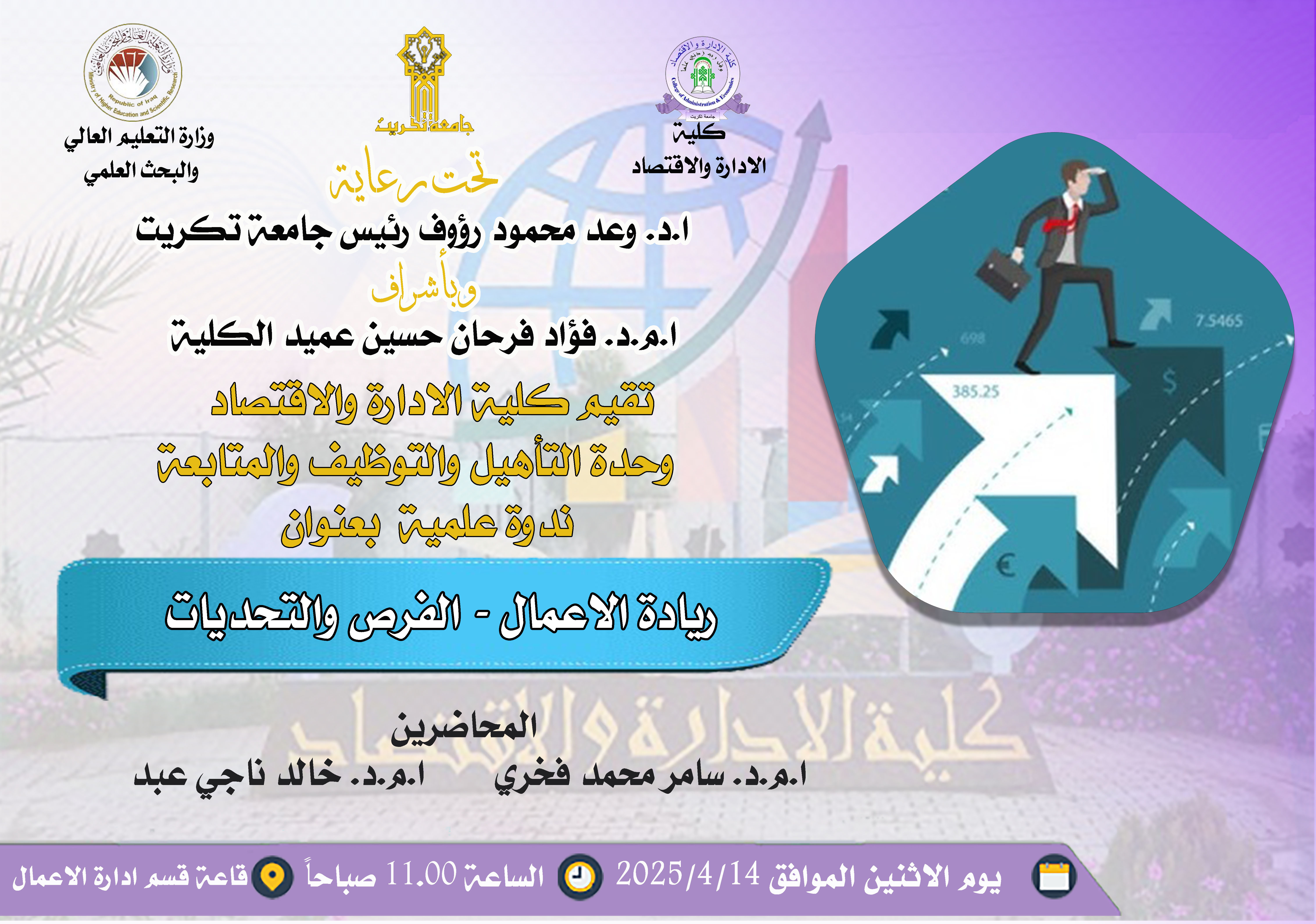 ندوة علمية بعنوان ريادة الاعمال - الفرص والتحديات