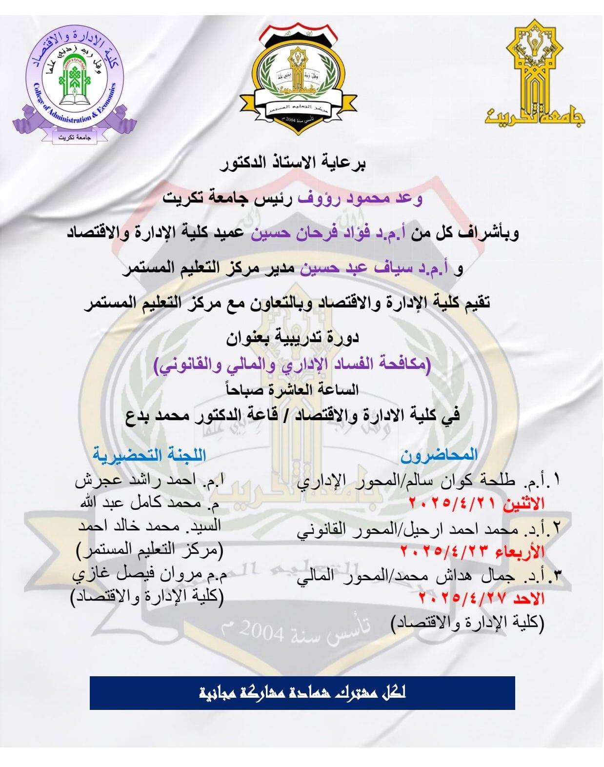 دورة تدريبية بعنوان مكافحة الفساد الإداري والمالي والقانوني