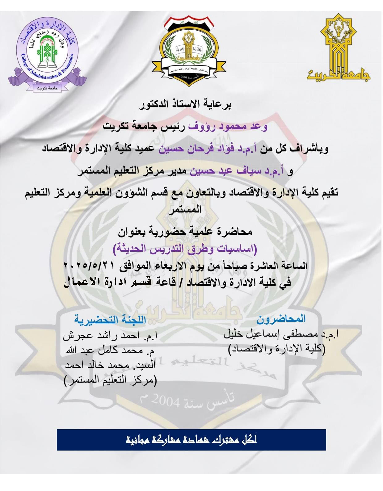 محاضرة علمية بعنوان اساسيات وطرق التدريس الحديثة