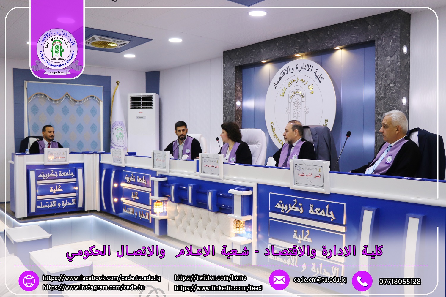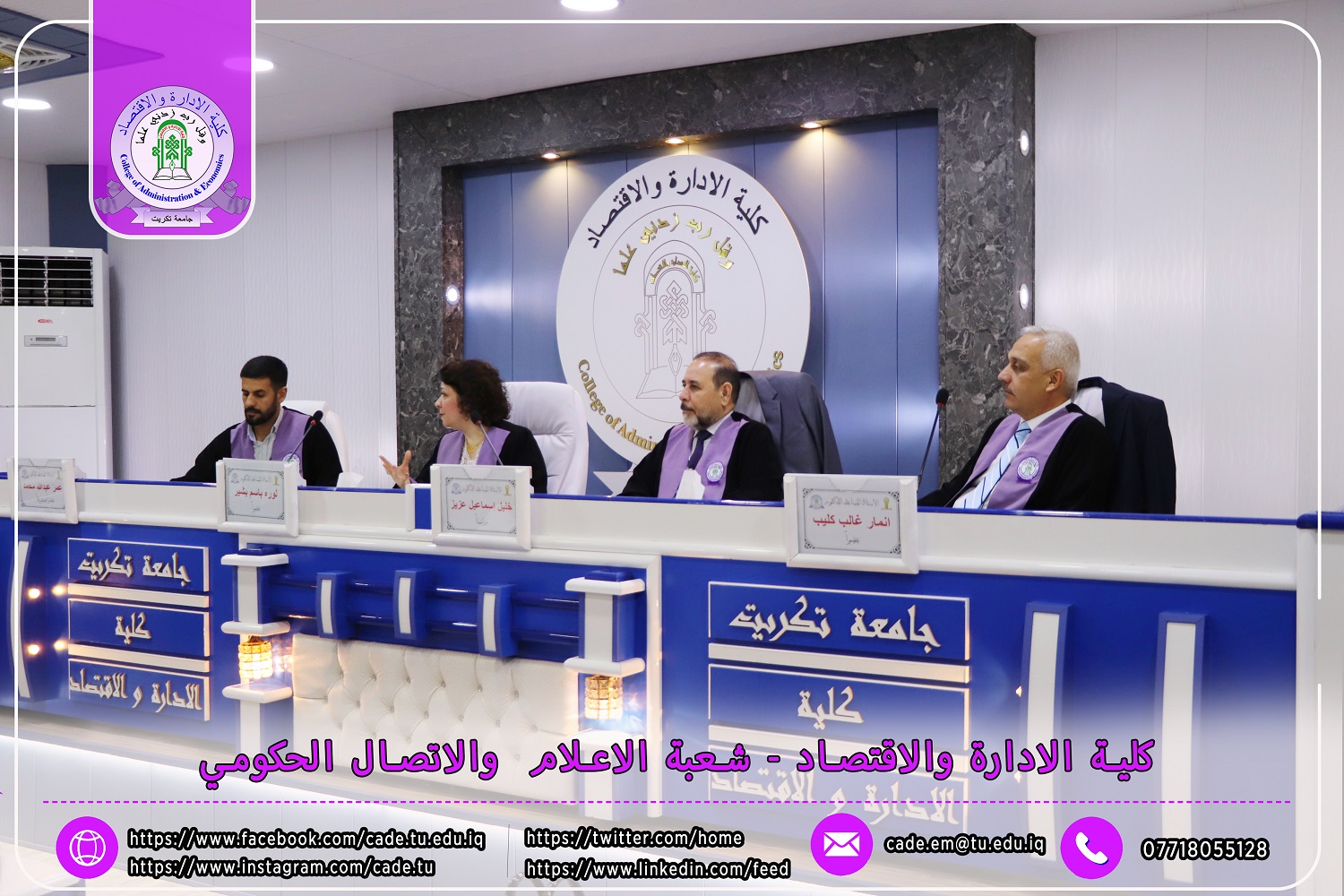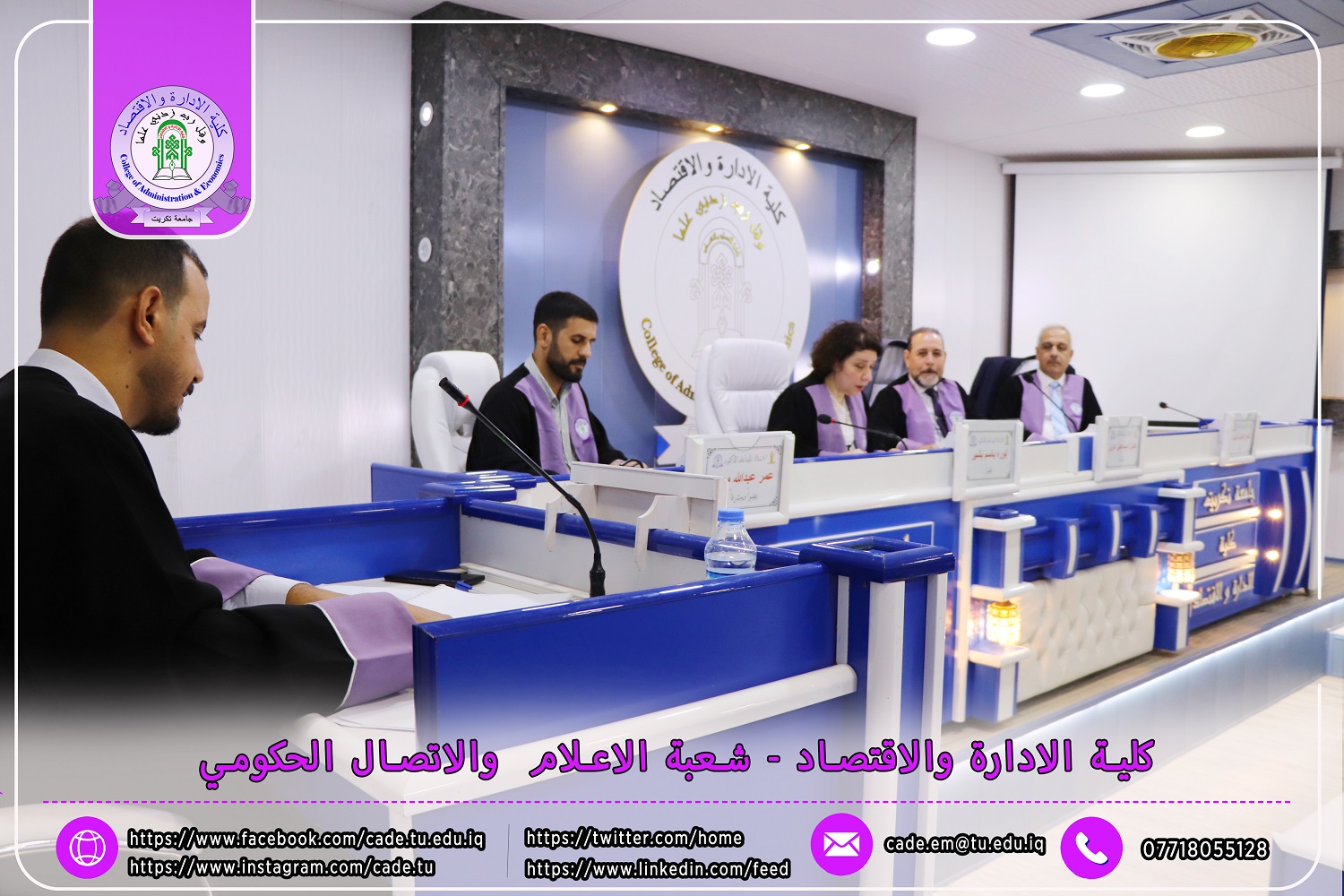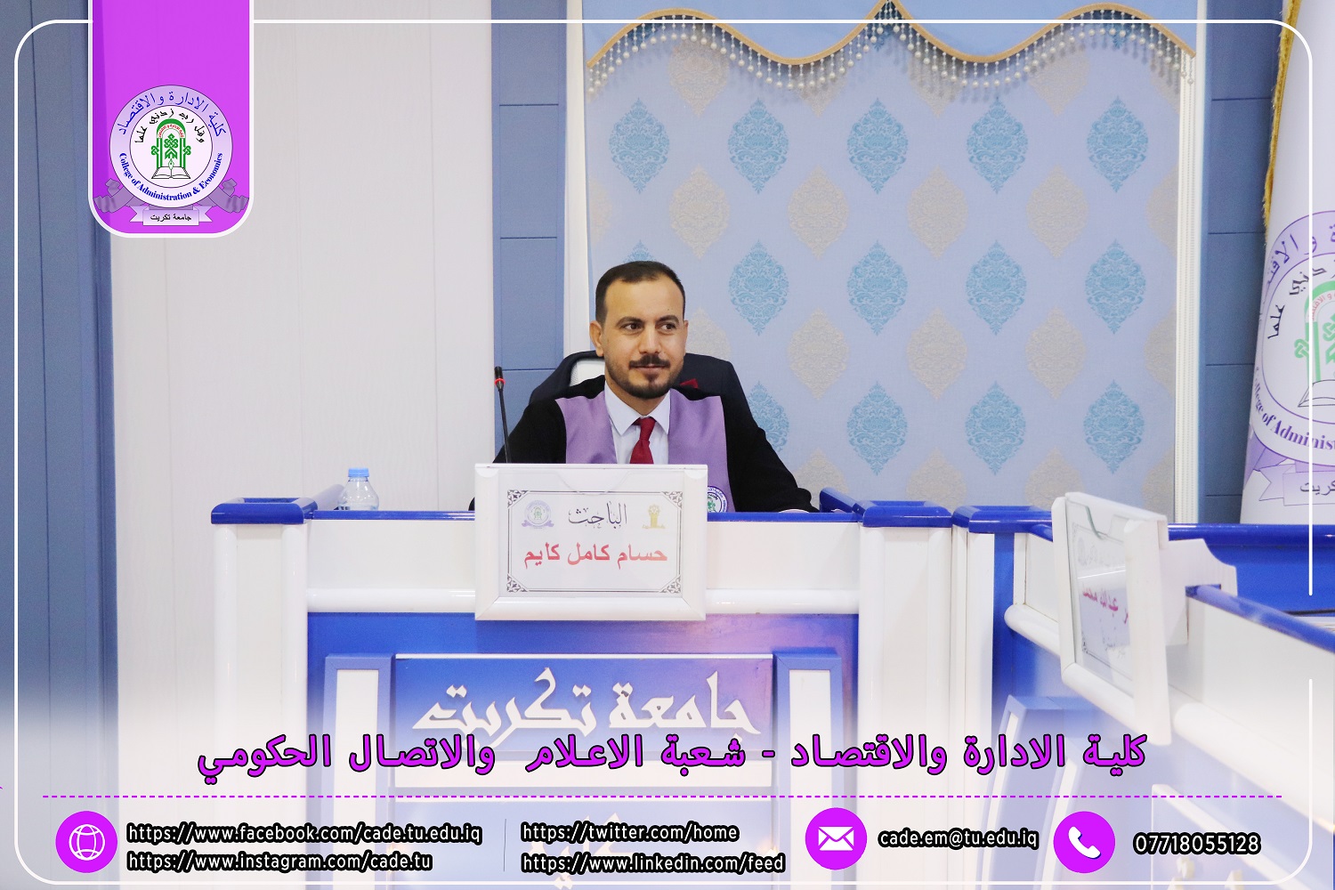 نوقشت في كلية الإدارة والاقتصاد رسالة الماجستير في العلوم الاقتصادية للطالــب حسام كامل كايم الموسومة ((اثر أدوات البنك المركزي في تحقيق استقرار القطاع المصرفي العراقي)) بأشراف ا.م.د. عمر عبدالله محمد