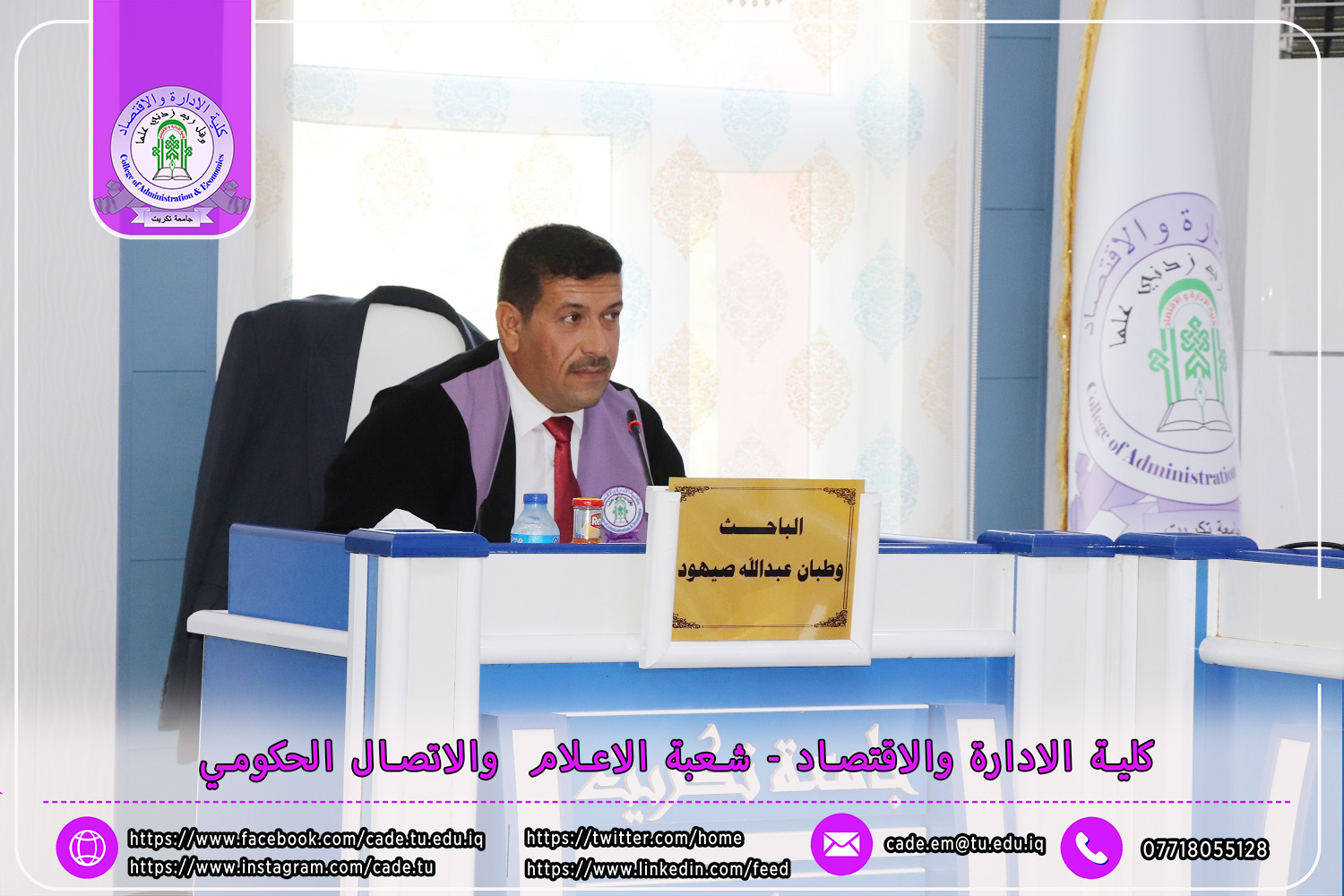 نوقشت في كلية الإدارة والاقتصاد / قسم ادارة الاعمال / رسالة الماجستير في العلوم الإدارية للطالــب وطبان عبدالله صيهود الموسومة ((اختيار العناصر الأكثر فاعليه من المزيج التسويقي ودورها في زياده حجم المبيعات – دراسة استطلاعية في الشركة العامة لصناعة الادوية والمستلزمات الطبية في سامراء )) بأشراف ا.د. سامي ذياب محمل.