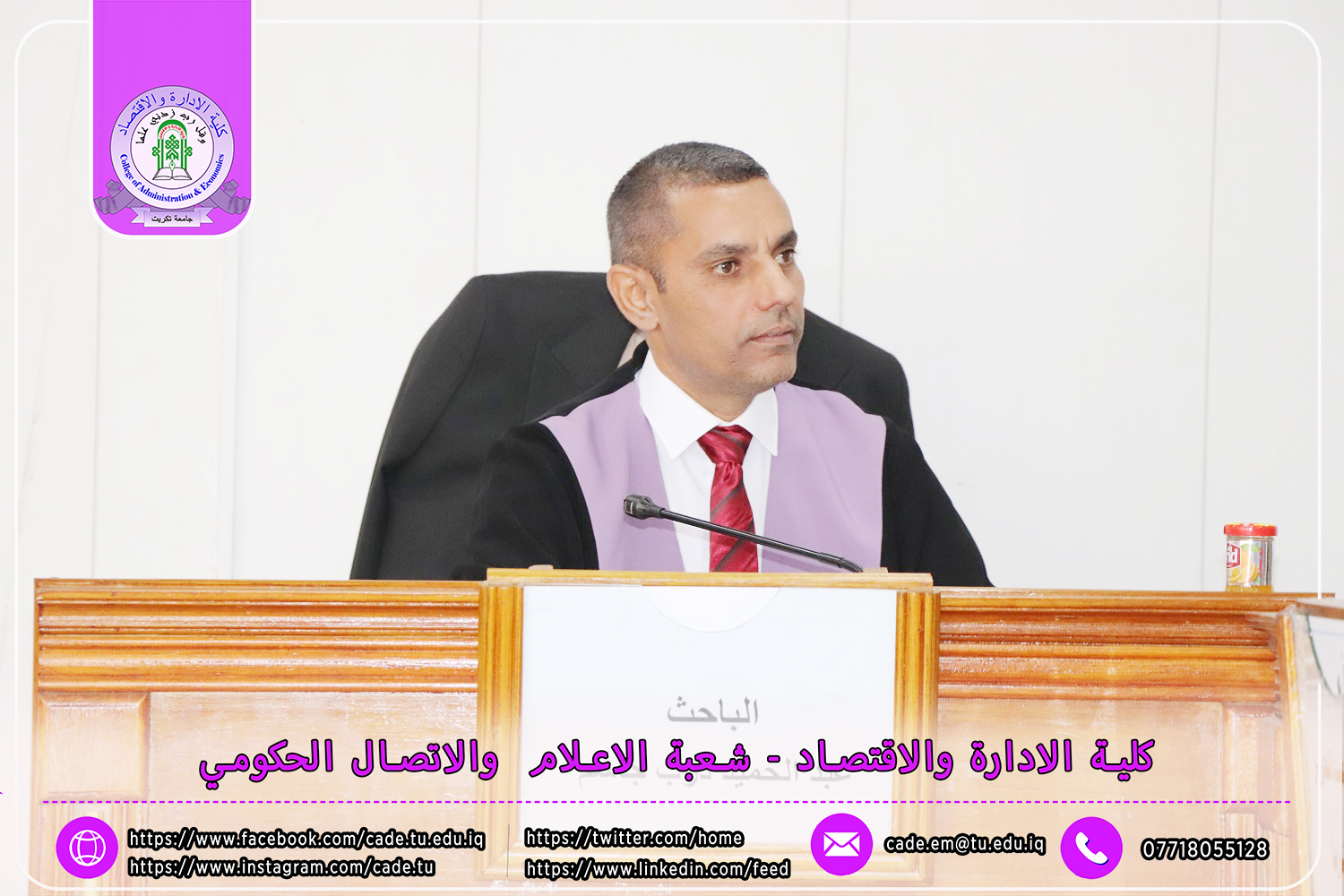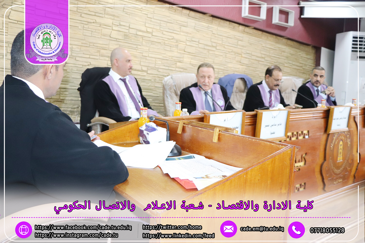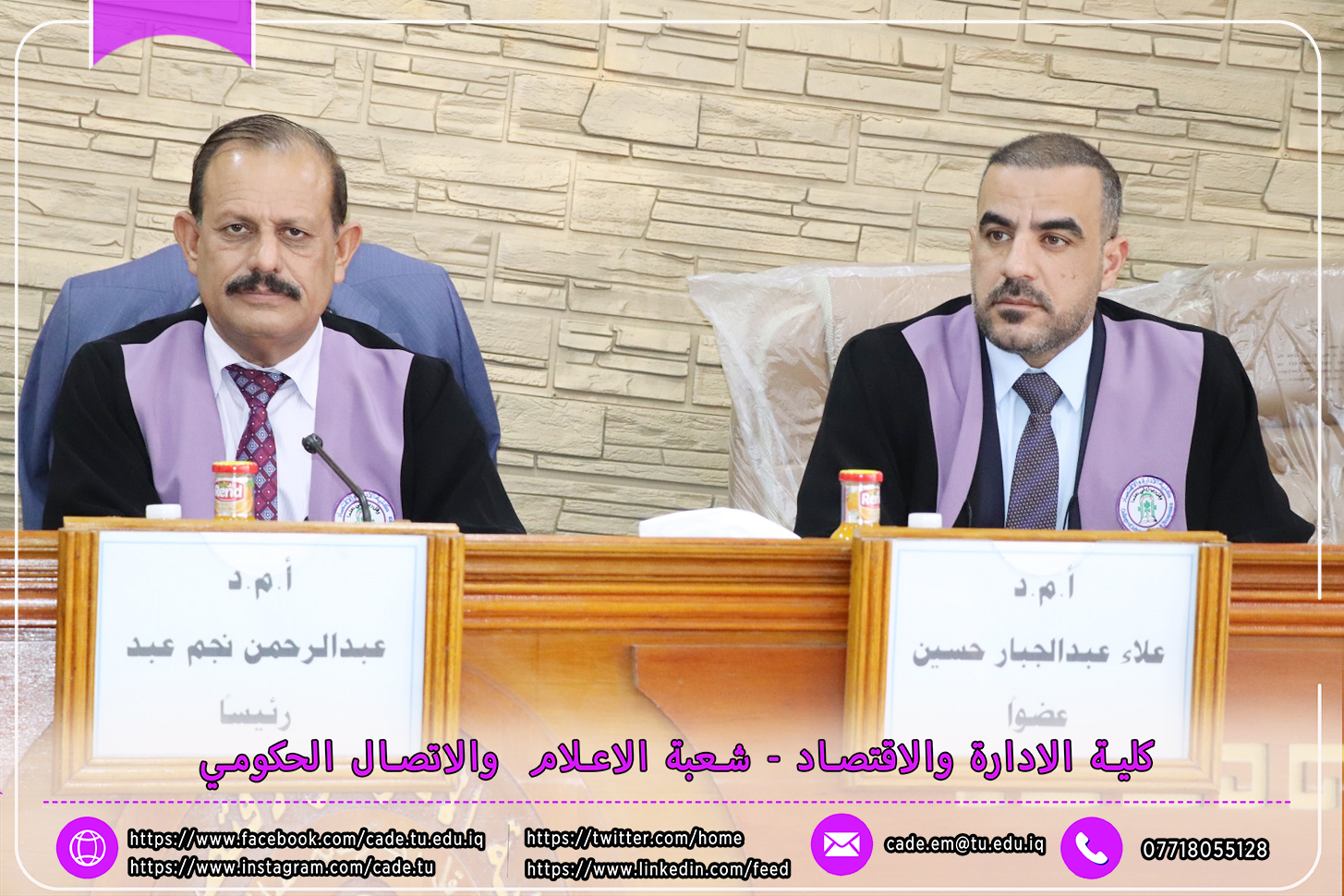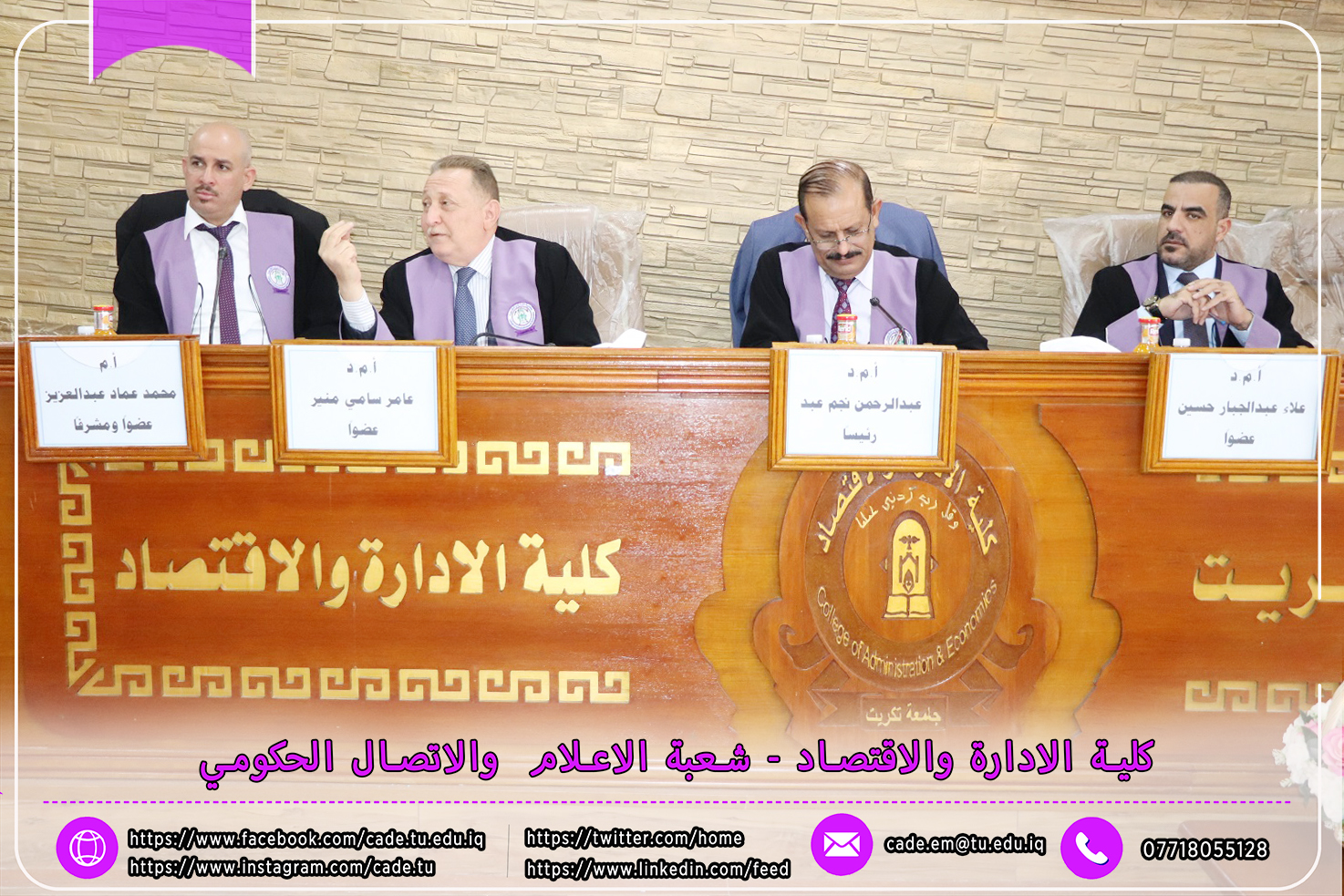 نوقشت في كلية الإدارة والاقتصاد / قسم الاقتصاد / رسالة الماجستير في العلوم الاقتصادية للطالــب عبدالحميد درب جاسم الموسومة ((دور البنك المركزي العراقي في مواجهة خطر التعثر المالي للمصارف الداخلة في نافذة العملة)) بأشراف ا.م. محمد عماد عبدالعزيز.