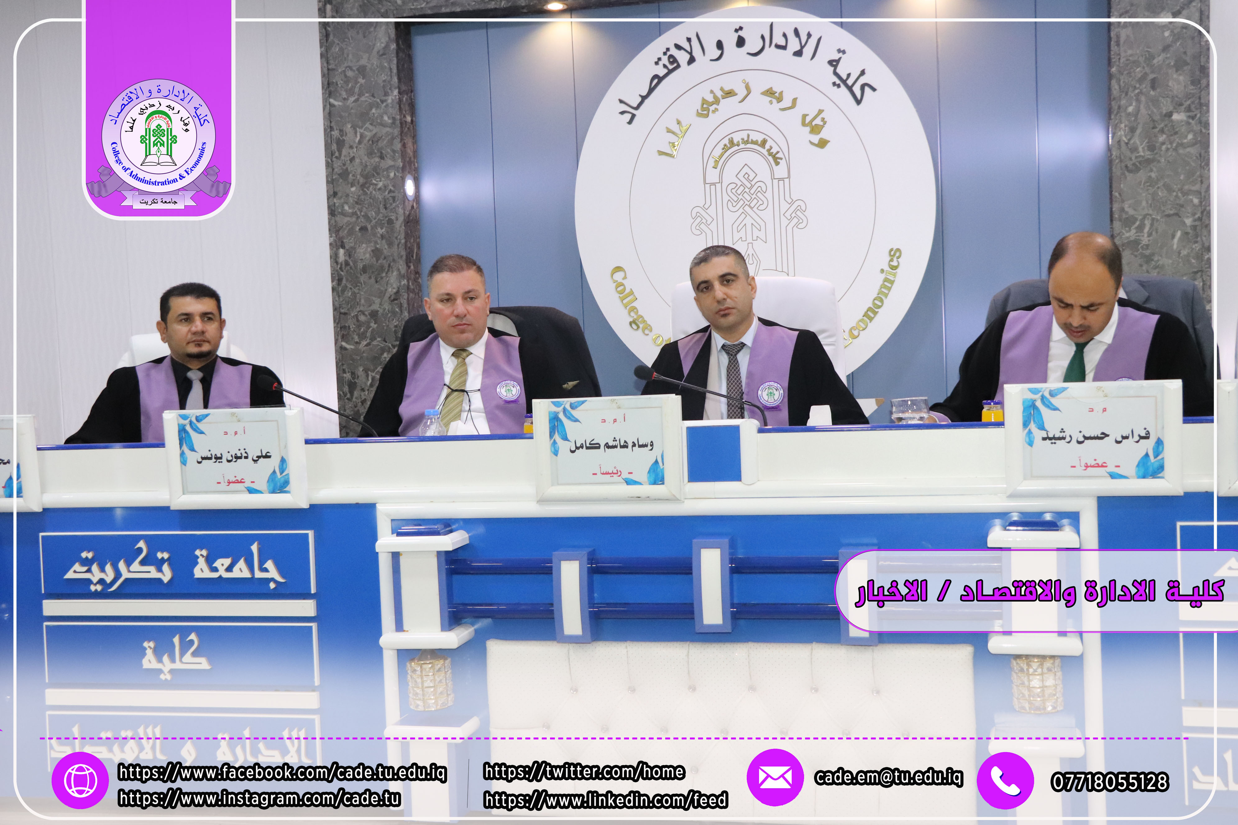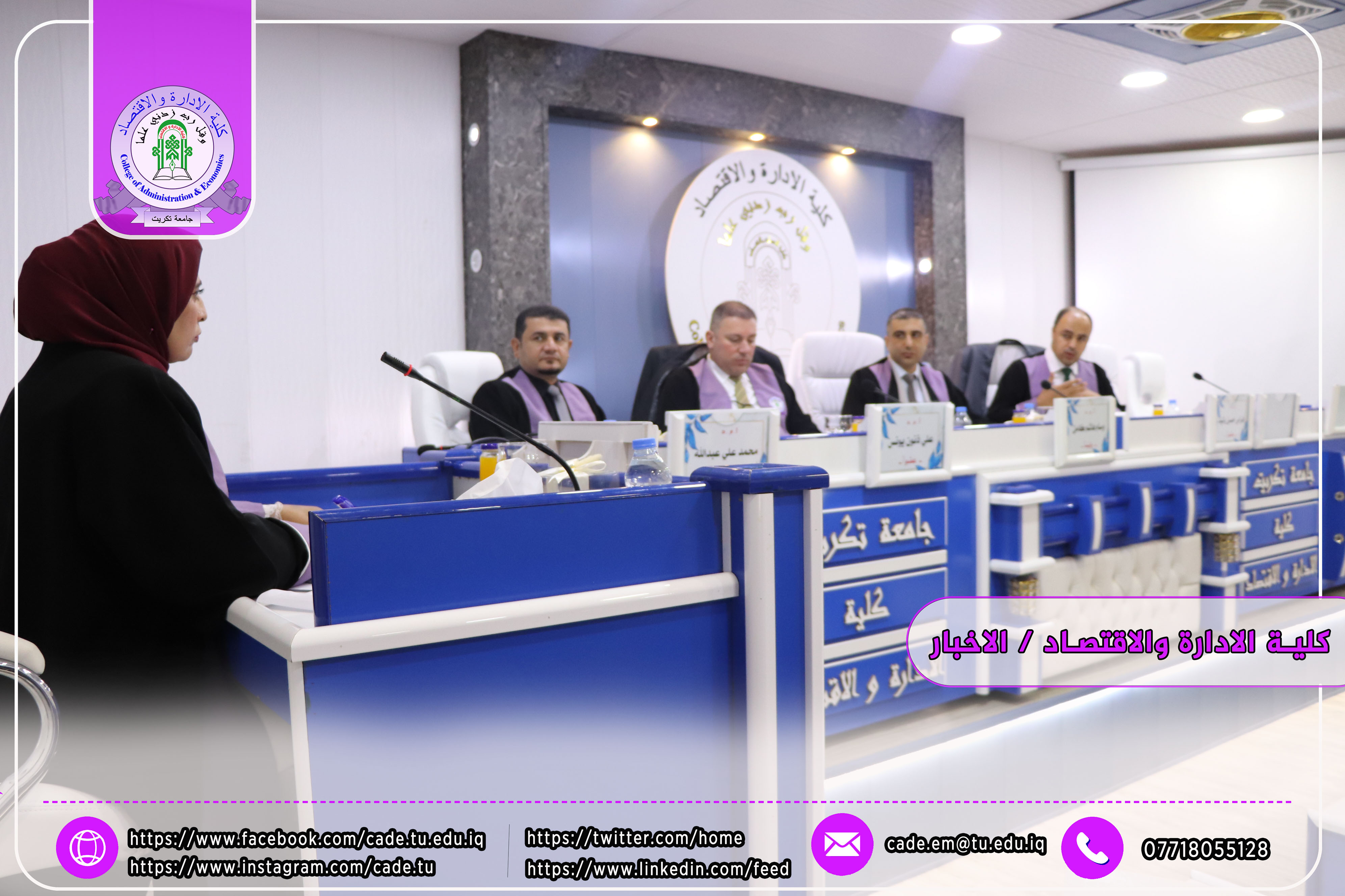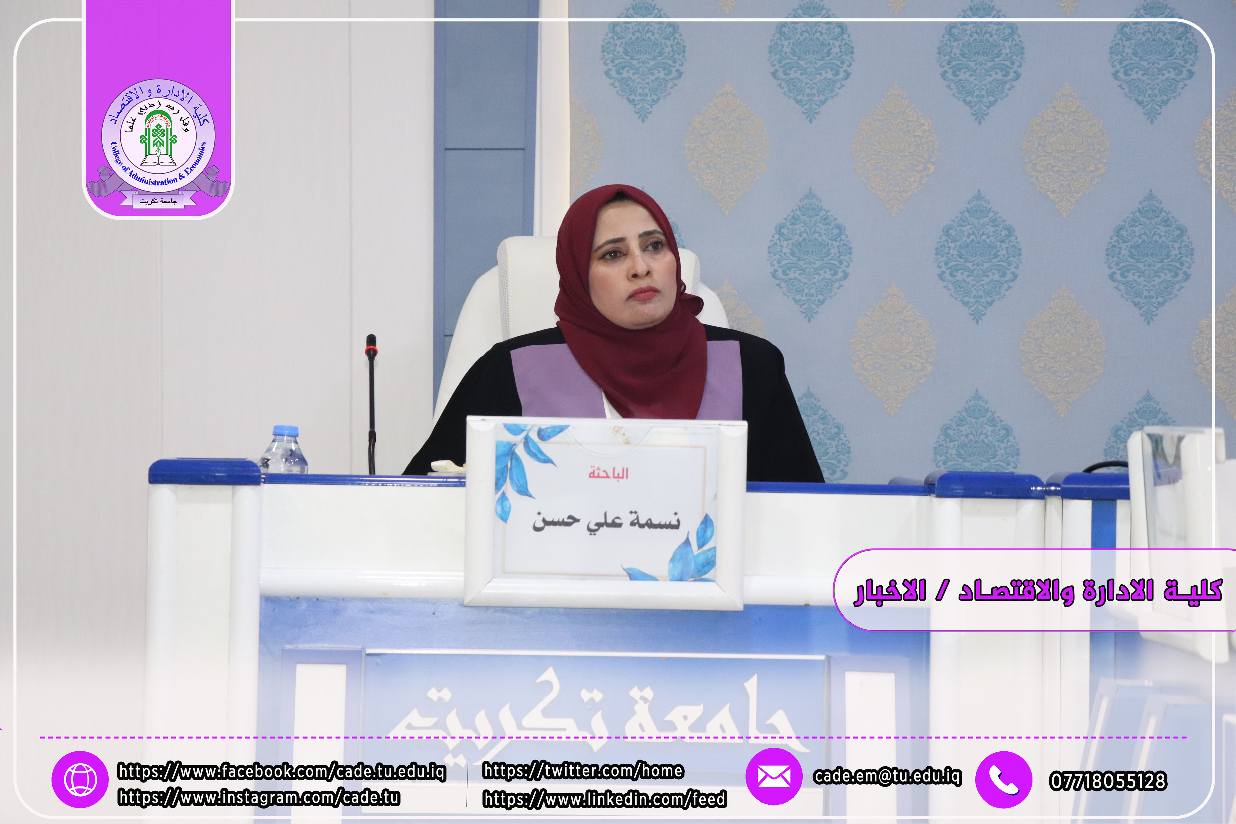 نوقشت في كلية الإدارة والاقتصاد / قسم إدارة الاعمال رسالة الماجستير في العلوم الادارية للطالــبة نسمه علي حسن الموسومة (المقدرات الجوهرية للموارد البشرية ودورها في معالجة التهكم التنظيمي: دراسة تحليلية لآراء عينة من العاملين في مصفى بيجي) بأشراف ا.م.د. محمد علي عبدالله.