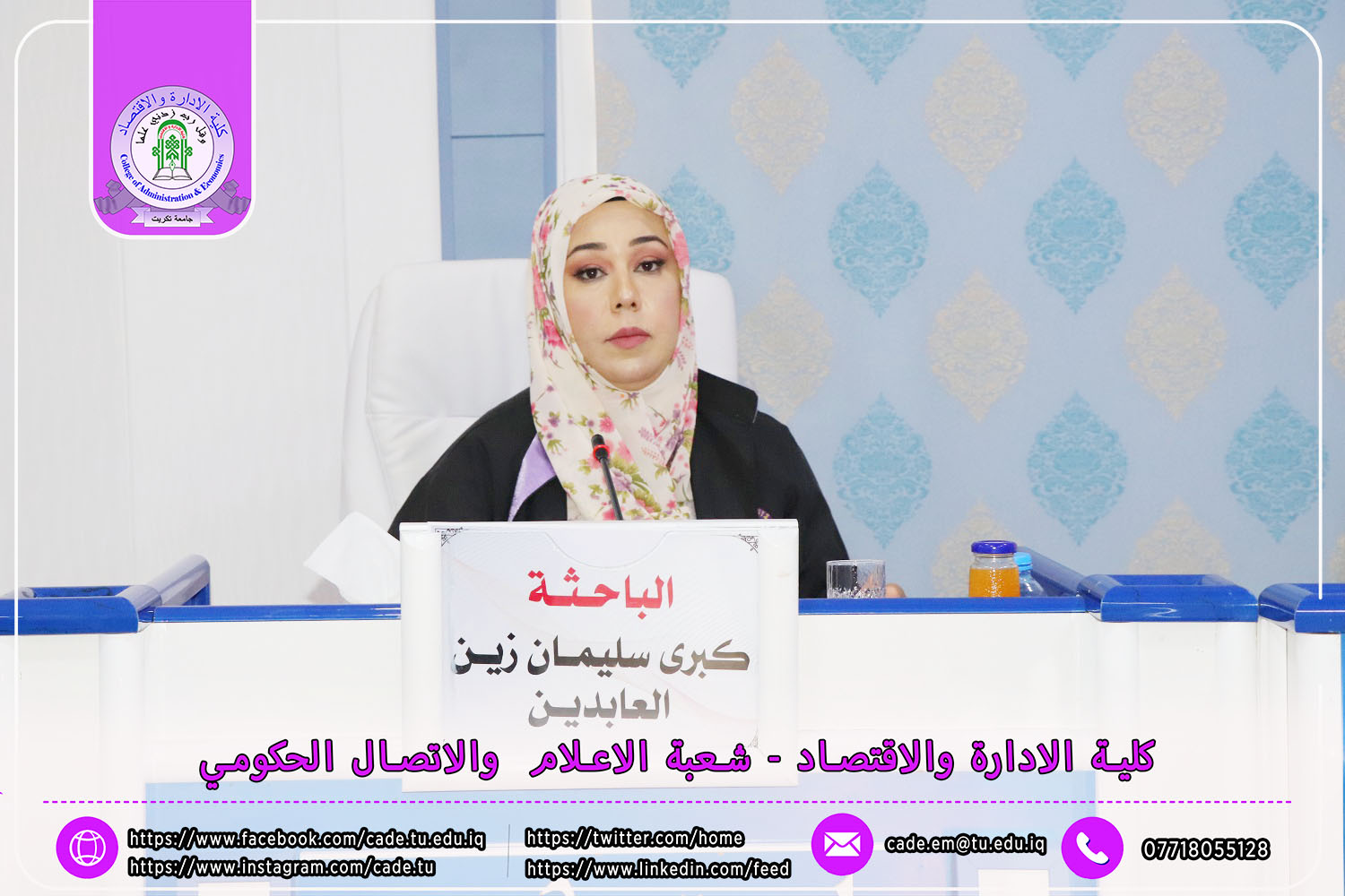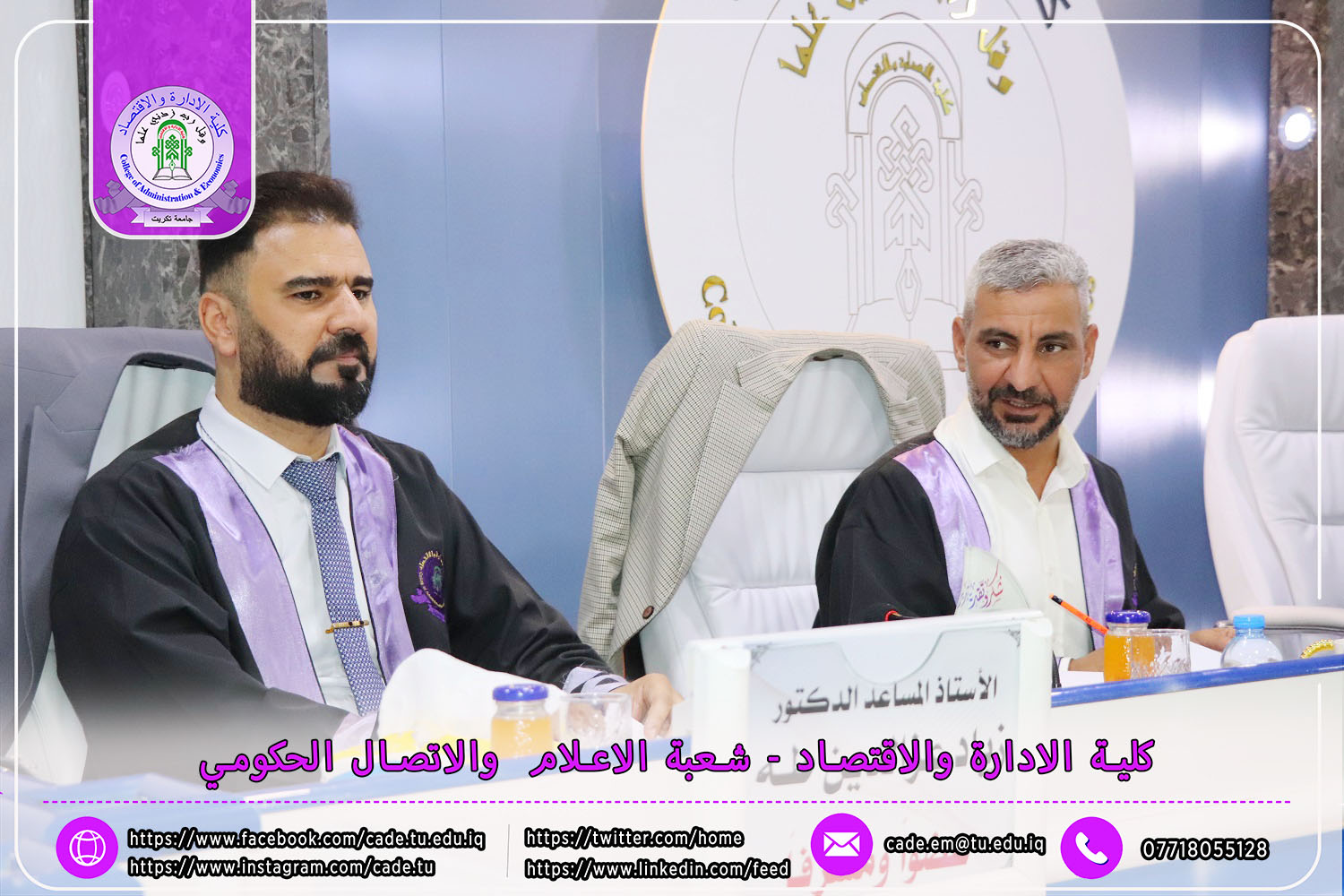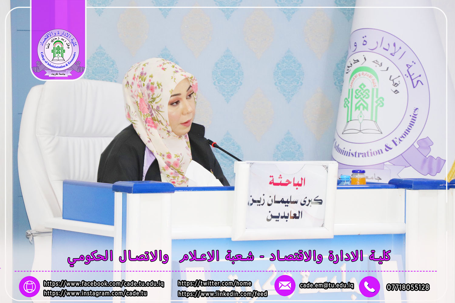 نوقشت في كلية الإدارة والاقتصاد / قسم الاقتصاد / رسالة الماجستير في العلوم الاقتصادية للطالــبة كبرى سليمان زين العابدين الموسوم ( تحليل وقياس العلاقة التبادلية بين النمو الاقتصادي والنمو السكاني في العراق للمدة 2004 -2022 ) بأشراف ا.م.د. زياد عزالدين طه.