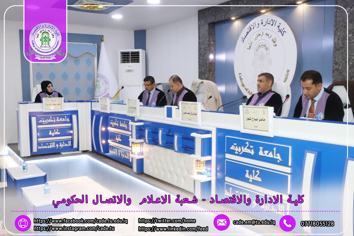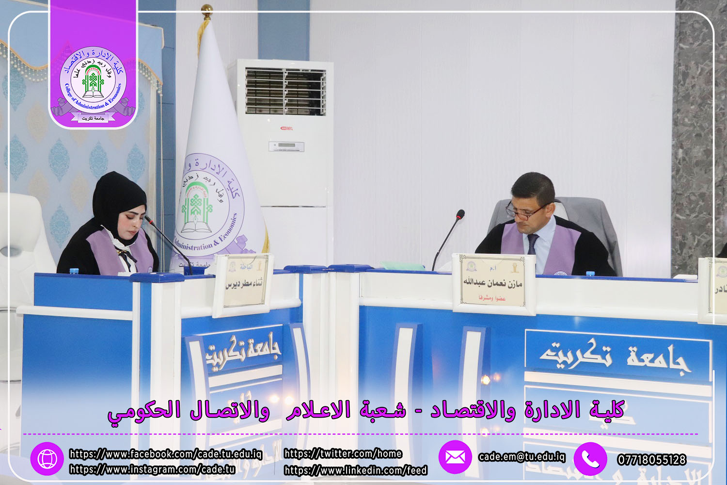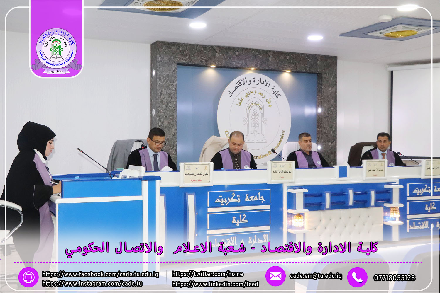 نوقشت في كلية الإدارة والاقتصاد / رسالة الماجستير في العلوم المالية والمصرفية للطالــبة ثناء مطر ديرس الموسومة ( قياس مؤشرات الصحة المالية وفق إنموذج PATROL للحد من المخاطر الائتمانية / دراسة تحليلية للمصارف التجارية الخاصة في العراق ) بأشراف ا.م. مازن نعمان عبدالله.