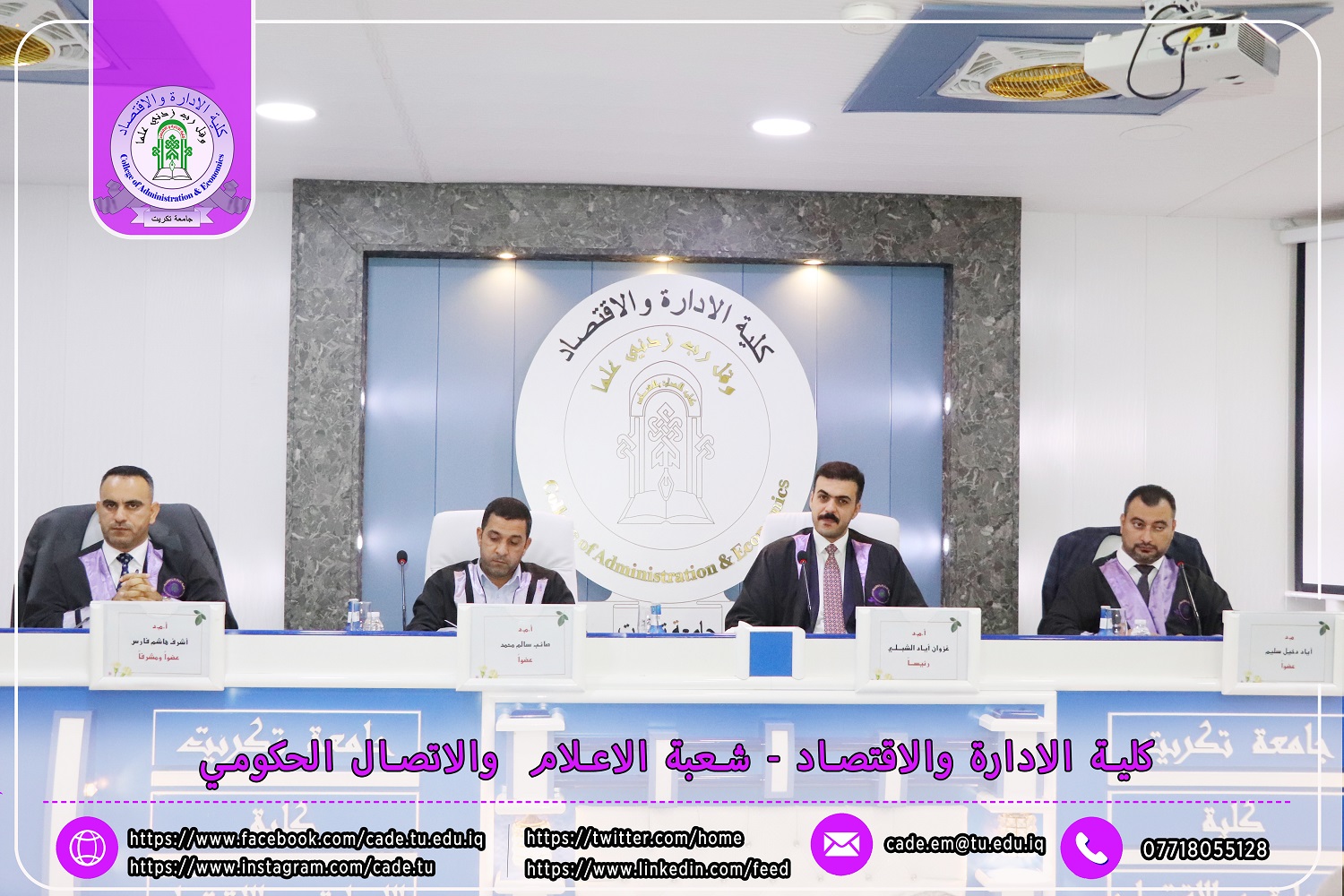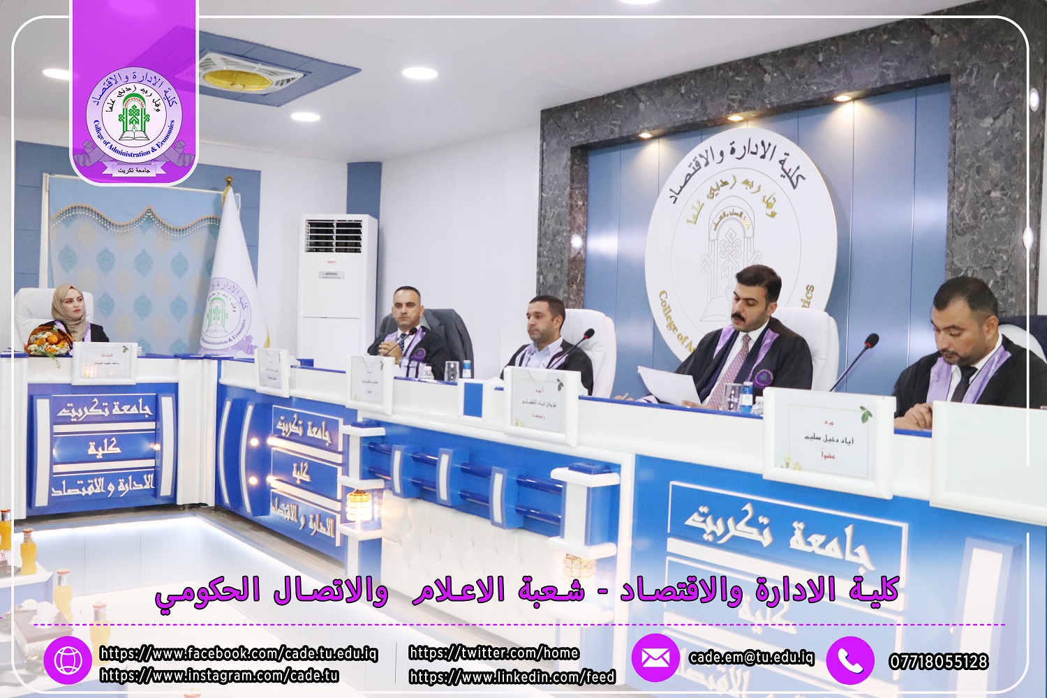 نوقشـت في كليـة الإدارة والاقتصاد رسالة الماجستير في العلوم المحاسبية للطالــبة رحمة حميد صبحي (أثر خصائص لجان التدقيق في تحسين جودة التقارير المالية وانعكاسها على العوائد غير العادية للأسهم (دراسة تطبيقية على عينة من الشركات العراقية المدرجة في سوق العراق للأوراق المالية) بأشــراف ا. ا.م.د. أشرف هاشم فارس.
